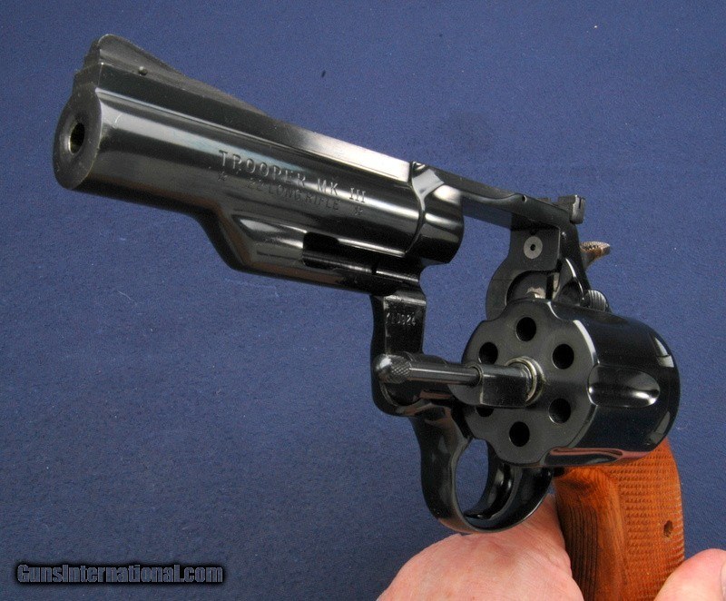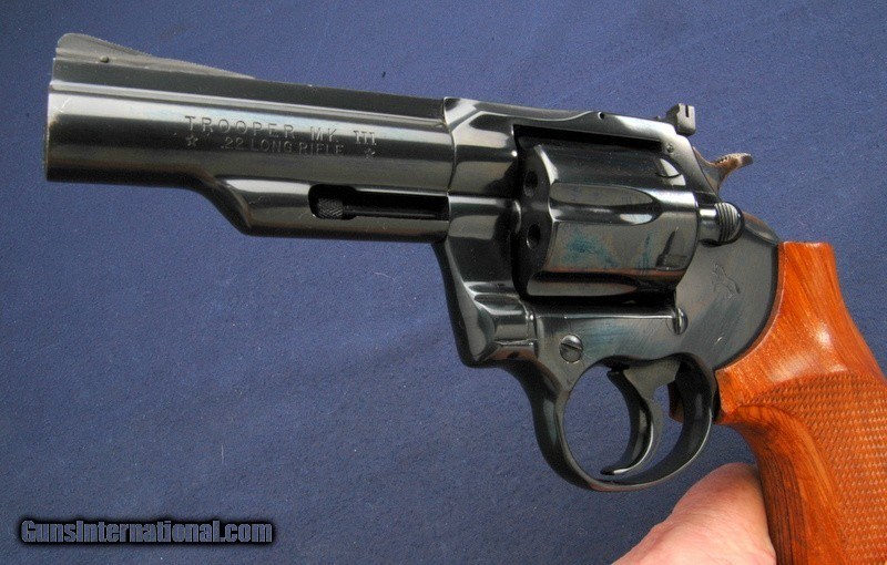 Description: Very nice used .22 Trooper. Excellent overall with some high edge wear and a few evident scuffs. Feels like it has had a trigger job as well. Excellent bore and locks up tight. Sorry no box or papers. Beautiful bright deep Colt blue. 1979 production. $40 shipping to the lower 48, 3% surcharge for using a CC. If you choose to pay with a personal check, we will hold the item for up to 10 days to make sure that it clears. Please expedite such pymts as we will hold an item on your word for 5 days. SOLD Handgun Caliber: .22 Long Rifle |