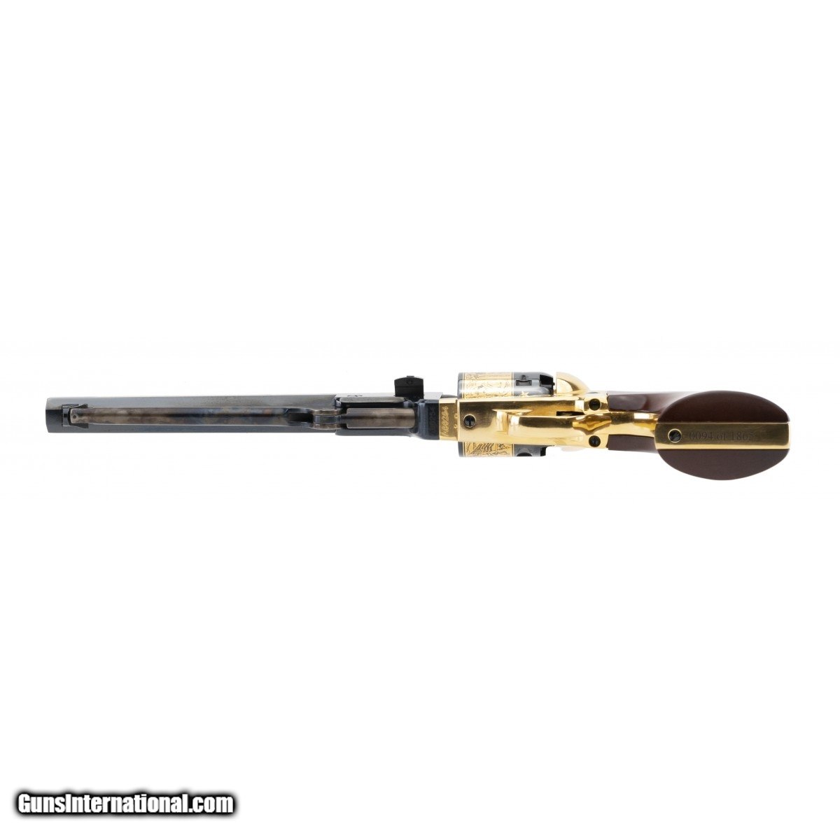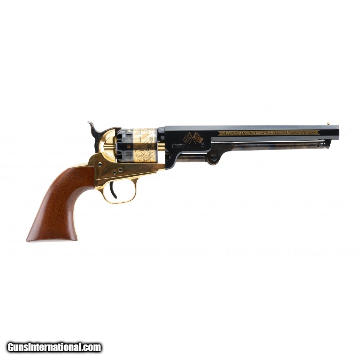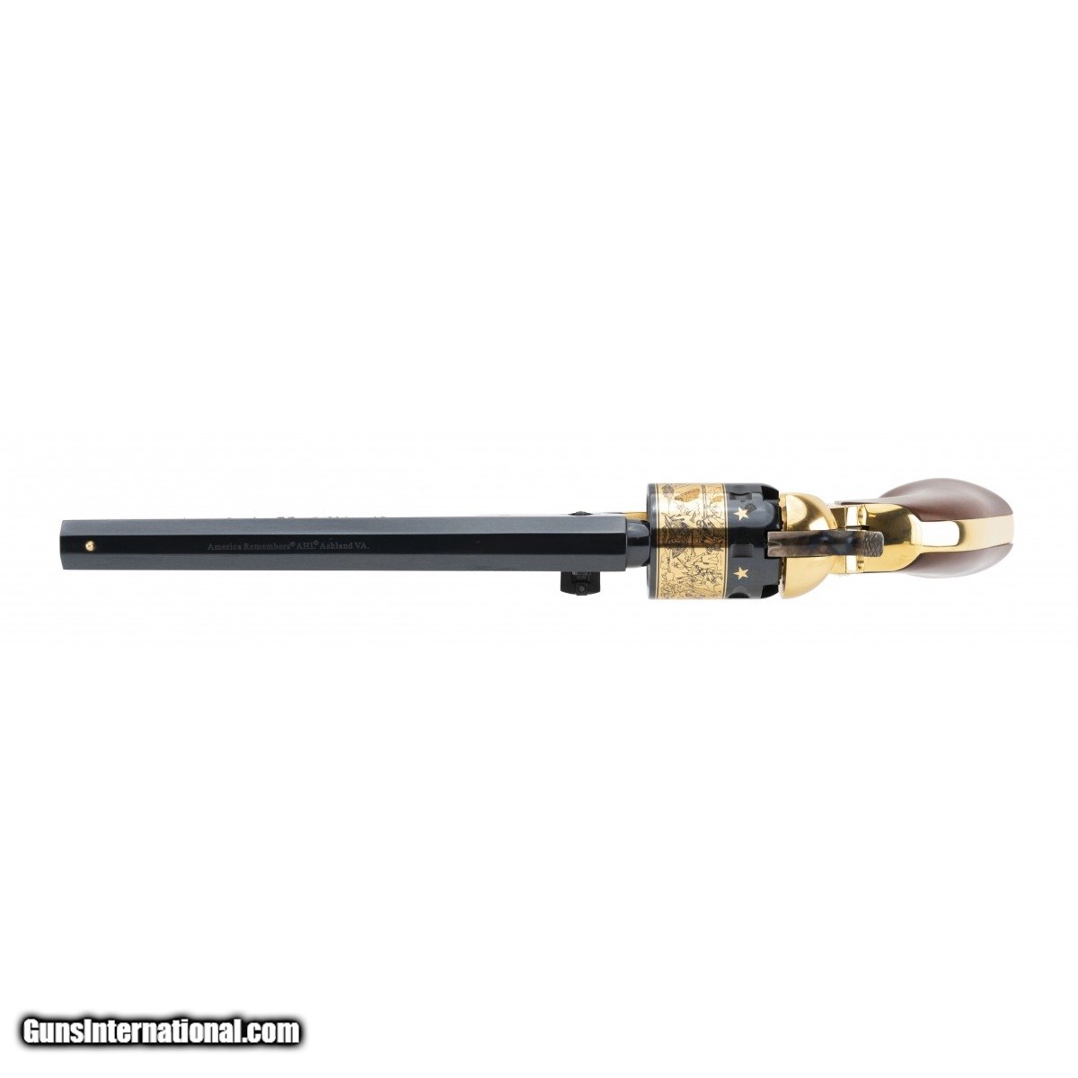 Description: " Civil War 150th Anniversary Tribute revolver issued by America Remembers. Has gold engraving and comes with a U.S. and a C.S. belt buckles, in a glass top wooden presentation case. AUSTIN LOCATION. SOLD |