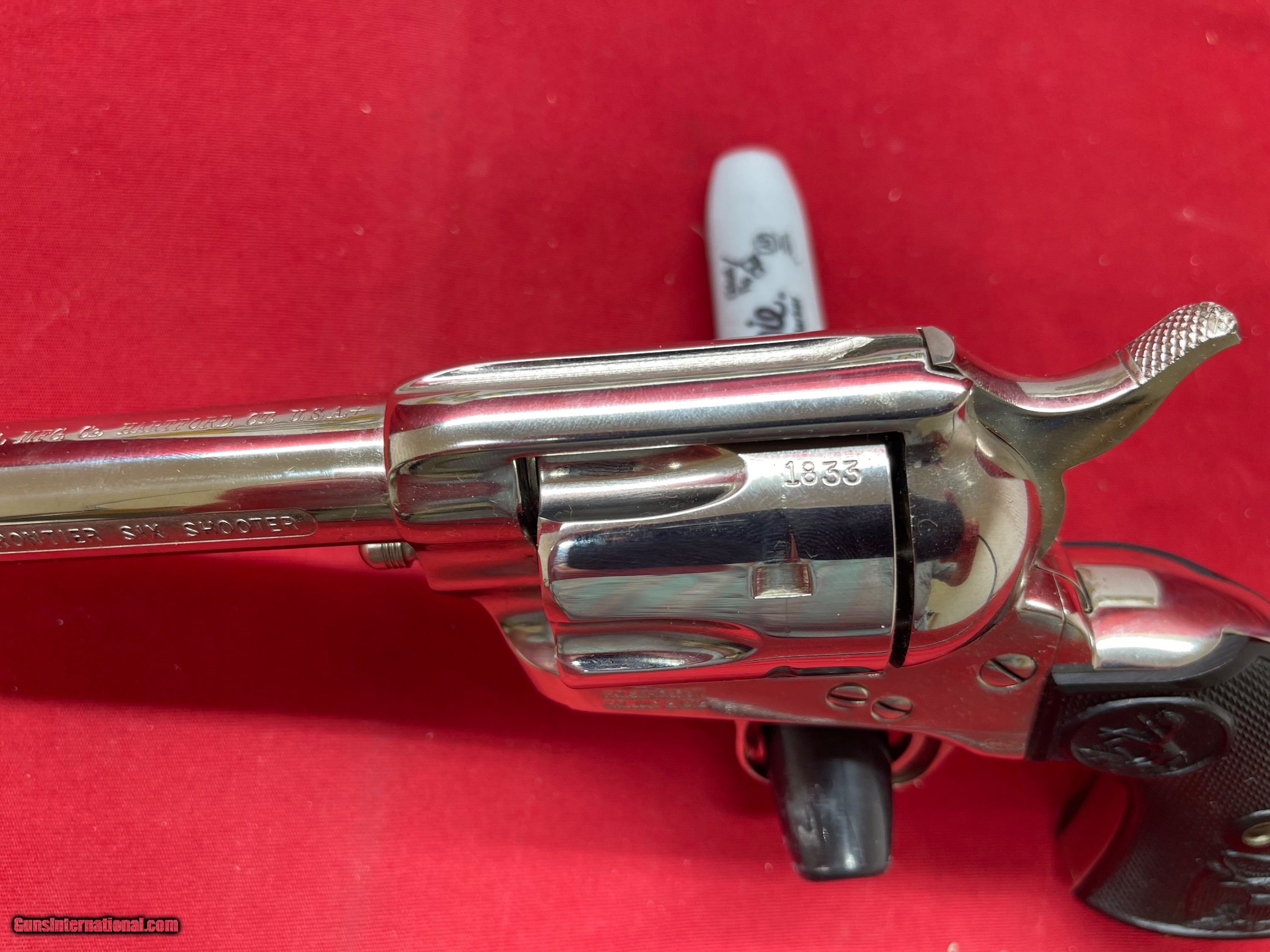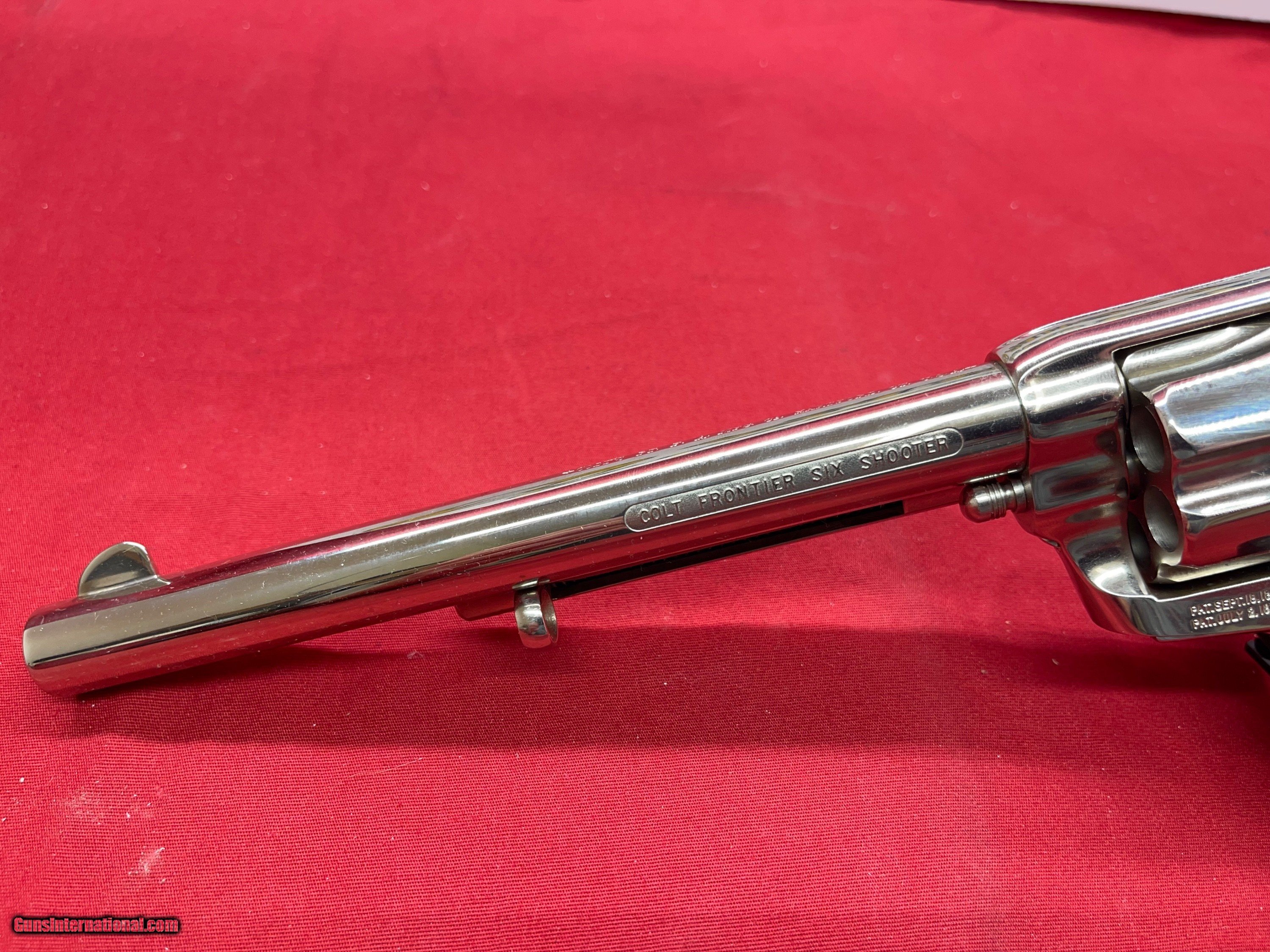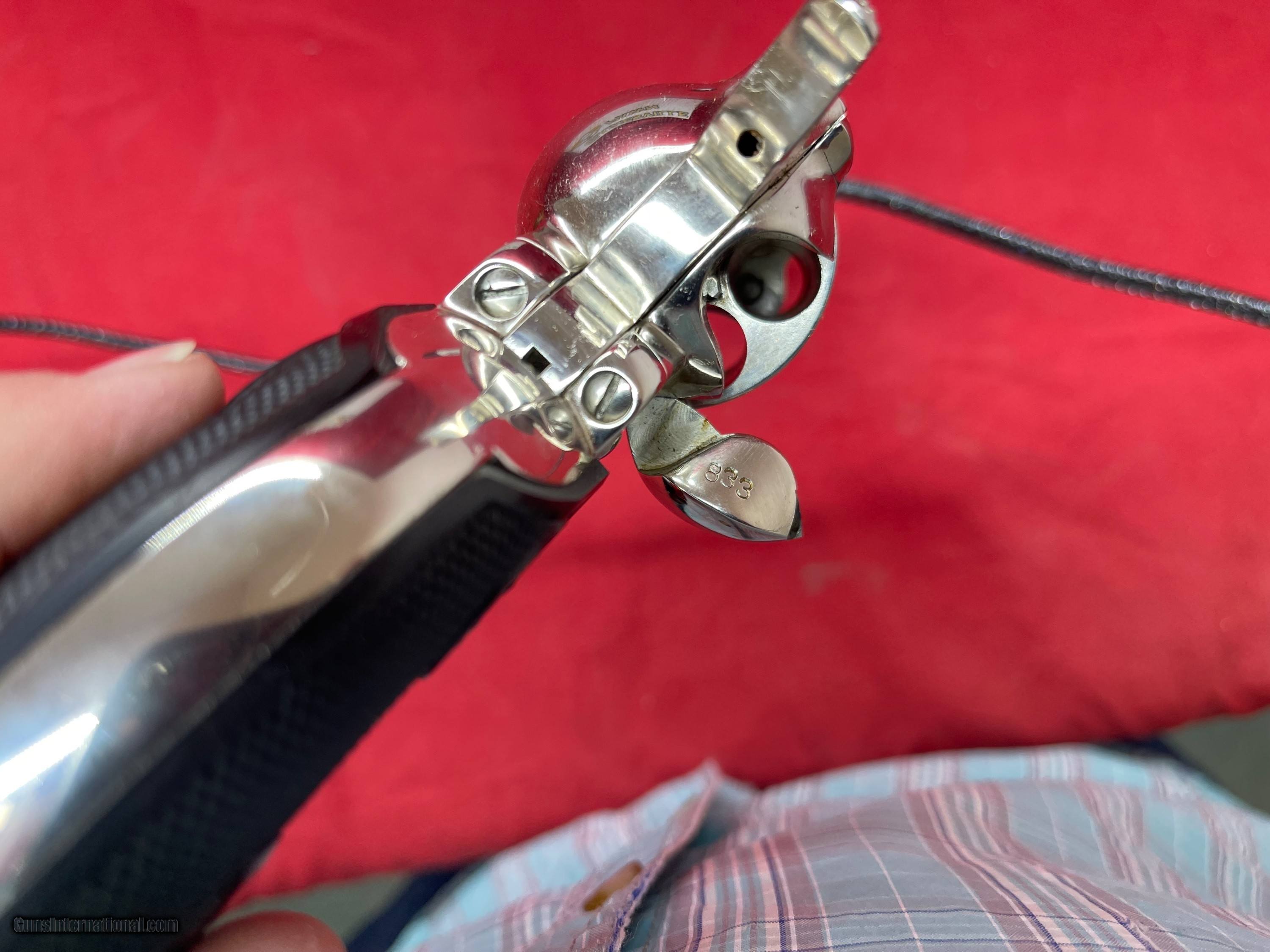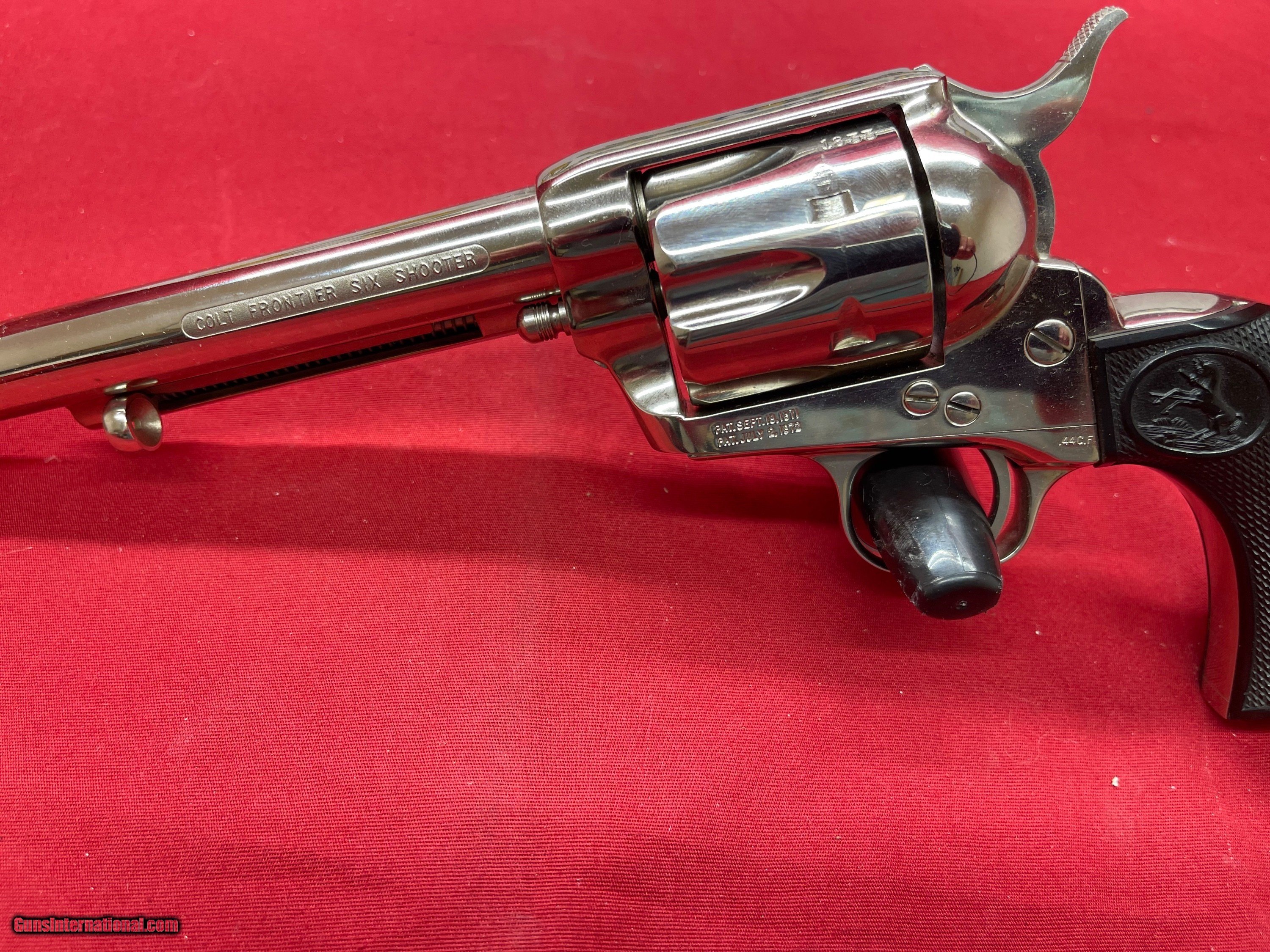 Description: Another great item from Gainesville Pawn! Up for sale is a Colt SIngle Action Army. This one is the 1873-1973 Commerative. Only 1500 of these manufactured. This Second Generation Colt is on its factory presentation box. This gun is in factory Nickel with a 7 1-2 inch Barrel. Etched panel in 44-40. All three frames are serial number to match as Well as the cylinder and loading gate.this gun is New Unfired. One cylinder has a slight turn line. Please see photos. *Please be aware that all items are sold “AS IS”. Ask questions BEFORE buying. Feel free to call us at our store (352) 240-6452 or (352) 339- 4780 or email us at Gainesvillepawn(at)gmail(dot)com with ANY questions. We do not accept trades or offers through Guns International We only entertain trades and offers through our store. $35 shipping and handling. Insurance extra. We only accept USPS money orders and major credit cards for payment. 3% convenience fee for credit cards. WE collect Florida state sales tax for in state sales. Please be aware that this item is for sale in our store as well as the occasional gun show so it may be sold there at any time. We will not ship the item until you have your dealer/receiving store email us a signed copy of their FFL to gainesvillepawn(at)gmail(dot)com Curio/Relic: Yes Handgun Caliber: .44-40 Winchester (.44 WCF) Manufacturer: Colt Model: 1873 Serial Number: 1833PC Barrel Length: 7 1-2 Condition: New Metal Condition: New Bore Condition: New Price: $3,299.00 Shipping: $35.00 Buy Now Contact Seller |
