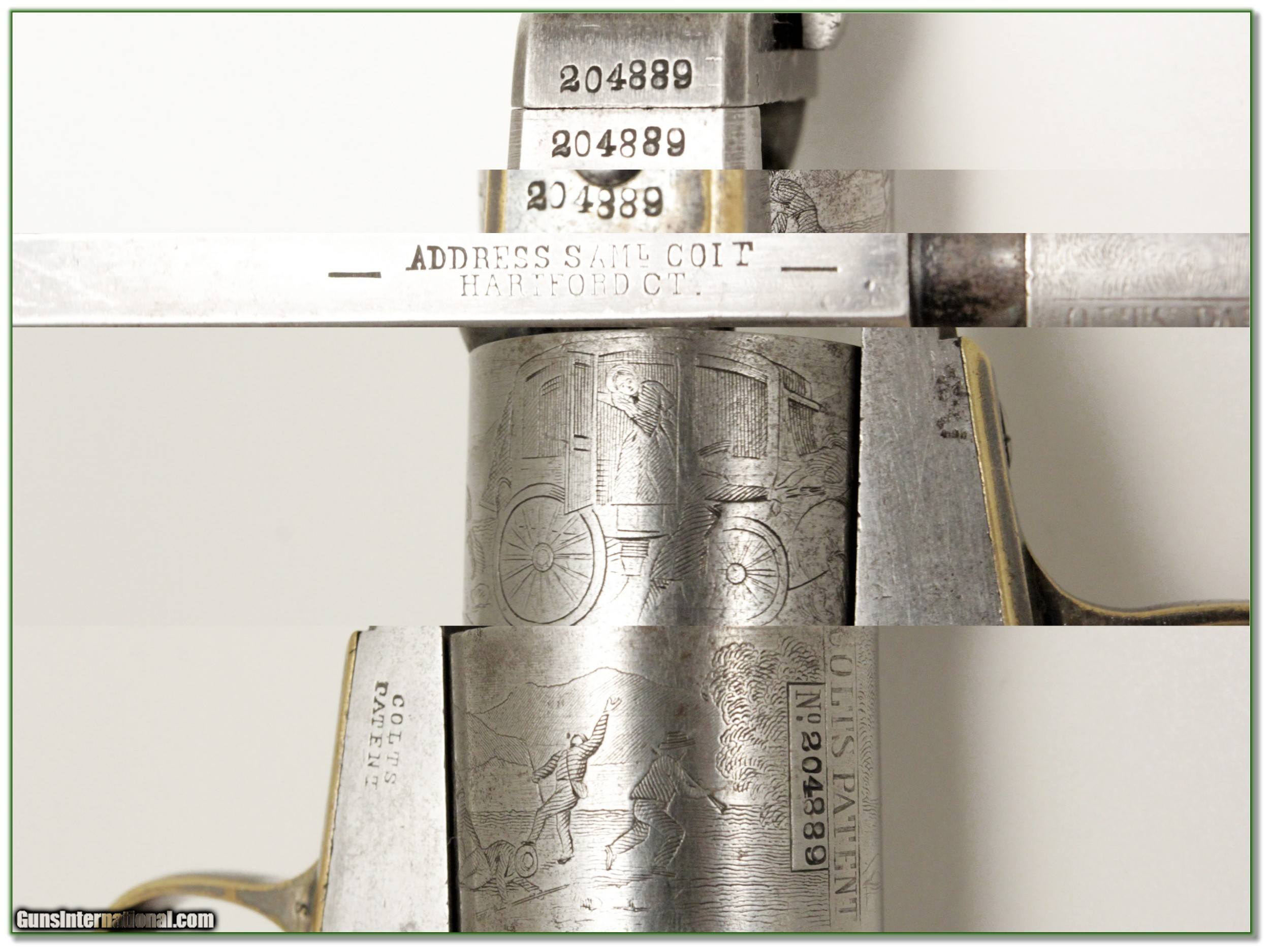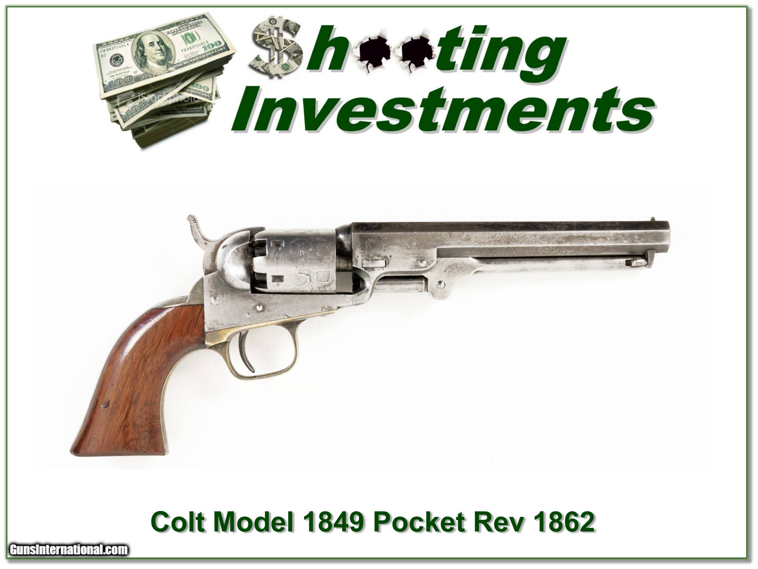 Description: This is an all original with all matching number Colt 1849 made in 1862. All letters, numbers and stagecoach engraving are still sharp. It will make a fine addition to any collection. I am selling this one on consignment and as such, lay-a-way can’t be used. It does of course have the standard 3-day inspection. Shipping and insurance is $49 or $19 more if you want it shipped in a new Plano hard case. Please email me with any questions or larger pictures. (Consign your quality firearms with Shooting Investments for only 10%! Let me know if you have any you would like to sell!) 17-0791 Payment: Payment is by Money Order, Cashiers Check or Personal Check. I can now also accept MasterCard and Visa with a 3% convenience fee. PayPal can be used for some items but never firearms. Please let us know if you would like to pay via PayPal. Shipping: The shipping charge will be listed in each description. It is $39 for most long guns and $29 for most handguns. Some heavy guns or those insured for over $2000 will be higher. Shipments to Alaska and Hawaii are higher because air shipment is required. Most firearms are shipped on Tuesday and Thursday and usually in 5 days of receipt of payment. We package all shipments carefully and insure them. For long guns you can purchase a new Plano case for $19. They now cost us $22 when buying 100 at a time. Optics are shipped Priority Mail and most other non-firearm shipments are shipped First Class. Returns: Our return policy is simple. If for any reason you are not pleased with your purchase, you may return your item for a full refund of purchase price. Ammunition cannot be returned. It is important to us that you are happy. Guns cannot be fired or dissembled before returning them and they must be returned in the same condition as received. Notification of a return must occur with-in 3 days of receipt at your dealer. Shipping, convenience and dealer fees are not refundable and are the responsibility of the buyer. Lay-a-way: If needed, we offer a 60 day lay-a-way option on most firearms. It is 1/3 now, 1/3 in 30 days and 1/3 in 60 days. Lay-a-way firearm sales are final and if not completed the first payment cannot be returned. Consigning your firearms with Shooting Investments: We will help you get top dollar for your firearms. While most local guns shops charge 20% or more, our fee is only 12% with a minimum of $75. At your local gun shop it might take months to sell. Selling on-line provides instant access to thousands of interested buyers. You won’t find any other on-line dealer willing to sell your firearms for only 12% or listing every gun on 3 separate s. Selling through an House typically costs the seller 15% and the buyer an addition 15% (so 30%) and you have to wait several months to sell and longer to receive funds. If properly priced, we will sell your firearms in a few weeks. Send us an email or give us a call and we’ll explain how easy it is for you to get top dollar. Trading: Trading for use is really just buying your gun to re-sell. If you have a gun you want to trade, please email a picture and we will let you know what we can give or it. You will always get more if we sell it for you on consignment. Help for California Buyers: We are happy to ship to California. It is the buyer’s responsibility to make sure any item you buy is legal in your state. We are also happy to help with your purchase of a firearm from someone other than us. If you see a gun you would like to buy but the seller can’t or won’t ship to California they can ship to use and we’ll then ship it to your California dealer. The cost for this service is only $30 + shipping. Let us know if we can help! SOLD |
