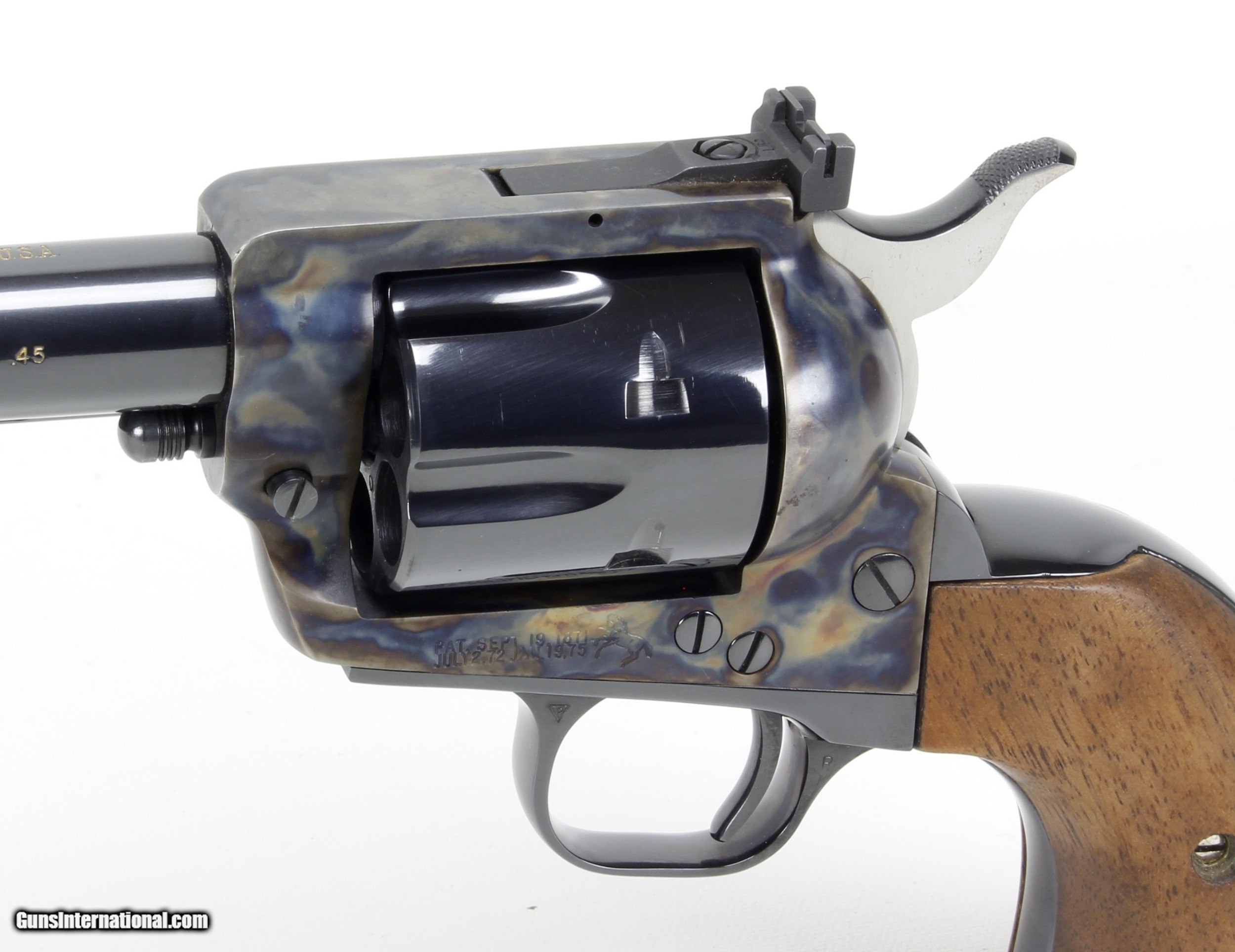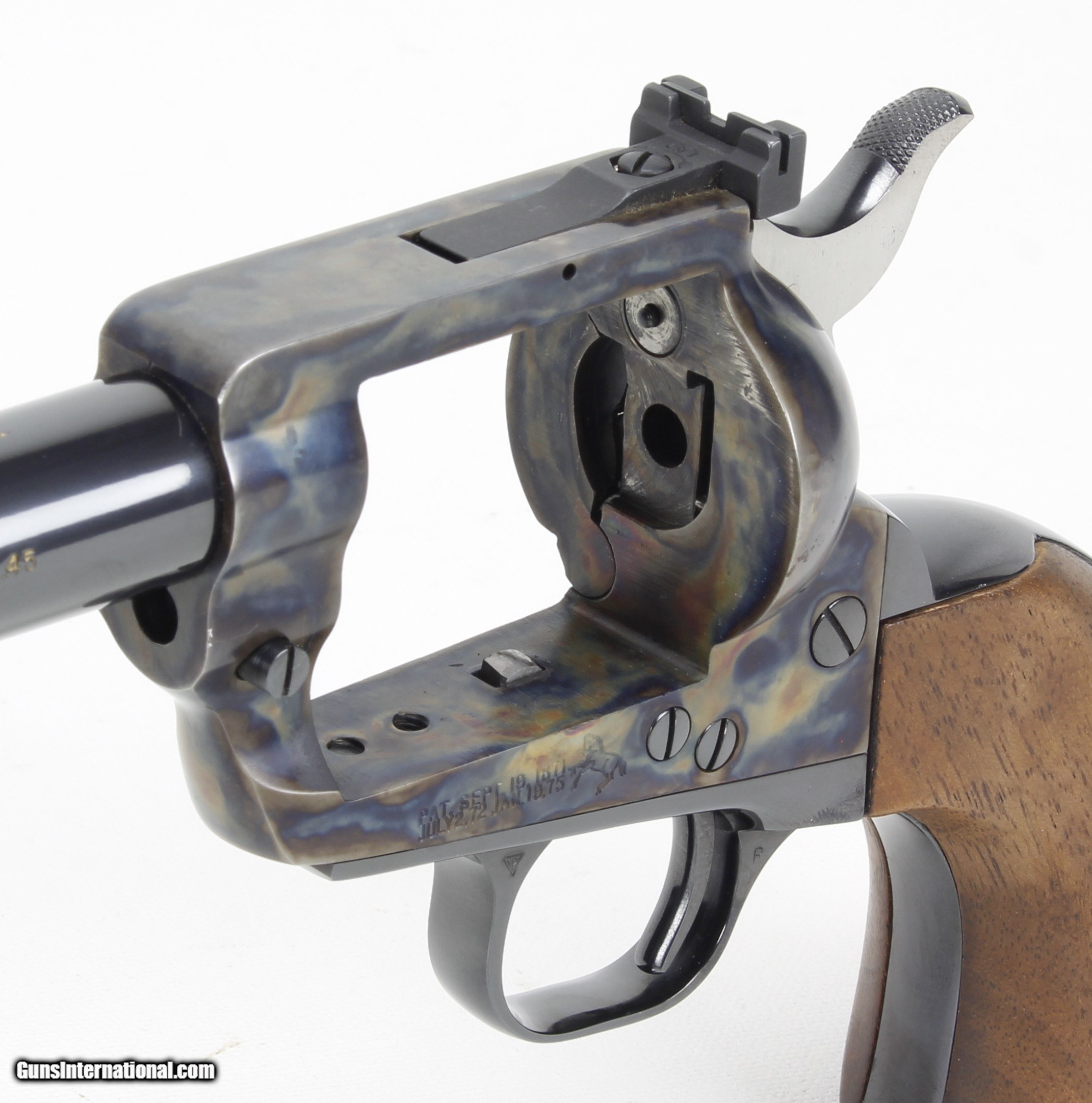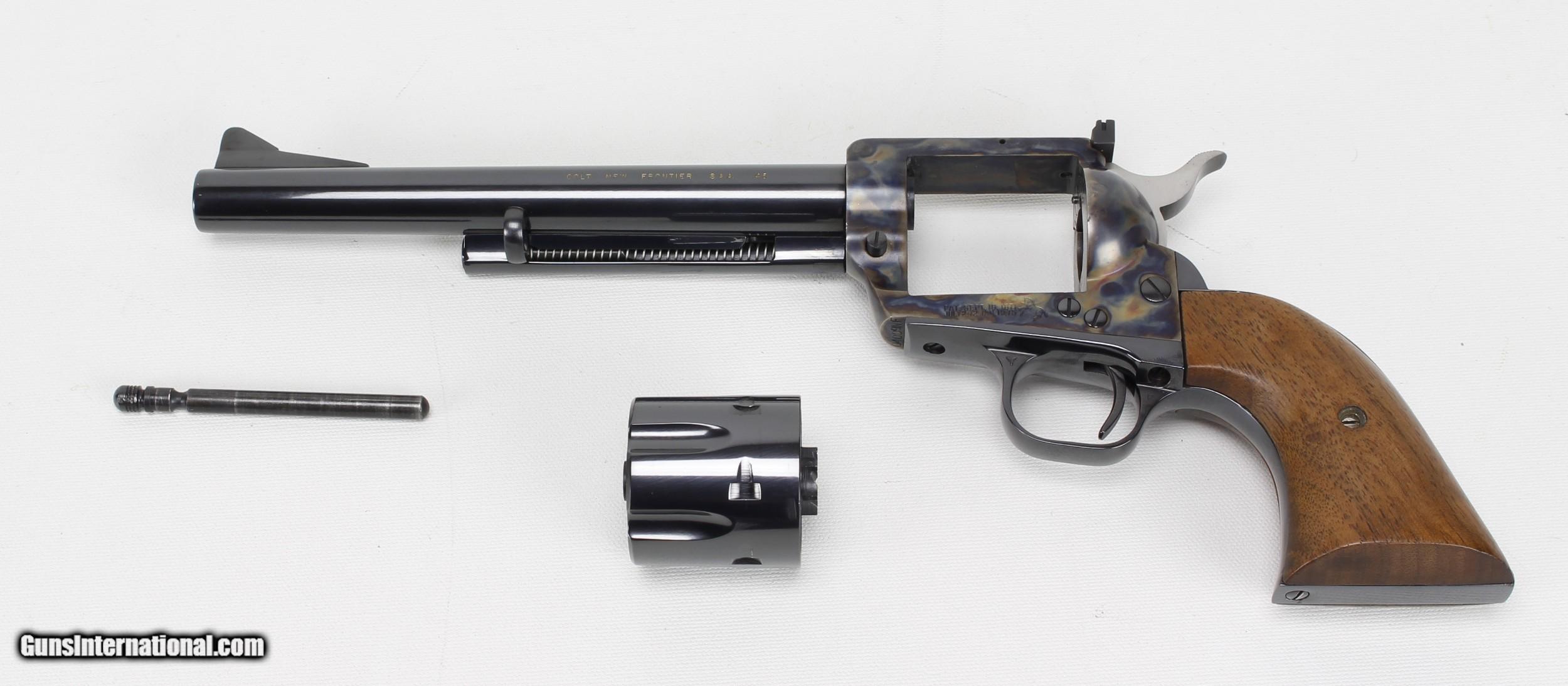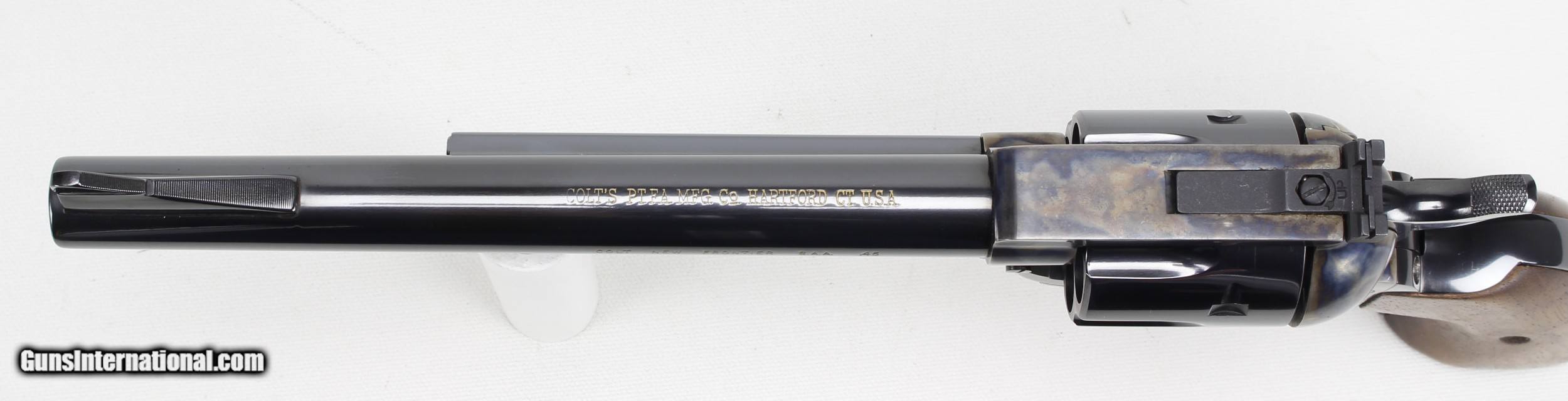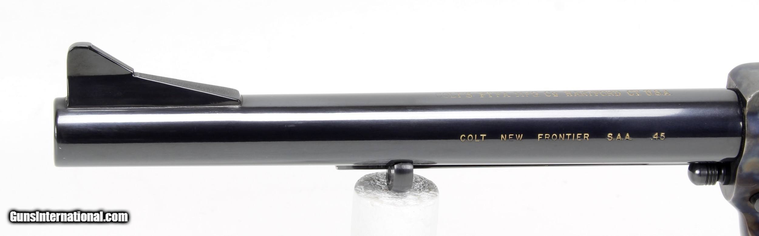 Description: COLT SAA, NEW FRONTIER, 45COLT, 3rd Generation. Blue/Case Finish. 7 1/2" Barrel, Rosewood Grips, SN#04009NF, MFG; 1978. Gun Appears Unfired. Grisp Action . Ships to Lower 48, W/ Insurance: $35.00 SOLD Manufacturer: COLT Model: SAA Serial Number: 04009NF Caliber Info: 45 colt Bore: NEW Condition: LNEW Metal Condition: LNEW Barrels: 7 1/2 |