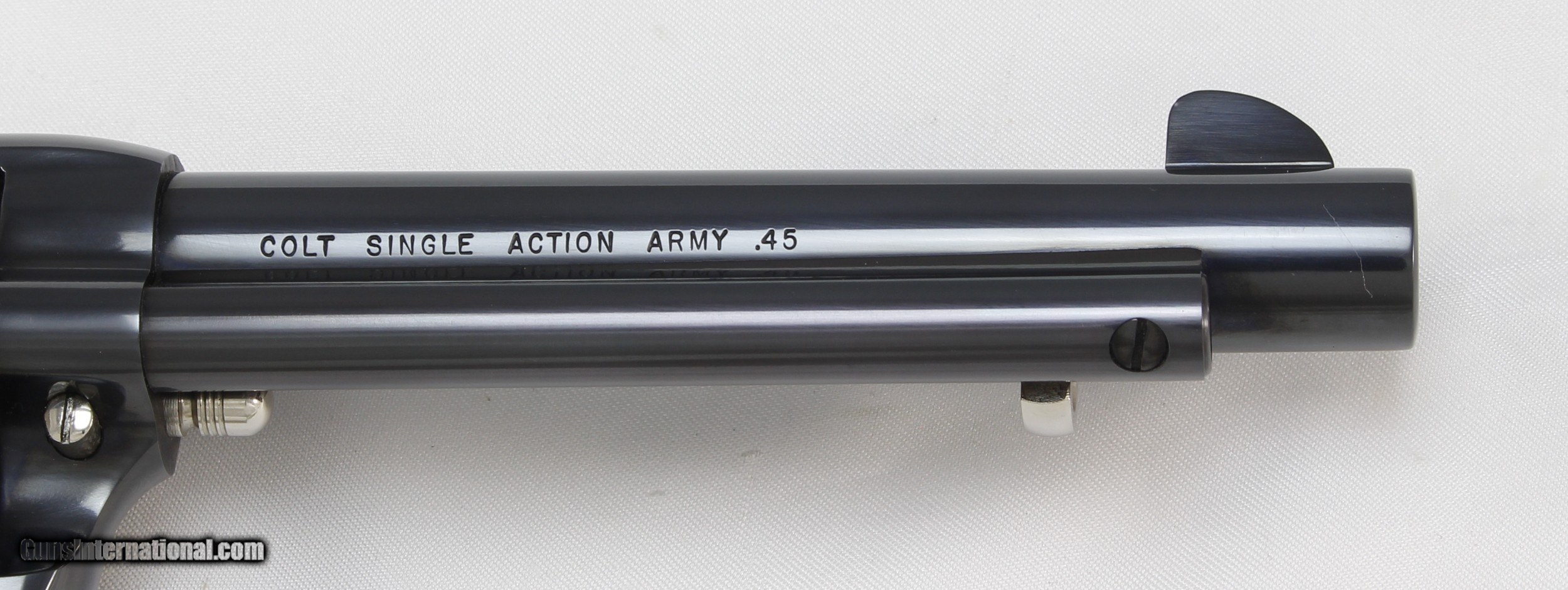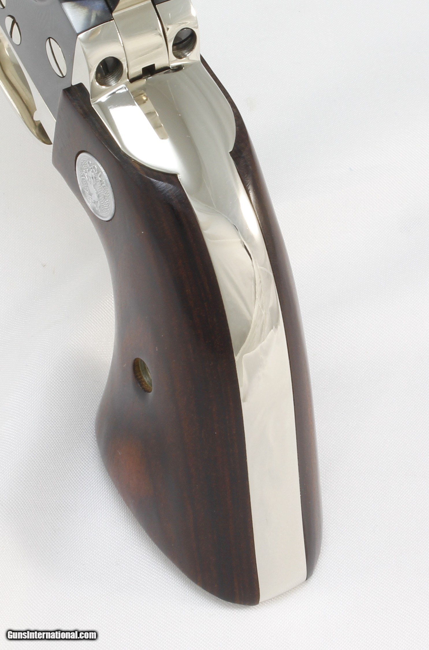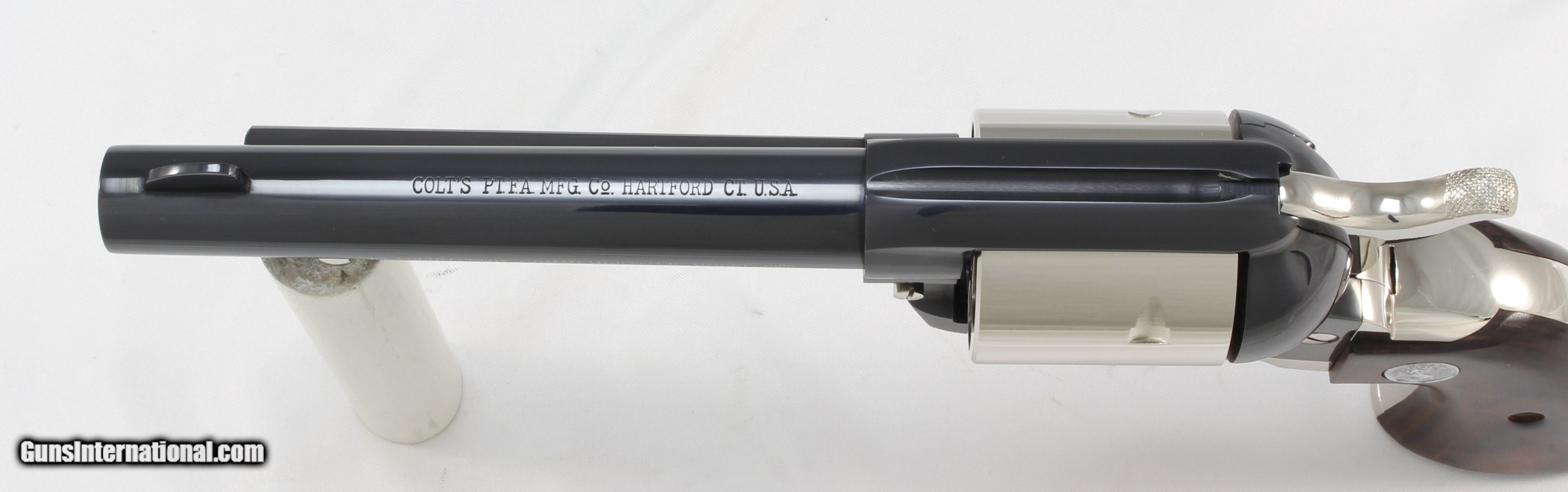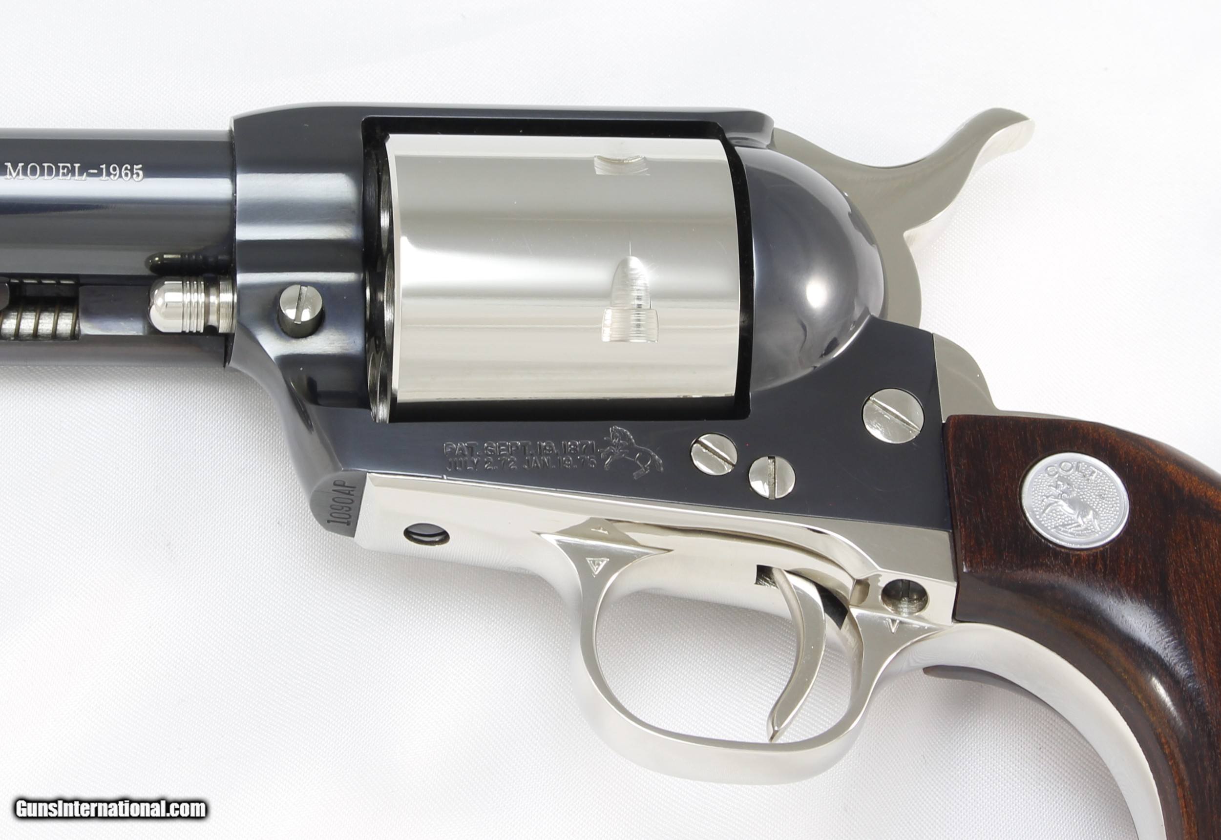 Description: COLT SAA, 2ND GENERATION, "APPOMATTOX COMMEMORATIVE", One of 250, 45LC, 5 1/2" Barrel, Deep Blue Frame, Chrome Non-Fluted Cylinder, Trigger, Trigger Guard, Hammer and grip Frame. Un-Fired in Original Wooden Display box. SN#1090AP. MFG: 1965. Ships to Lower 48, W/Insurance: $45.00 Price: $2745.00 SOLD |