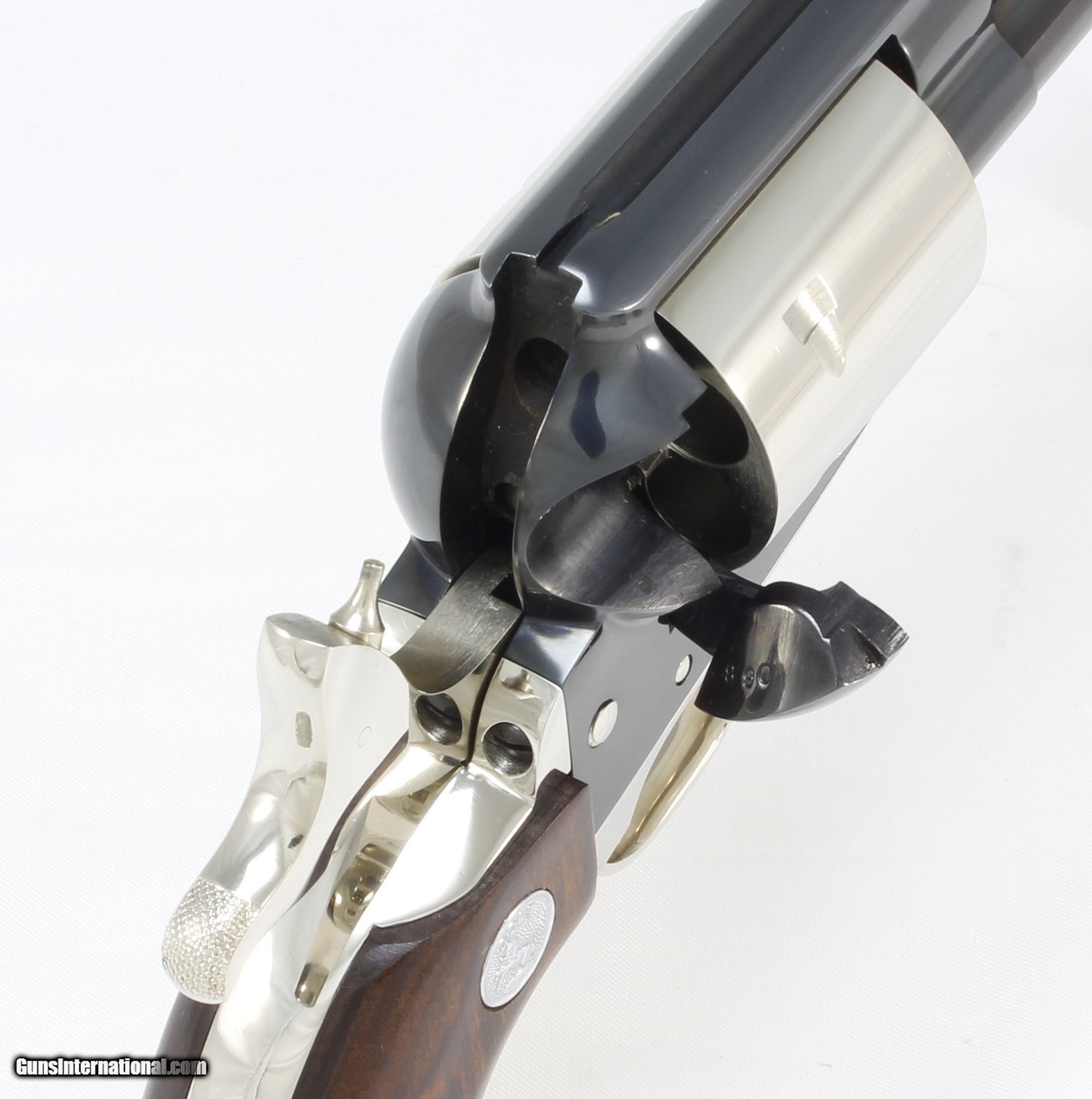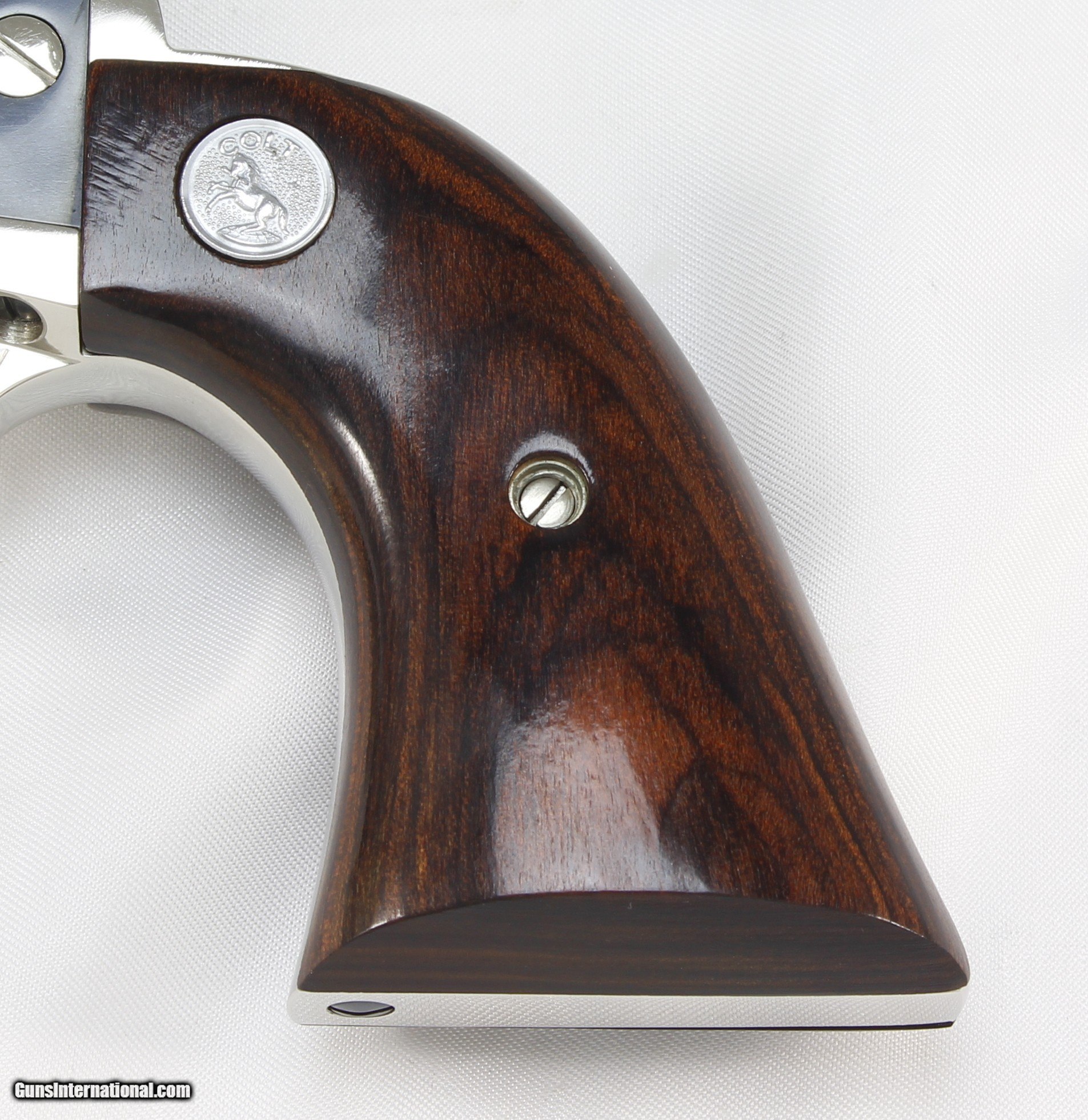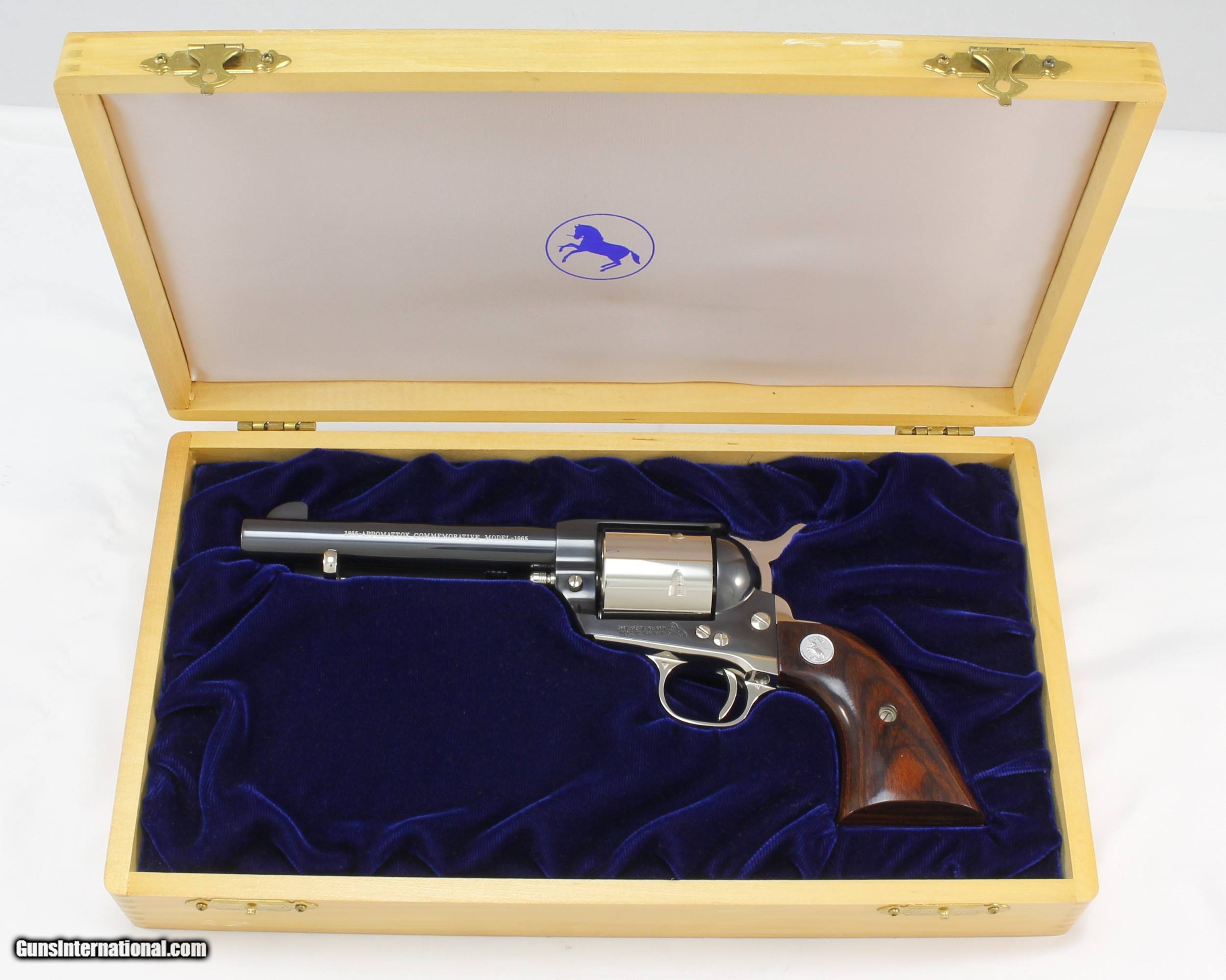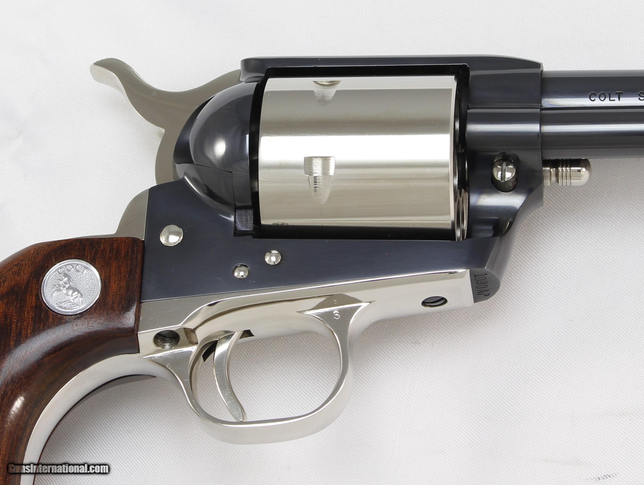 Description: COLT SAA, 2ND GENERATION, "APPOMATTOX COMMEMORATIVE", One of 250, 45LC, 5 1/2" Barrel, Deep Blue Frame, Chrome Non-Fluted Cylinder, Trigger, Trigger Guard, Hammer and grip Frame. Un-Fired in Original Wooden Display box. SN#1090AP. MFG: 1965. Ships to Lower 48, W/Insurance: $45.00 Price: $2745.00 SOLD |