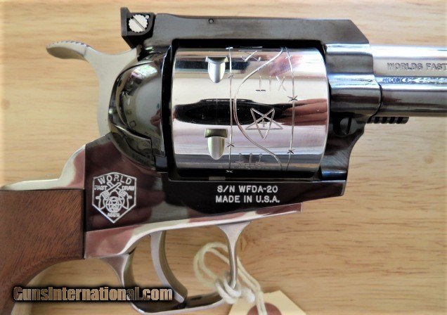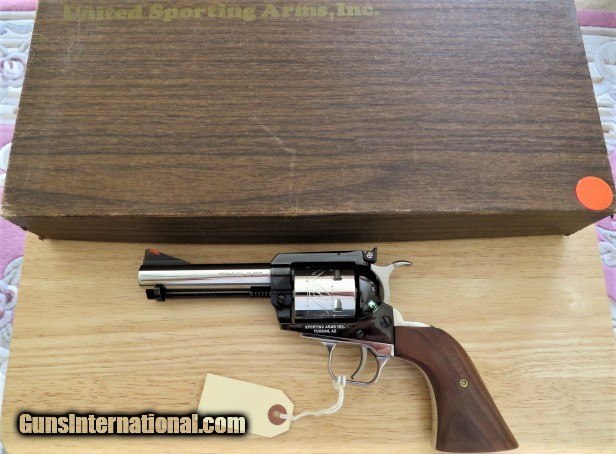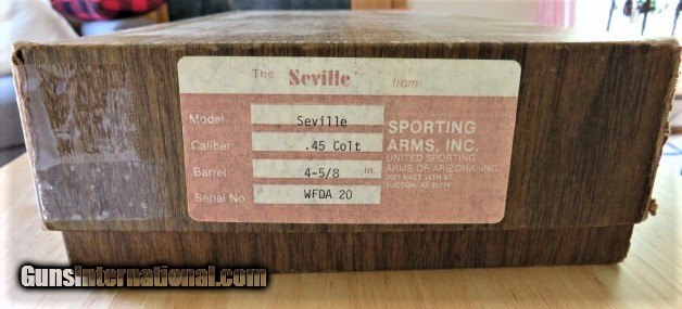 Description: SALE PENDING 20230801 - USA made very few commemoratives. This item was produced to commemorate the World’s Fastest Draw Association (WFDA). 1 of 200 is stamped on the top of the backstrap however, only about 21 were produced. Gun is unfired beyond factory proofing. The grips show excellent grain and color. Gun is unmarked except for a very faint cylinder ring. I have never cycled the action. The original box and packing foam are provided. Box shows storage wear but is fine to excellent. Please review the pictures to personally assess condition and contact me with questions. Note that this item can be returned only if delivered damaged during shipment. Shipping/insurance to the lower 48 states is included in the purchase price; additional shipping fees apply for Alaska and Hawaii. Item will be shipped by an FFL; an FFL is required to purchase. Please do not attempt to purchase this item if the laws of your state prevent receipt or transfer to you. Will be shipped according to the laws of the ship-to destination. SOLD Handgun Caliber: .45 Colt Manufacturer: United Sporting Arms Model: Seville Serial Number: WFDA-20 Barrel Length: 4 1/2-inches Condition: Excellent |