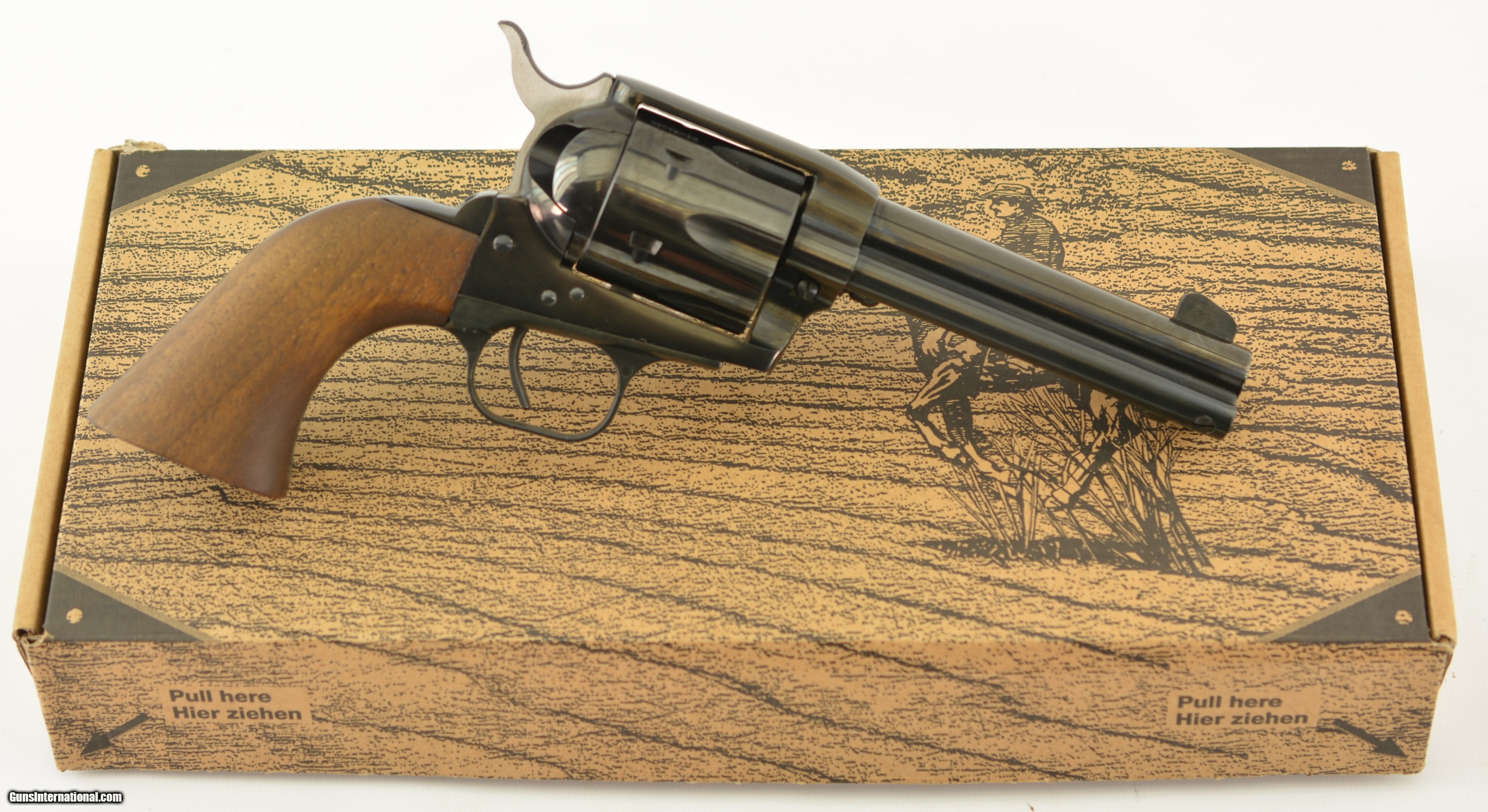 Description: Serial #N8945, .357 Magnum, 4 3/4 inch barrel with an excellent, bright bore. This is a Weihrauch-made SAA copy that retains virtually all of the original blue on the metal, and only a faint hint of a turn-ring on the cylinder. The wooden grip is likewise in almost unused condition, and the action is tight and fully functional. The revolver is housed in its original cardboard box with manual, bore brush, and gun lock. This is a practically unused ‘Cowboy Action" revolver in a versatile modern chambering. FFL SOLD Manufacturer: EAA Model: SAA Serial Number: N8945 Caliber Info: .357 Mag Gauge Info: .357 Mag |