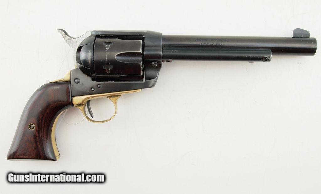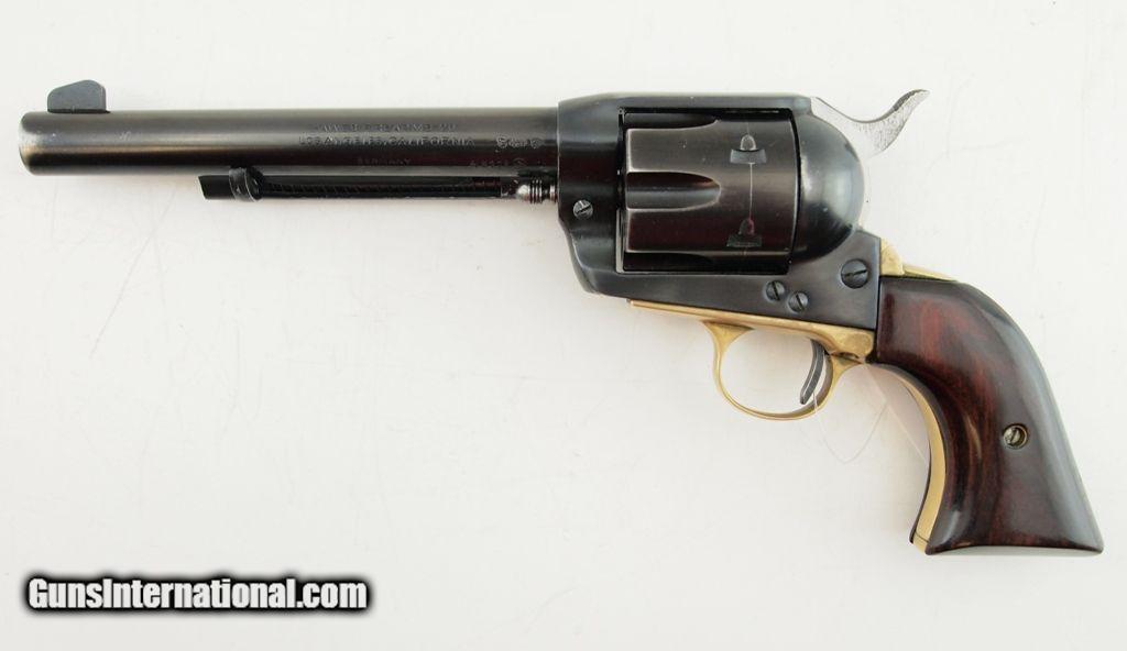 Description: Hawes Western Marshal SA .44 MAG, Made in Germany, 6 1/2"bbl, bright shiny bore, good rifling, iron sights, blued finish, some holster wear on muzzle end of barrel - cylinder - extractor, brass frame, and very nice smooth hardwood grips. Add 3% for Credit Card Shipping $25.00 SOLD |