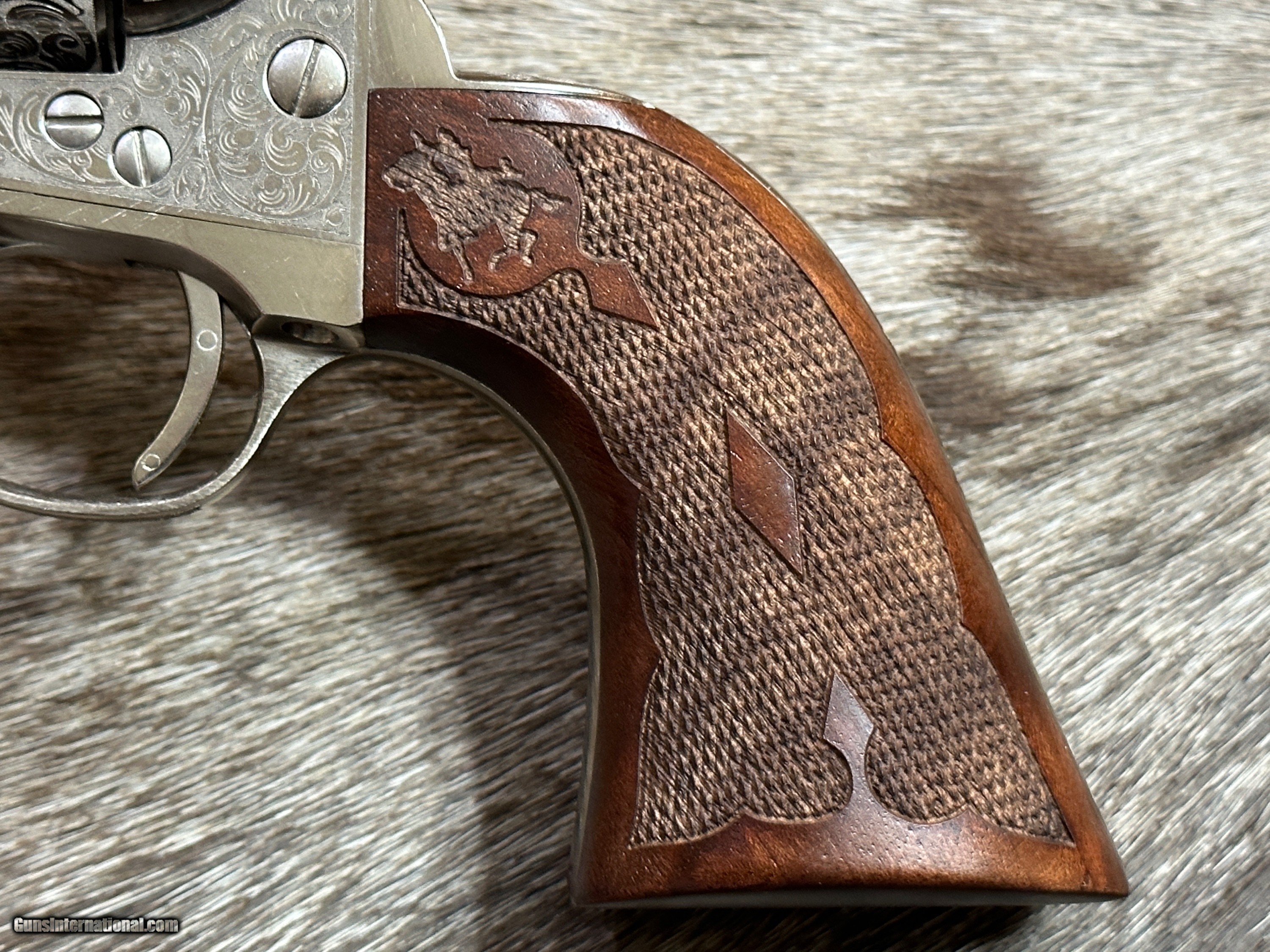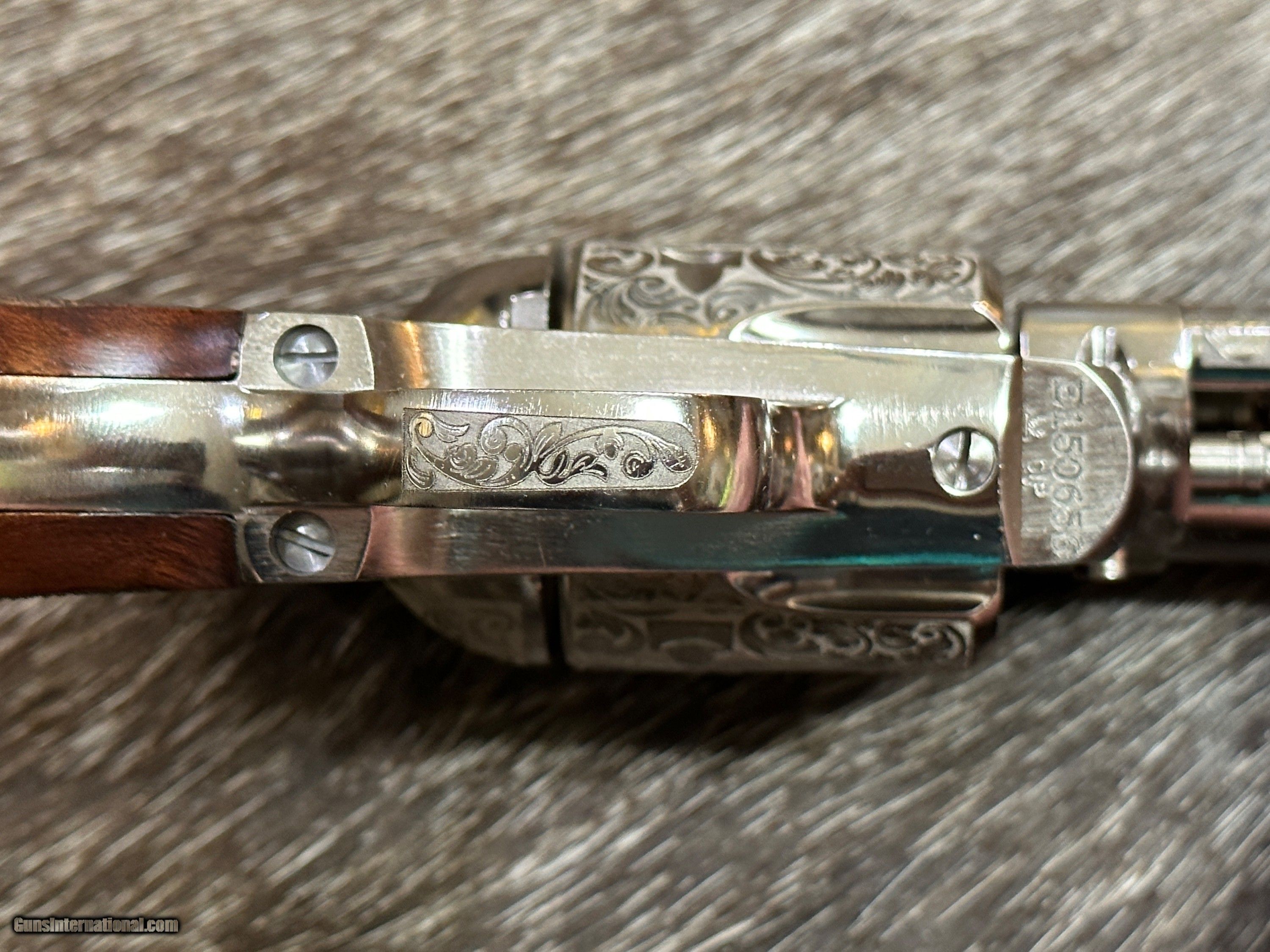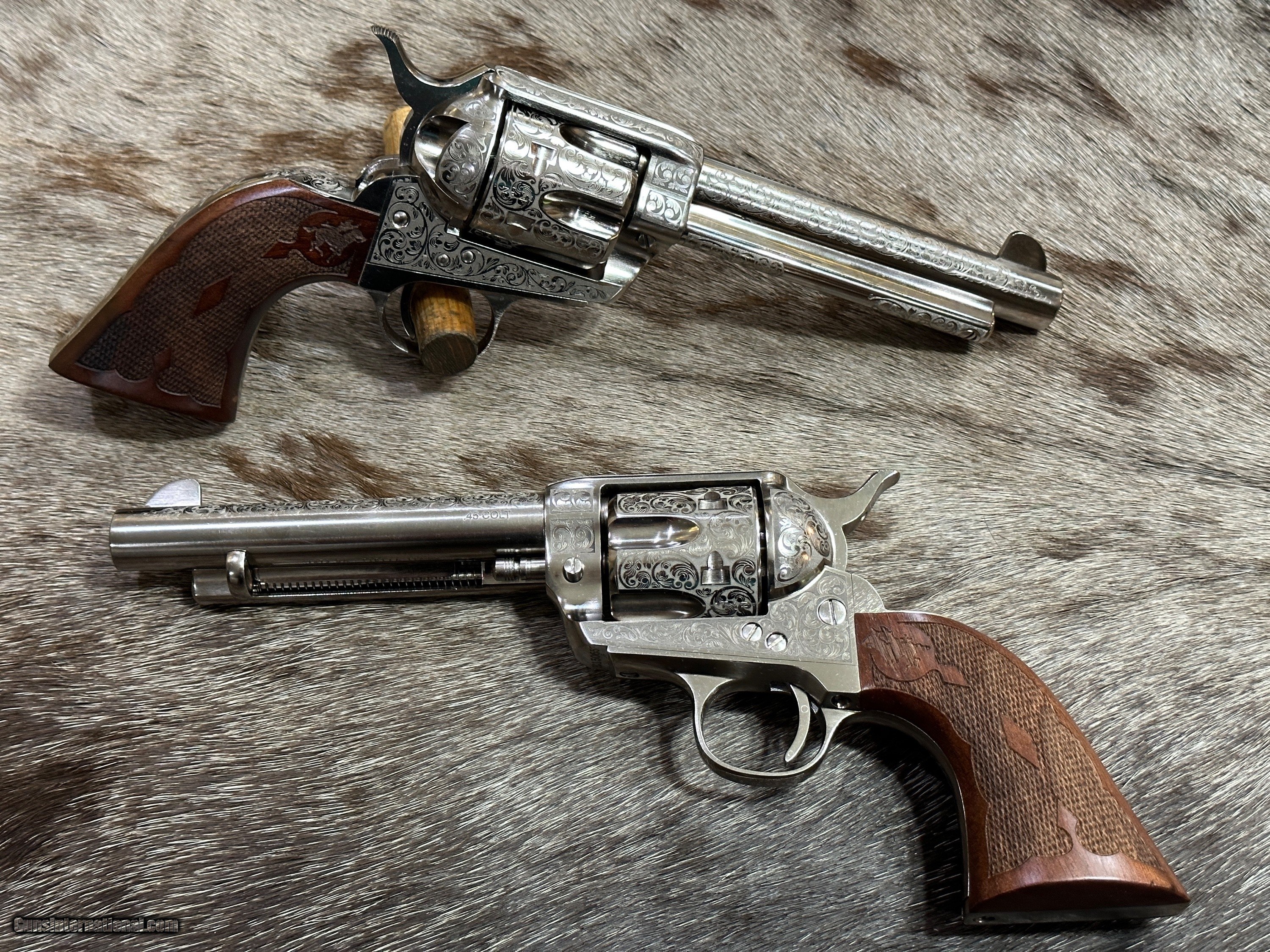 Description: NEW LIMITED EDITION PAIR OF CONSECUTIVE SERIAL NUMBERED 1873 45 COLT BUFFALO BILL CODY ENGRAVED NICKEL REVOLVERS WITH 5.5" BARRELS BY CIMARRON & PIETTA - LAYAWAY AVAILABLE FEATURES OF THIS FANTASTIC PAIR OF CONSECUTIVE SERIAL NUMBERED 1873 ENGRAVED NICKEL REVOLVERS INCLUDE: