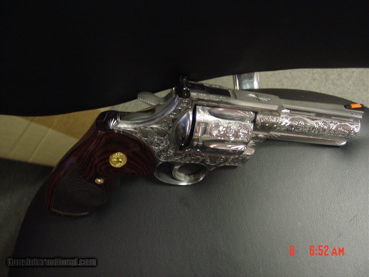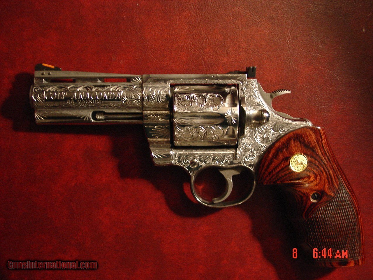 Colt Anaconda 4",fully engraved & polished by Flannery Engraving,44 mag,Rosewood custom grips, box,Manual etc,a true work of art !!