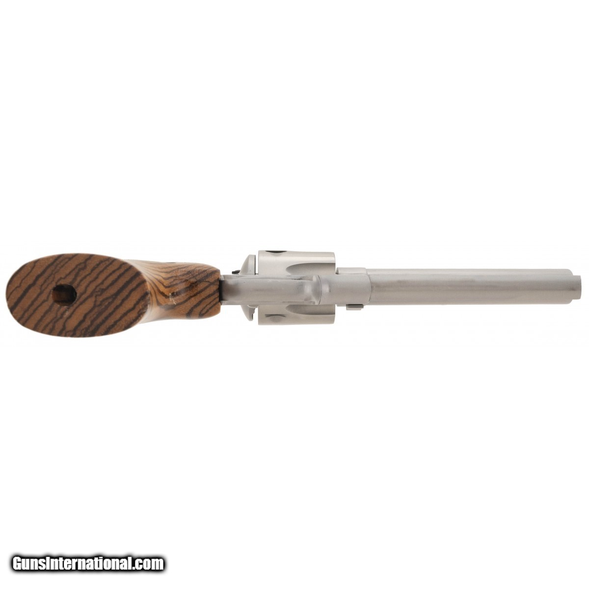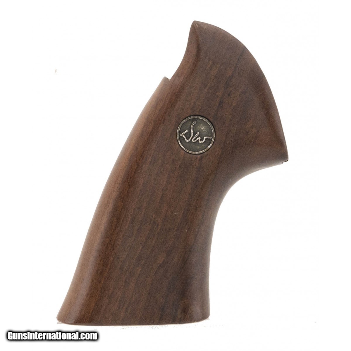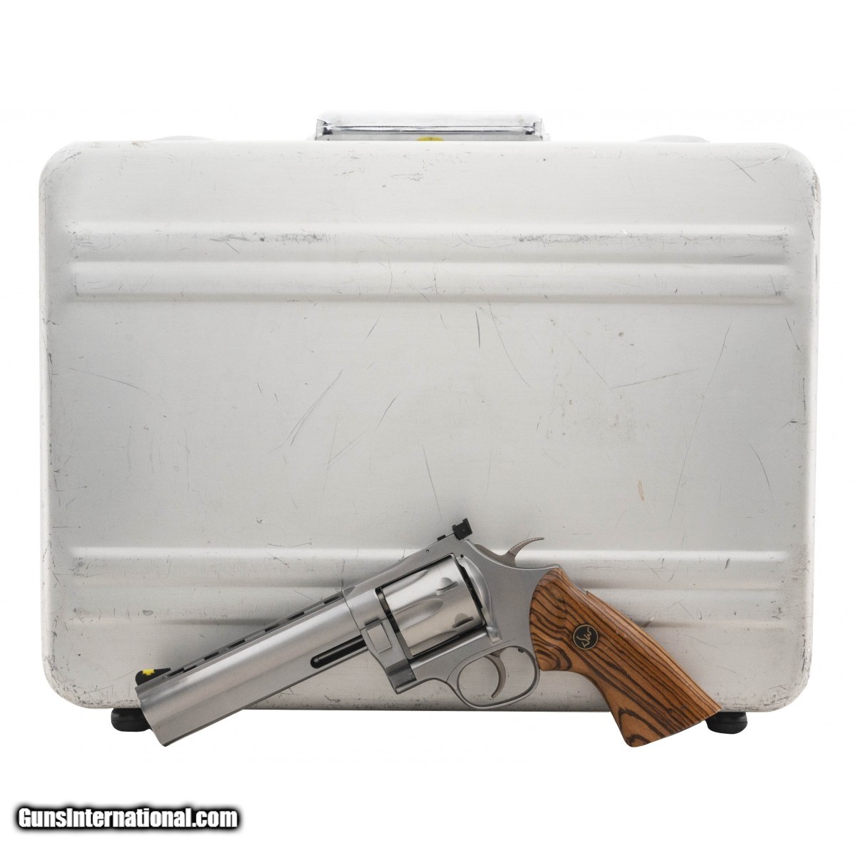 Description: " SN: 44S004065. Scarce and desirable stainless big bore Pistol Pac. Has 6"" and 8"" vent rib heavy barrel shrouds, with 2 barrels for each, ported and unported. Shows light use and wear. Comes with 2 sets of grips, a buckle and various accessories all in a metal Halliburton case. Overall very good condition. SOLD |