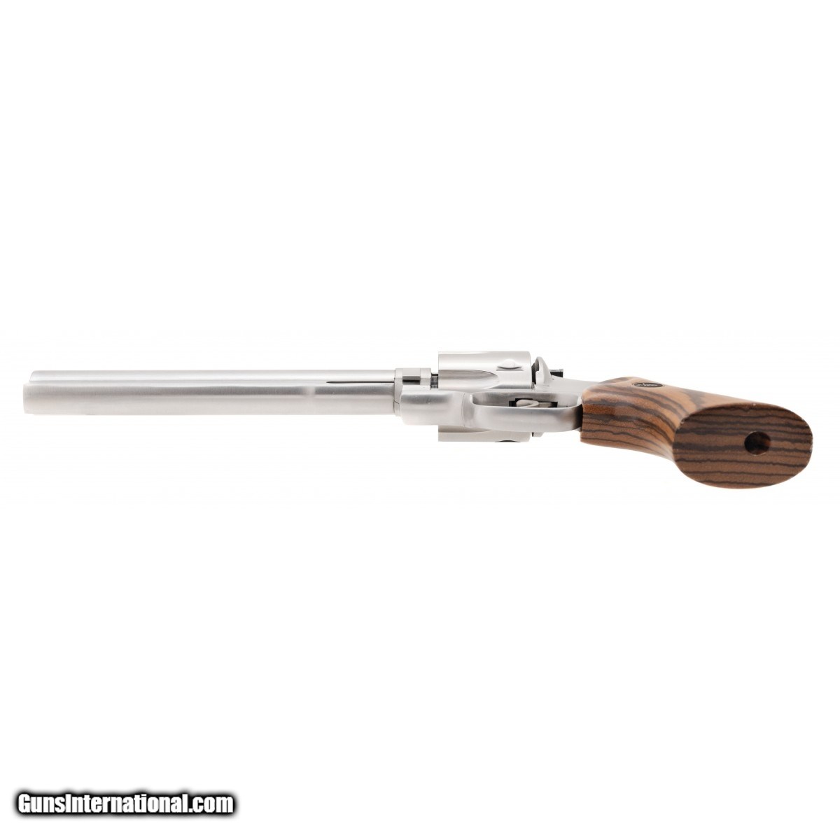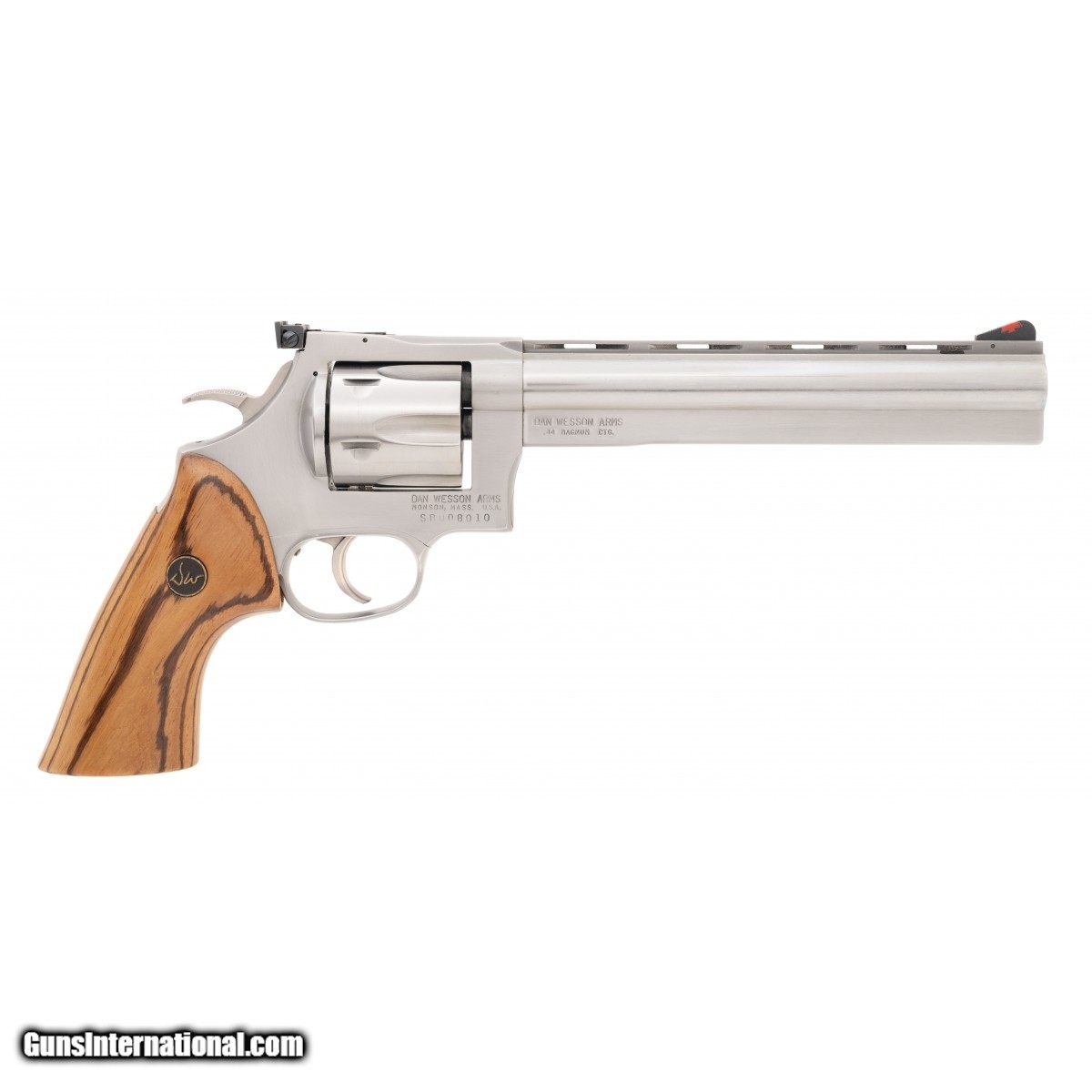 SN: SB008010. Manufactured circa 1980s. Chambered in .44 Magnum with a 8"" barrel, bore is excellent. Double action revolver with all steel frame, stainless finish, vent rib barrel, adjustable rear sight and Dan Wesson wood grips. Overall very good condition. (Consignment)