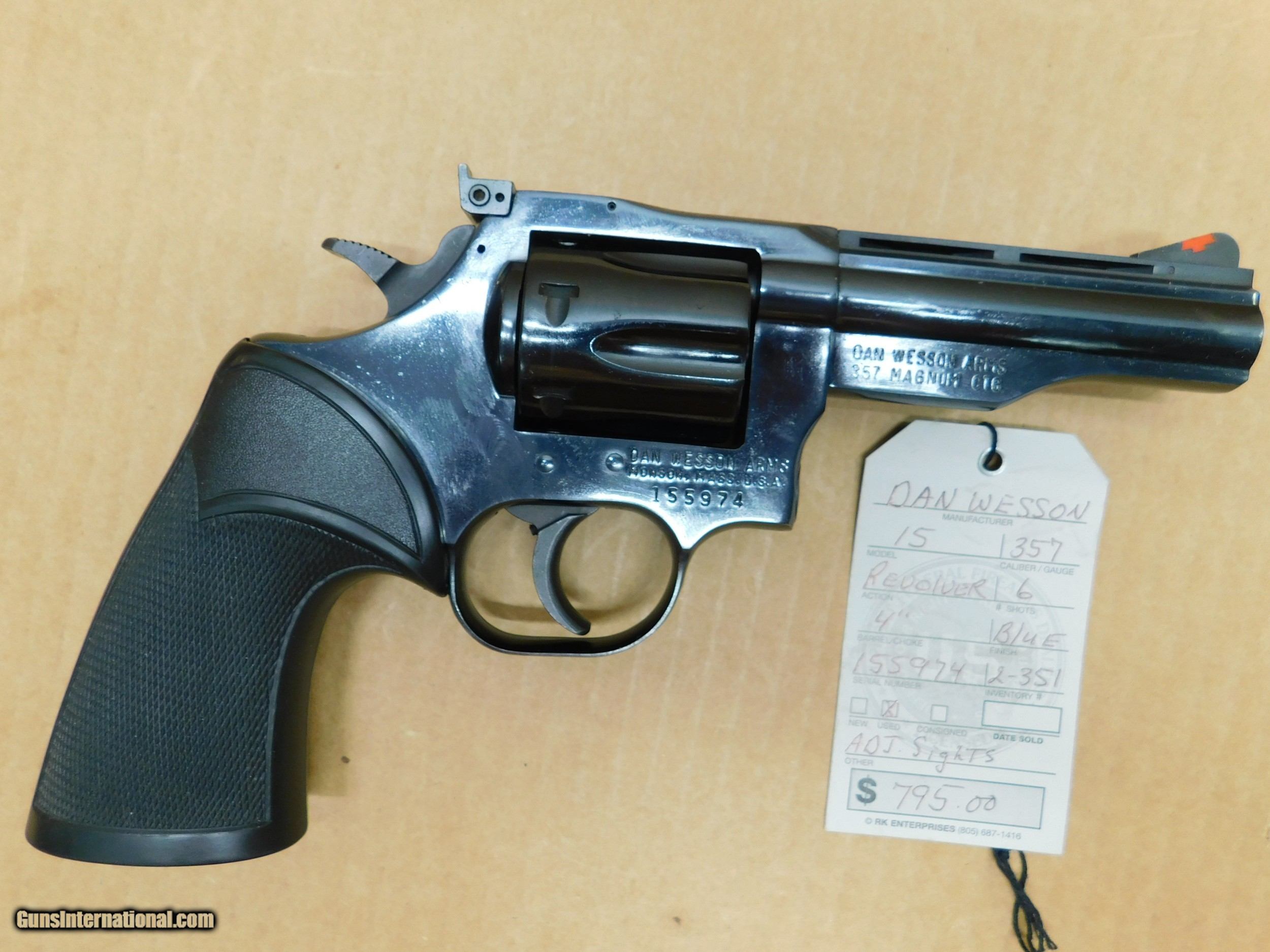 Description: This is used Dan Wesson 15, .357 revolver It is a 6 shot with a 4" blued barrel Has adj. sights SN-155974 SOLD Manufacturer: Dan Wesson Model: 15 Serial Number: 155974 Barrel Length: 4 Caliber Info: .357 Bore: very good Condition: Used Metal Condition: very good Bore Condition: Very good Barrels: very good Action: Revolver Triggers: Standard Finish: Blue Sights: Adj sight |