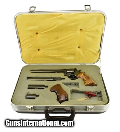 Dan Wesson 15 Pistol Pac .357 Magnum Caliber Pistol. Desirable Pistol Pac set with 4 barrels, 8”,6”,4” and 2 ½”. Comes in the original case with an extra set of grips and tools. Excellent condition.
