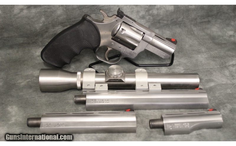 Description: Dan Wesson 15VH 357 Magnum with 4 barrels and a case. Has the tools to change the barrels and is in very good condition. .357 Mag SOLD Metal Condition: Good Bore Condition: Good Barrels: "2.5, 3.5, 5.5 & 7.5"" Sights: 7.5" barrel has a scope Item Location: Auburn Hills, MI |