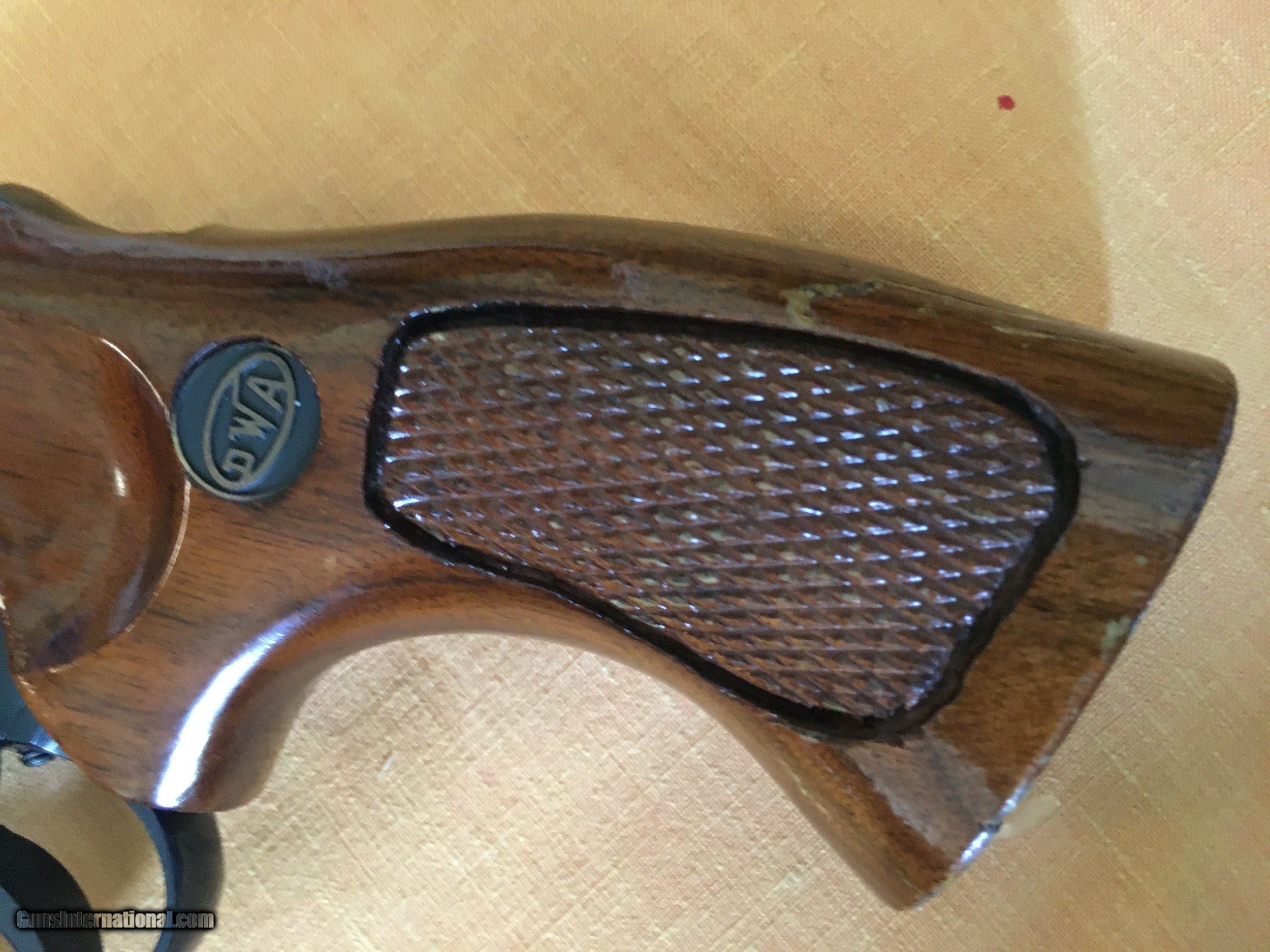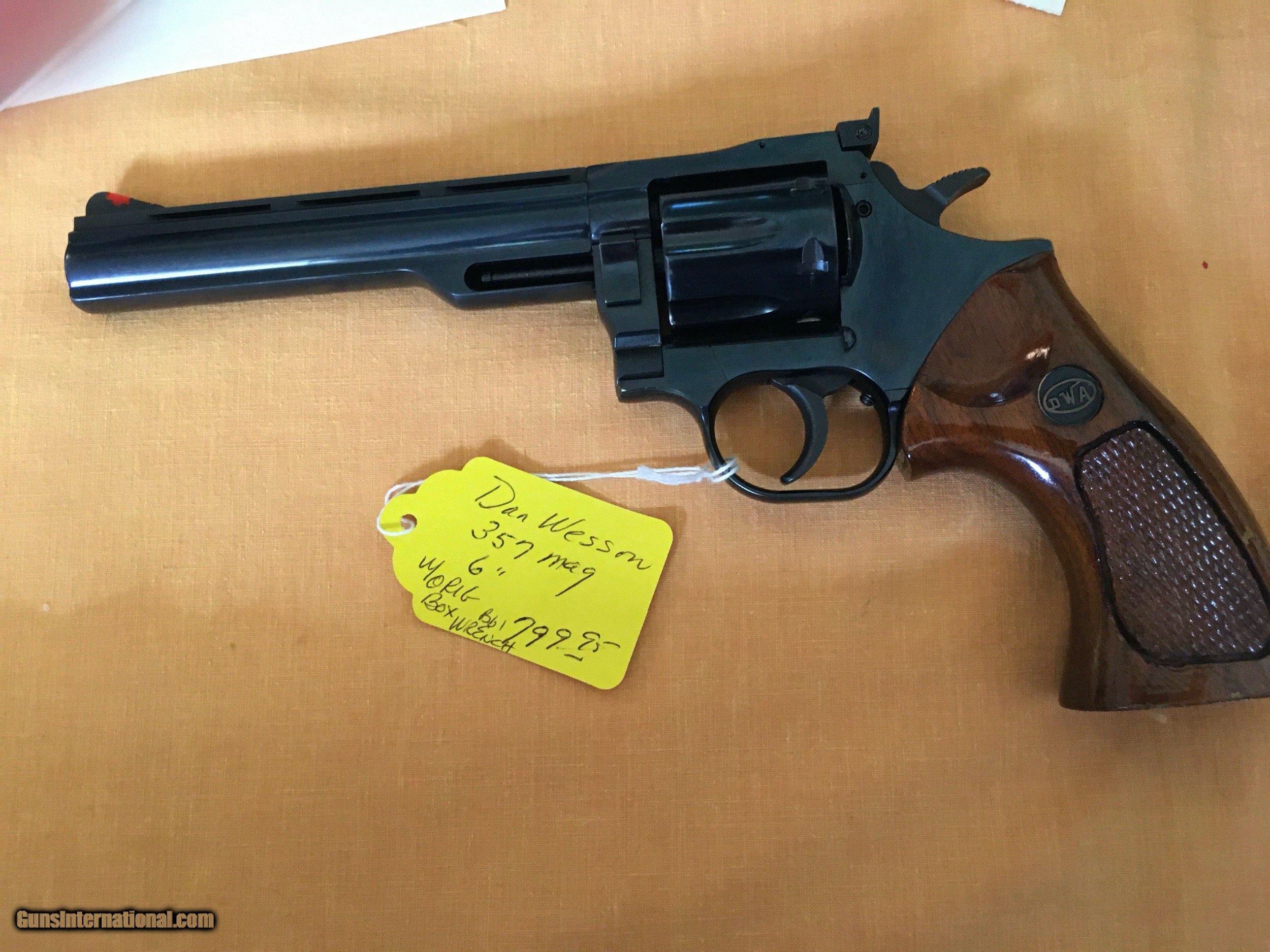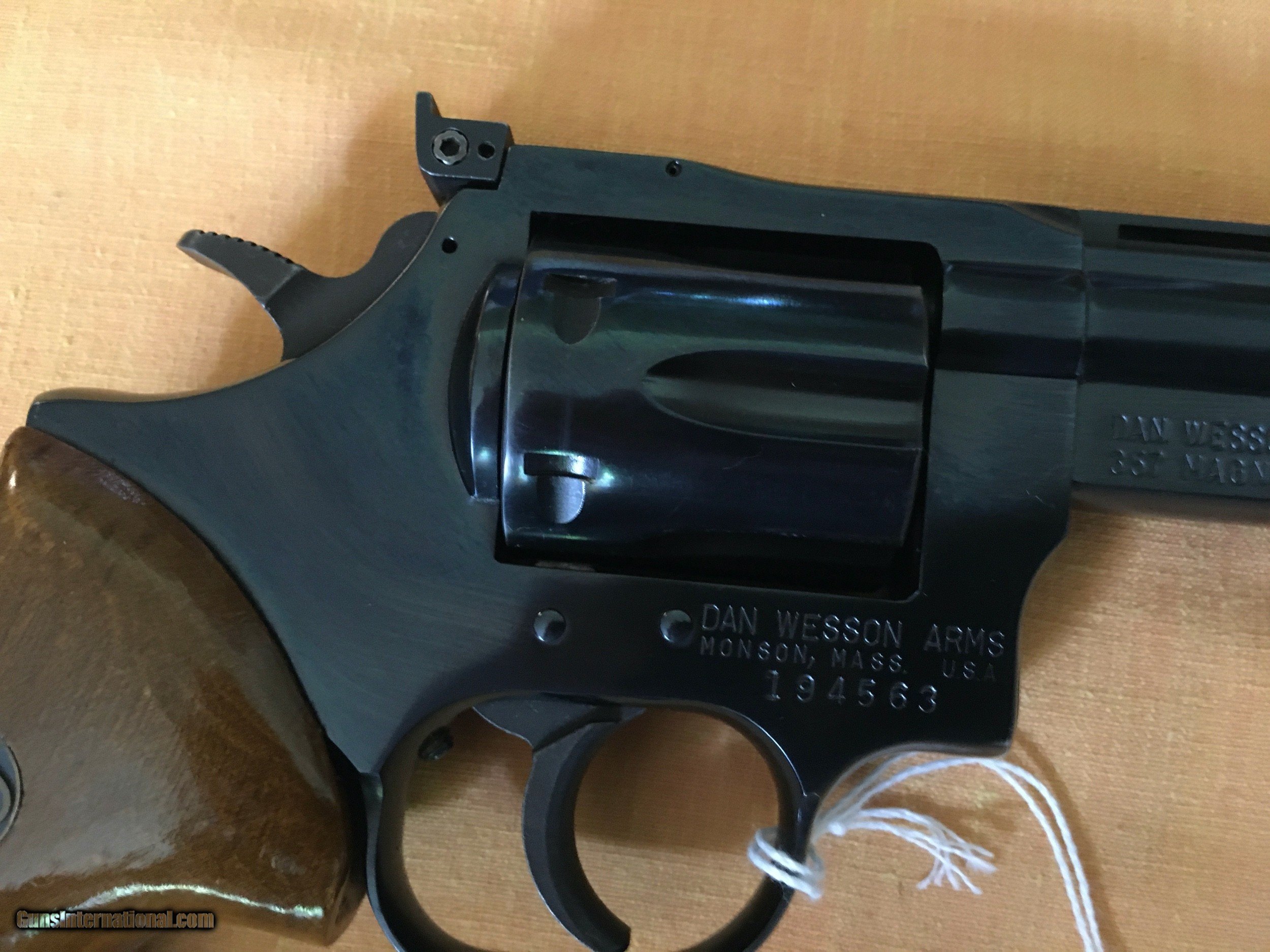 Description: Dan Wesson 357, .357 Magnum revolver. 6-inch vent rib barrel. Serial number 194563. Excellent condition except for some distress marks at the bottom of the grip. Comes complete with original box, manual, barrel wrench and spacer. SOLD |