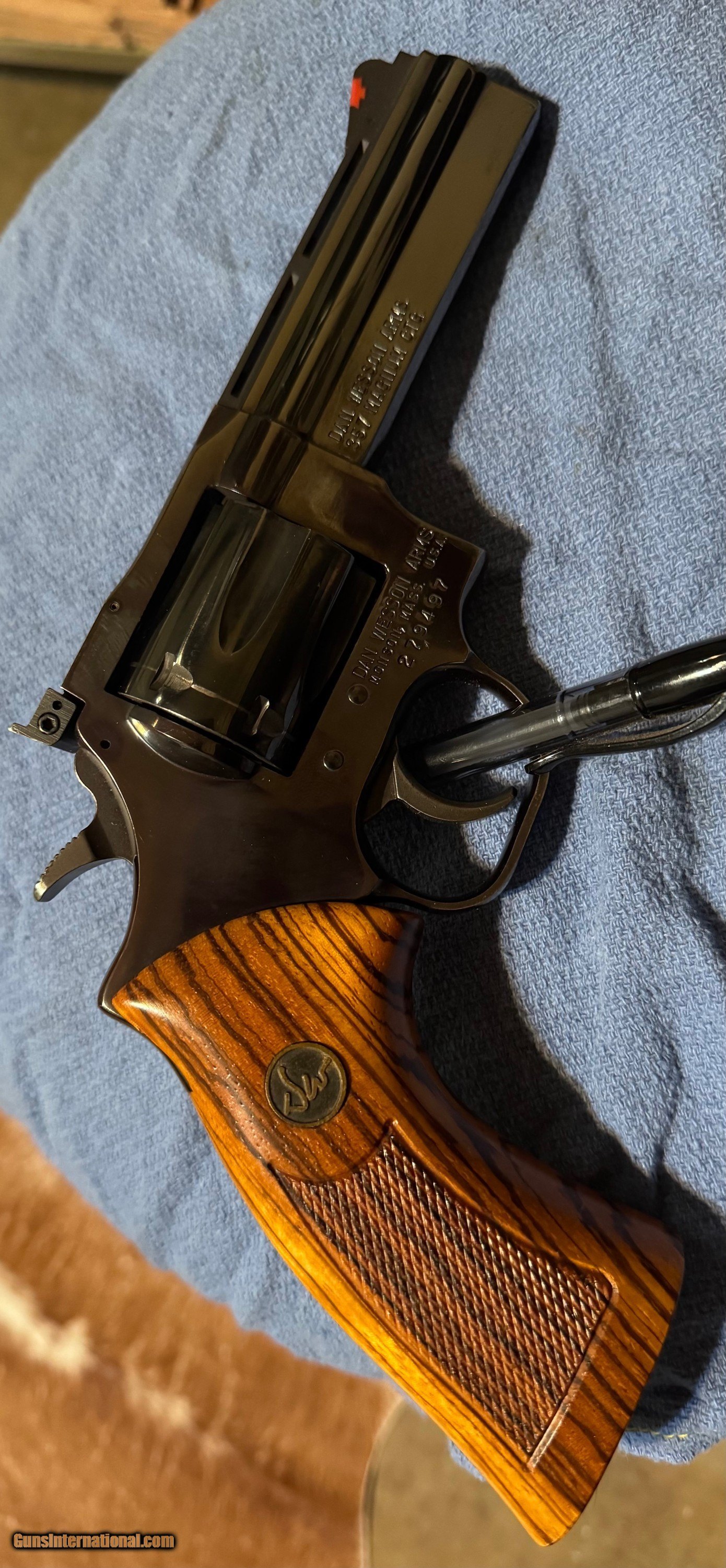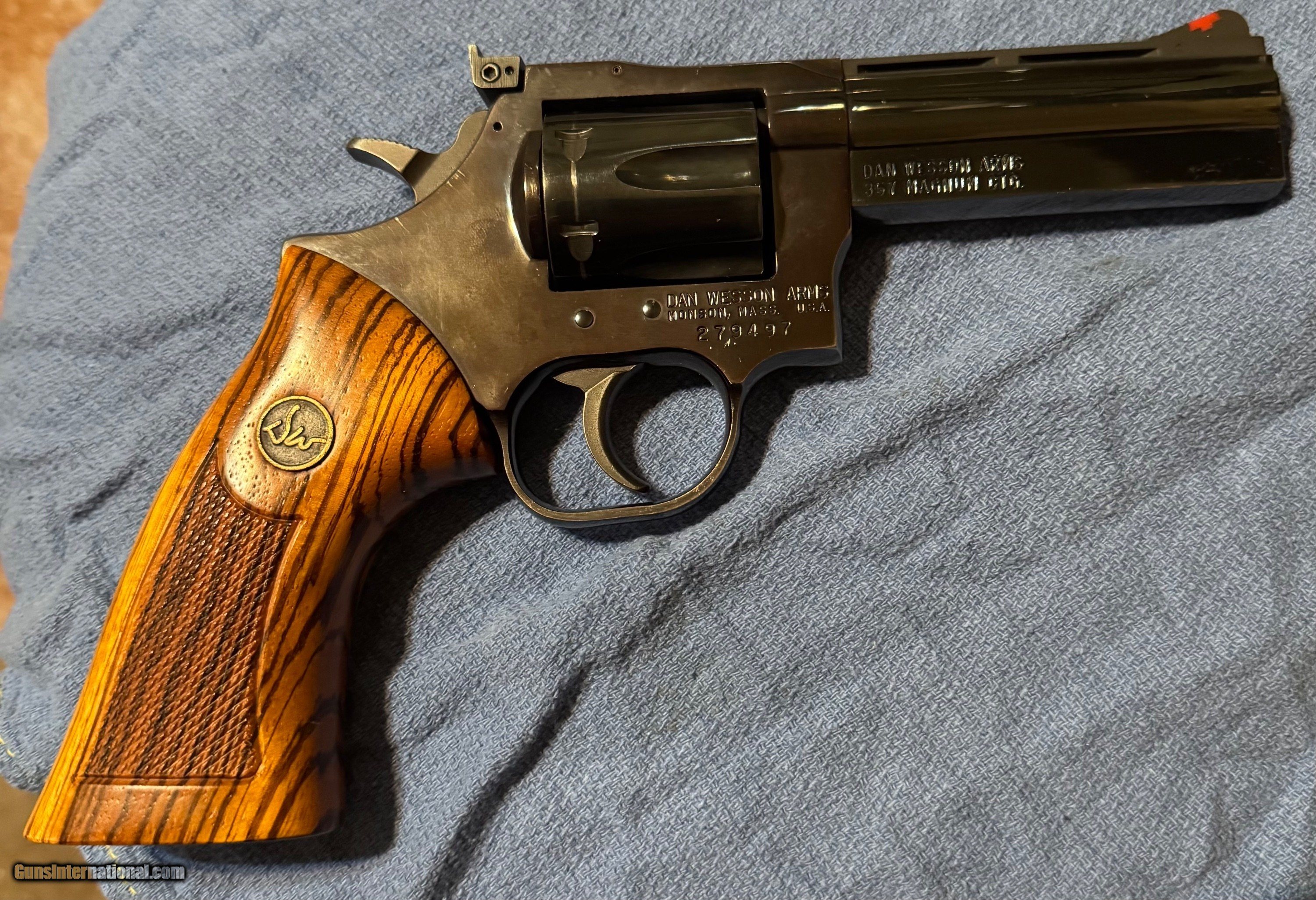 Dan Wesson 357 magnum, 4in VH barrel. Blueing is good and the wood grip is very nice. It's a Monson, Mass gun. Overall very nice gun for its age. Please message with any questions or additional pics. Thanks for looking