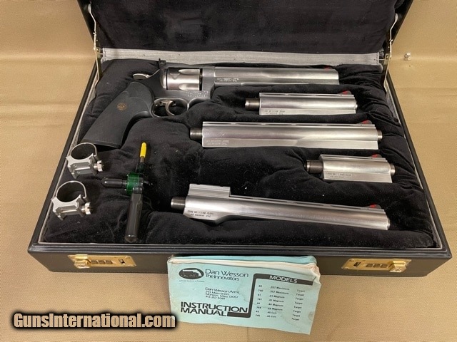 Description: DAN WESSON REVOLVER - USED MODEL - 44 MAG CAL - 44 MAG 6 SHOT SA/DA 5 BARRELS - 8",9",5",3" + 9" WITH RAIL SCOPE RINGS LOCKABLE HARD CASE BBL TOOL SOLD Manufacturer: DAN WESSON Model: 44 magnum Caliber Info: 44 MAG Condition: used Barrels: 9 BARREL Finish: STEEL |
