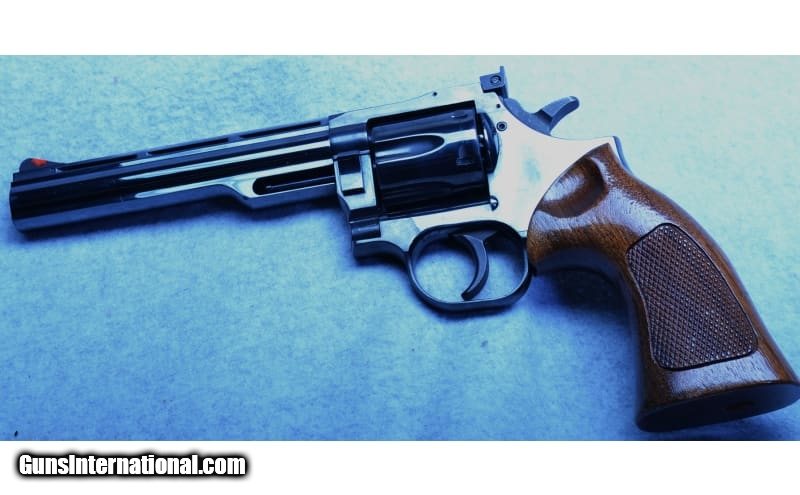 Description: This is a lightly-used Dan Wesson revolver in .357 Magnum. The Model is a DA/SA revolver. It features steel construction, a gloss-blue factory finish, a 6-shot fluted cylinder, factory adjustable target sights with a white-outline rear and hi-viz red front blade, a target-style smooth-faced trigger, 1-piece checkered Walnut Target-style grip, and it quickly proved to be a very good wheel gun that was both reliable and accurate. .357 Mag SOLD Chambers: .357 MAGNUM Metal Condition: EXCELLENT Wood Condition: EXCELLENT Bore Condition: CLEAN & BRIGHT Barrels: 6.5 Triggers: DOUBLE & SINGLE ACTION Stock Dimensions: WOOD PISTOL GRIP` Fore End: N/A Butt Pad: N/A Weight: 2 lbs 8 oz Sights: ADJUSTABLE REAR: RED RAMP FRONT Chokes: N/A Item Location: Grandville, MI |