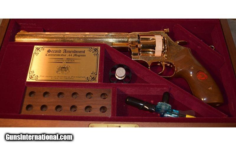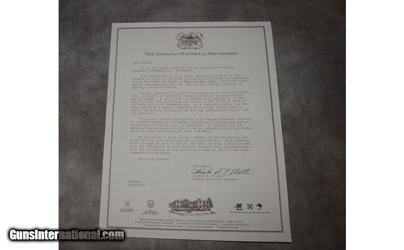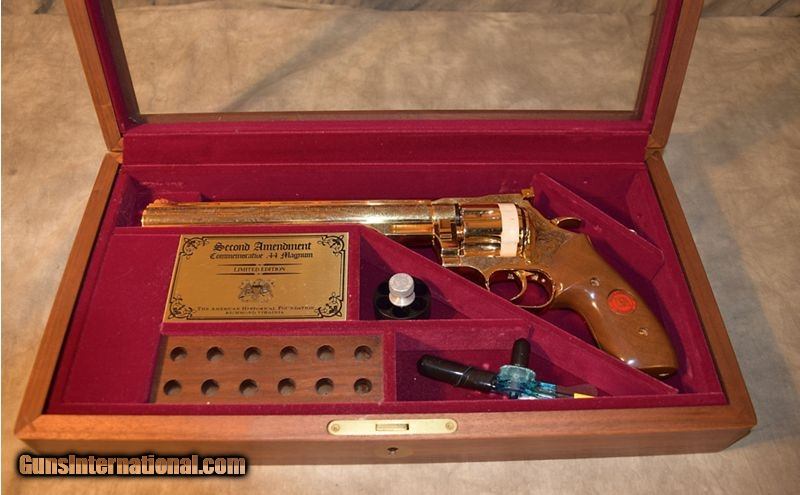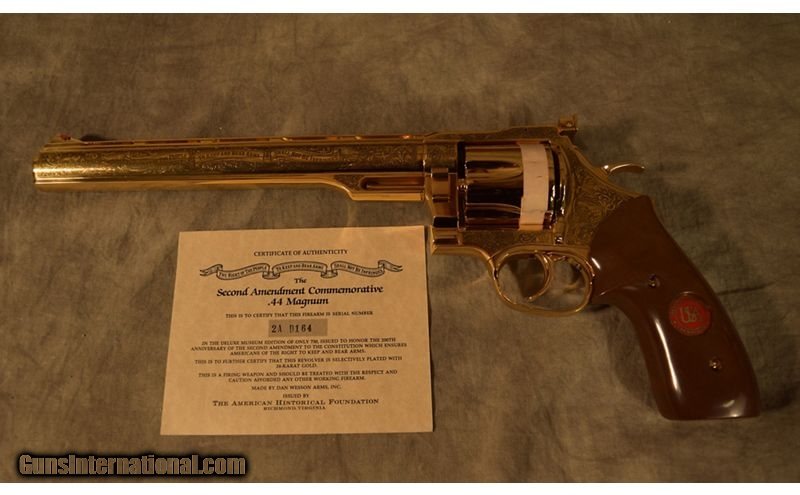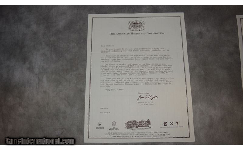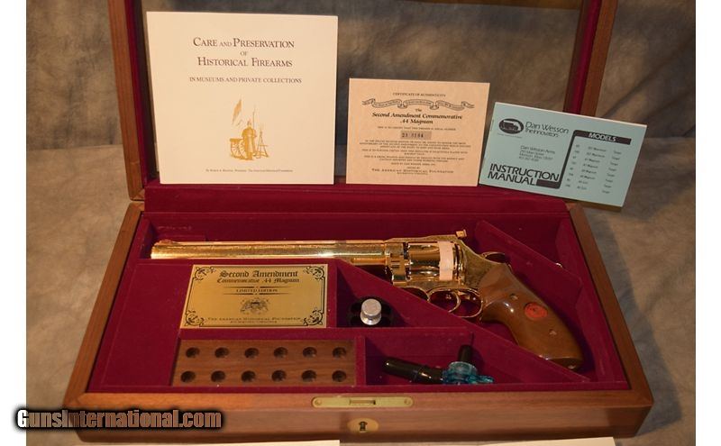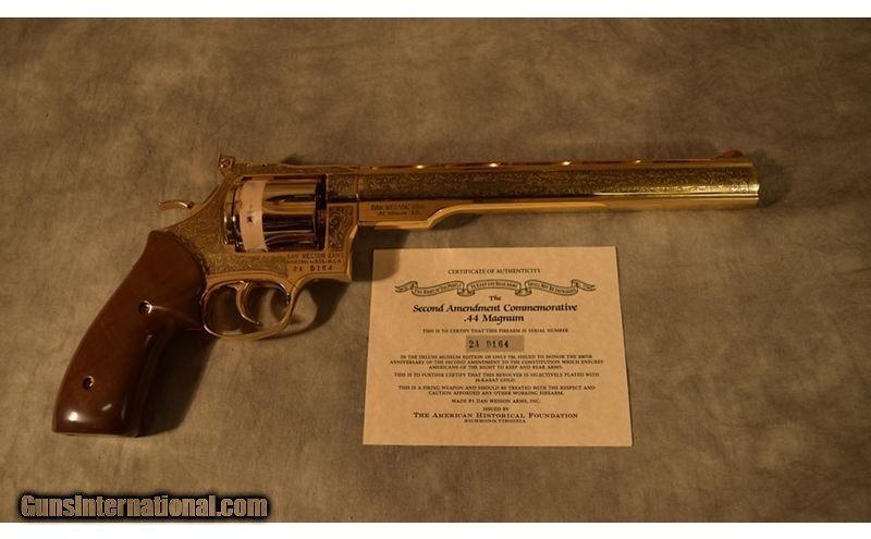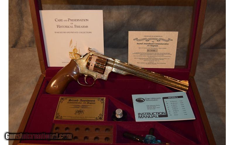 Description: This is a Second amendment Commemorative .44 Magnum. Made by Dan Wesson Arms, Issued by The American Historical Foundation. This wepon is New In Box and has never been fired. All original documentaion is included. .44 Magnum SOLD Chambers: 44 MAGNUM Metal Condition: PRISTINE Wood Condition: PRISTINE Bore Condition: PRISTINE Barrels: 9.75 Item Location: Chesterfield, MI |