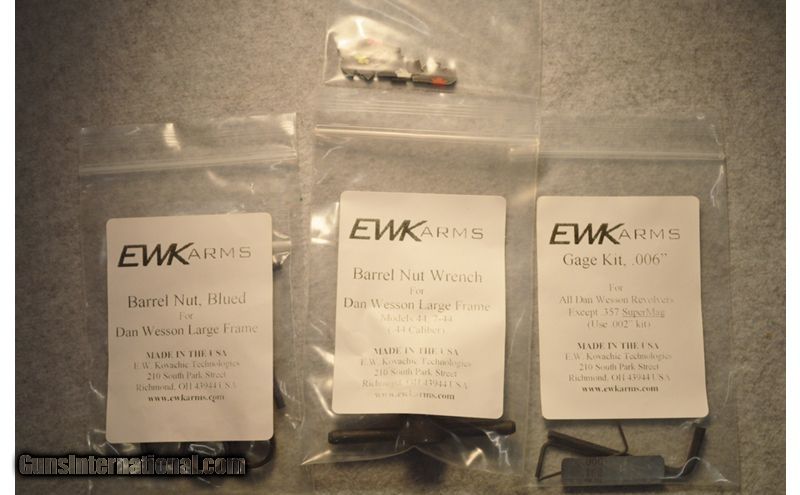 Description: Dan Wesson Model 44 Revolver. Chambered in .44 Magnum with a six round capacity. Comes with a whole collection of accessories and tools, including three different sets of additional grips, and two extra barrels. Double action with Extremely light trigger pull. It comes in a Plano XL pistol case that fits all the extra parts and accessories. The revolver is in over all very good condition with only a few signs of usage and wear. .44 Magnum SOLD Metal Condition: Good overall condition aside from minor pitting on top strap and the marks on right side of frame in front of the cylinder Wood Condition: Minor wear on wood grip sets Bore Condition: Very good Barrels: 6"" barrel, 6"" threaded barrel, 10"" barrel with optic mounted Triggers: Dan Wesson Factory Trigger Weight: 4 lb. 9 oz. Sights: Simmons 4x32 Prohunter, Adjustable Rear Sight, Front Sights With Dovetailed Inserts Item Location: Avon, OH |