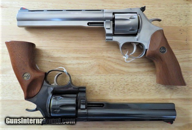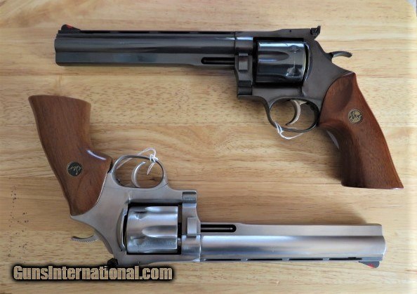 Description: SALE PENDING - This listing is for a set of two Dan Wesson 44 magnum revolvers. These revolvers were created by special order to Dan Wesson from members of the International Handgun Metallic Silhouette Association (IHMSA). Blued and stainless versions of the DW 44 magnum could ordered by IHMSA members with the member number being part of the serial number of the gun. Member 12292 ordered this set. Both guns in this set have been fired. The blue gun shows slight holster wear on the right side of the muzzle; also shows a cylinder ring. The blue gun rates about 95% with the stainless rating a little better. Each gun will come in the original box with barrel changing tools and manual. Three extra target front sights are included. The box for the stainless gun shows damage on one end. Please review the pictures to assess condition and contact me with questions. Please note that these guns can be returned if delivered damaged or if condition has not been accurately presented in this listing. Shipping/insurance is included in the purchase price; item will be shipped by an FFL. An FFL is required to purchase. Please do not attempt to purchase this item if the laws of your state prevent receipt or transfer to you. Will be shipped according to the laws of the ship-to destination. SOLD Handgun Caliber: .44 Remington Magnum Manufacturer: Dan Wesson Model: 44 & 744 Barrel Length: 8-inches Condition: Excellent |
