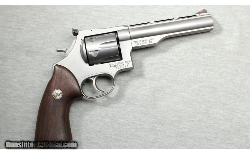 Description: Excellent condition, light wear, few small scratches. Dan Wesson .44 Magnum revolver, 6" ribbed heavy barrel with shrouded ejector, matte stainless finish, adjustable sights, 6 shot fluted cylinder, checkered hammer and DW premium smooth wood grips. .44 Magnum SOLD Chambers: Revolver Metal Condition: Excellent Bore Condition: Bright Barrels: 6 Triggers: Double and single action Butt Pad: Wood grips Sights: "Adjustable rear, red ramp front sights Item Location: La Vista, NE |