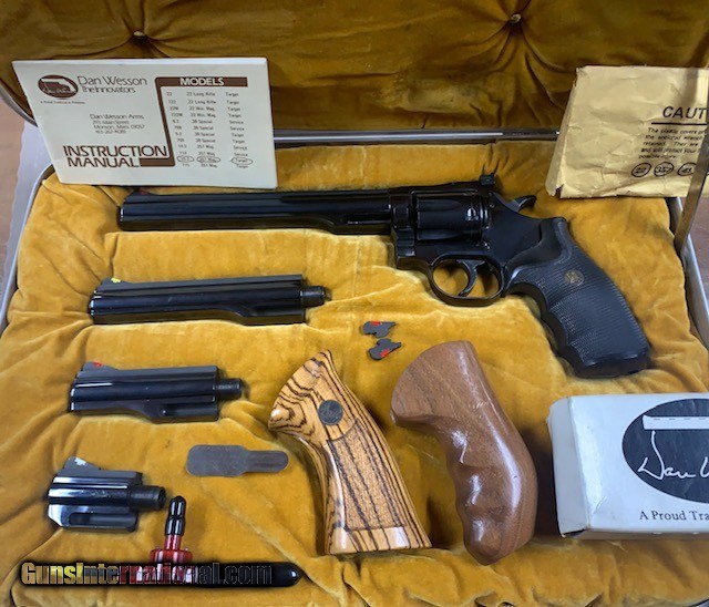 Description: REDUCED - An excellent original condition Dan Wesson Model 15-2 Pistol Pack, with all as shown. Revolver has been fired but remains in excellent condtion as the photos show. Walnut grip has a slight scratch. A great investment. SOLD Handgun Caliber: .357 Magnum |
