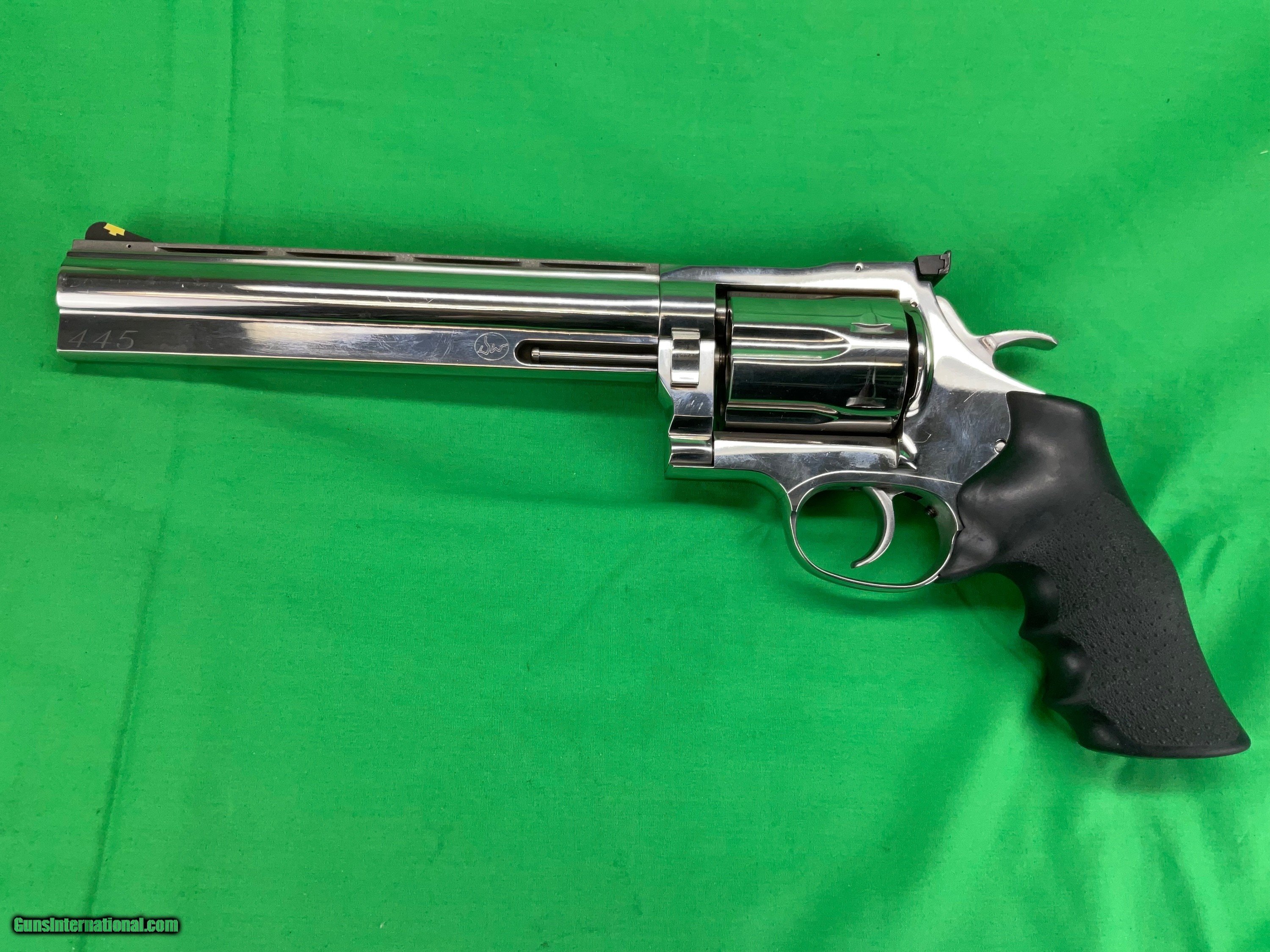Handgun Caliber: .445 SuperMag (.4295 RIC) Manufacturer: Dan Wesson Model: 7445 Condition: LNIB Metal Condition: LNIB Wood Condition: N/A Bore Condition: LNIB Price: $2,850.00 Shipping: $50.00 Contact Seller |