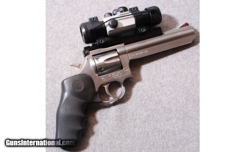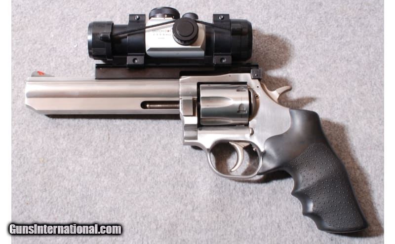 Description: This Wesson Arms 357, chambered in .357 Magnum, is in very good condition. .357 Mag SOLD Chambers: .357 Magnum Metal Condition: Slight Ring Around The Cylinder Wood Condition: Slight Wear Bore Condition: "Shiny, Rifling Sharp Barrels: 6 Triggers: Factory Weight: 48 Ounces Sights: "Adjustable Rear, Red Ramp Front, Match-Dot Red Dot Sight Item Location: Rapid City, SD |