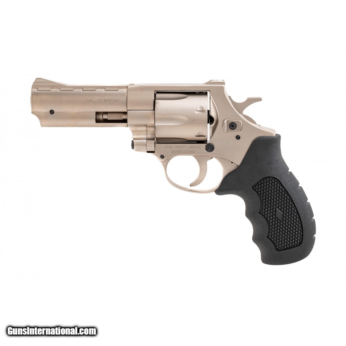 Double/single action revolver. 4"" barrel. 6rd capacity. Satin nickel finish with rubber grips. NEW. UPC: 0741566600685.