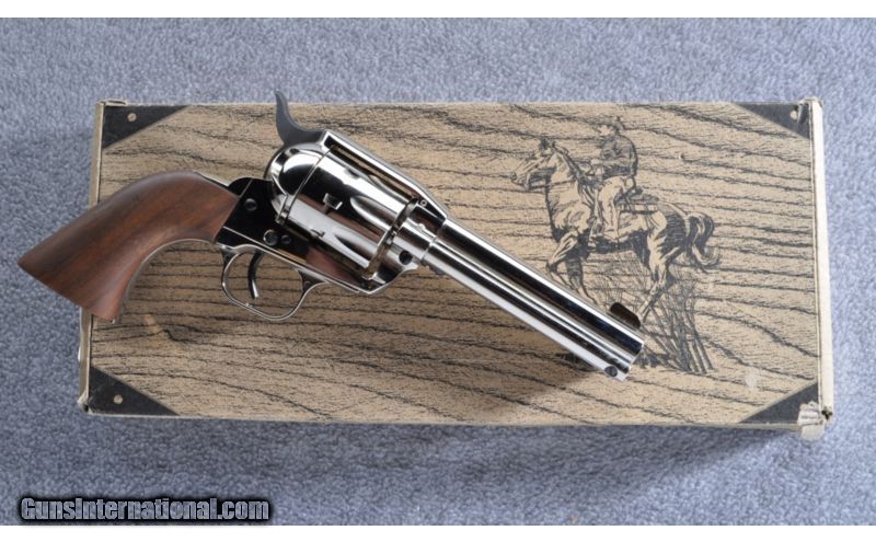 Description: Bright chrome finish SOLD Caliber Info: .22 Long Rifle & .22 Winchester Magnum Rimfire Chambers: Eight round cylinders Metal Condition: Appears as new Wood Condition: Appears as new Bore Condition: Like new appears unfired Barrels: 4 3/4 Triggers: Single Action Stock: Walnut Weight: 38 oz Sights: Fixed Extras: Factory box with extra cylinder and literature Item Location: Grand Junction, CO |