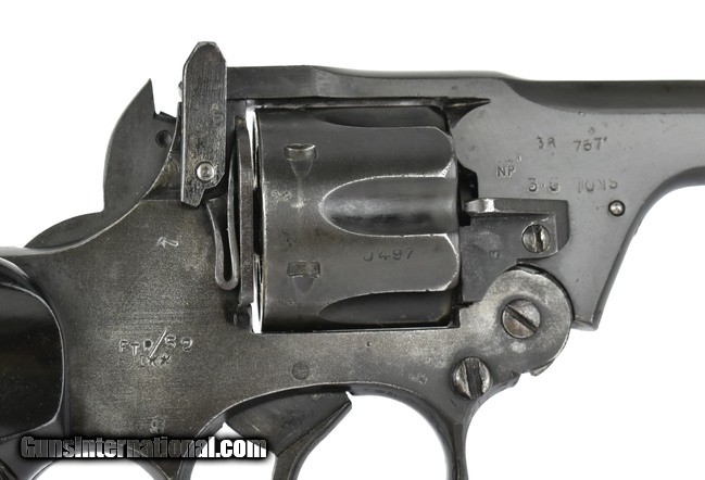Description: British Enfield .38 S&W caliber revolver. WWII British military revolver. FTR marked (Factory Thorough Repair). Bore has strong rifling. Lanyard ring need to be replaced. Very good overall condition.