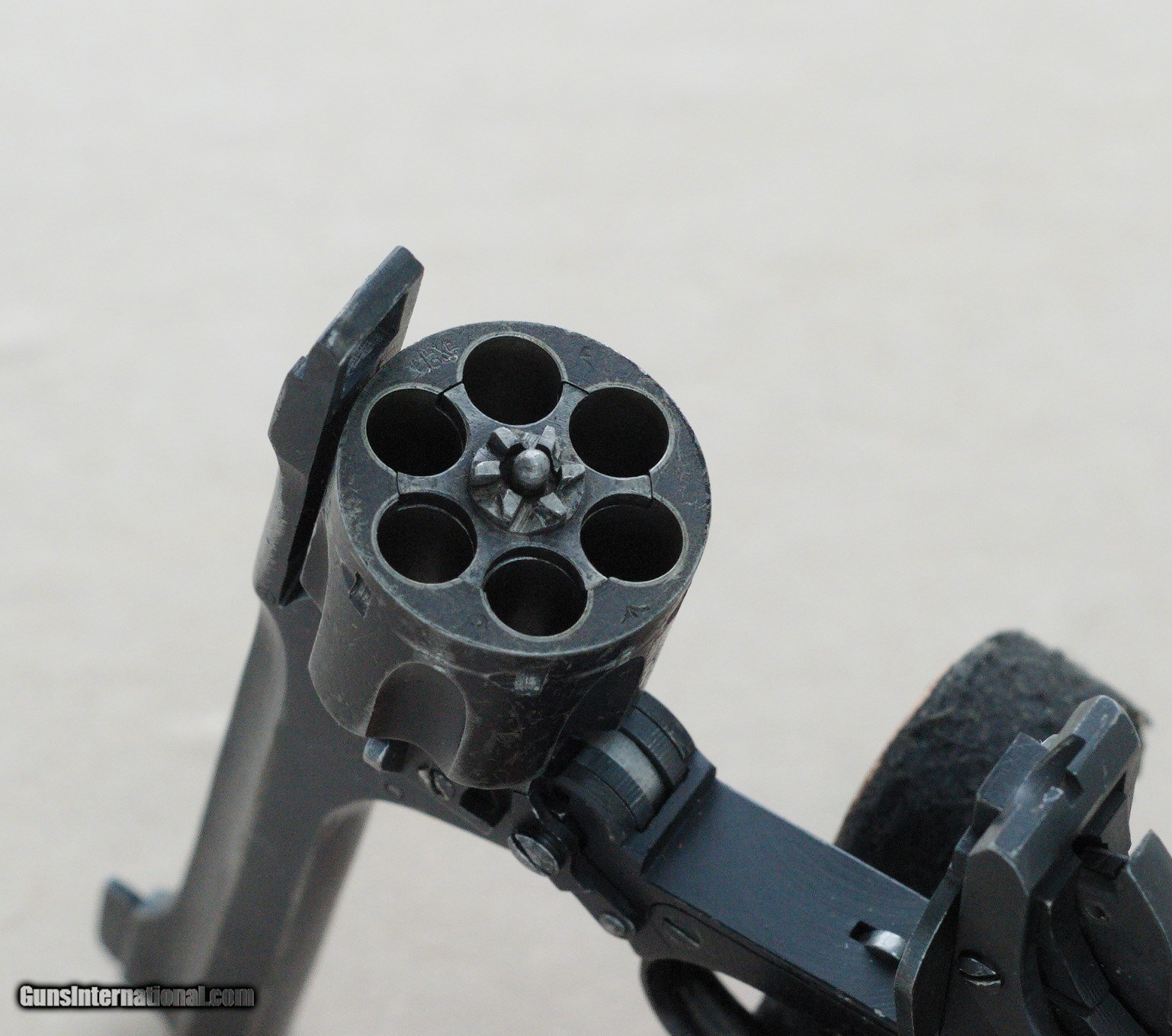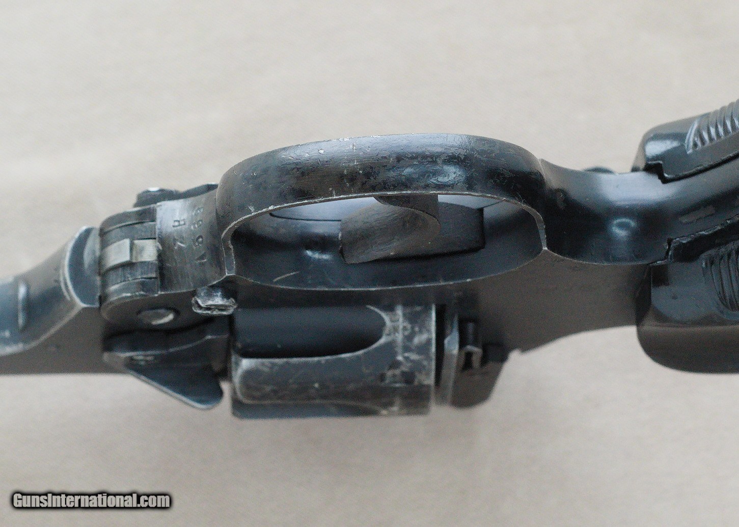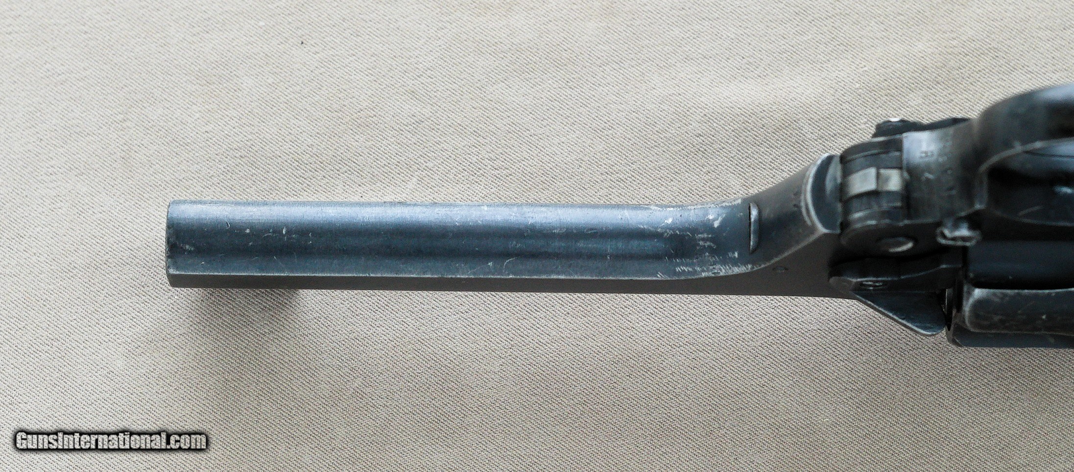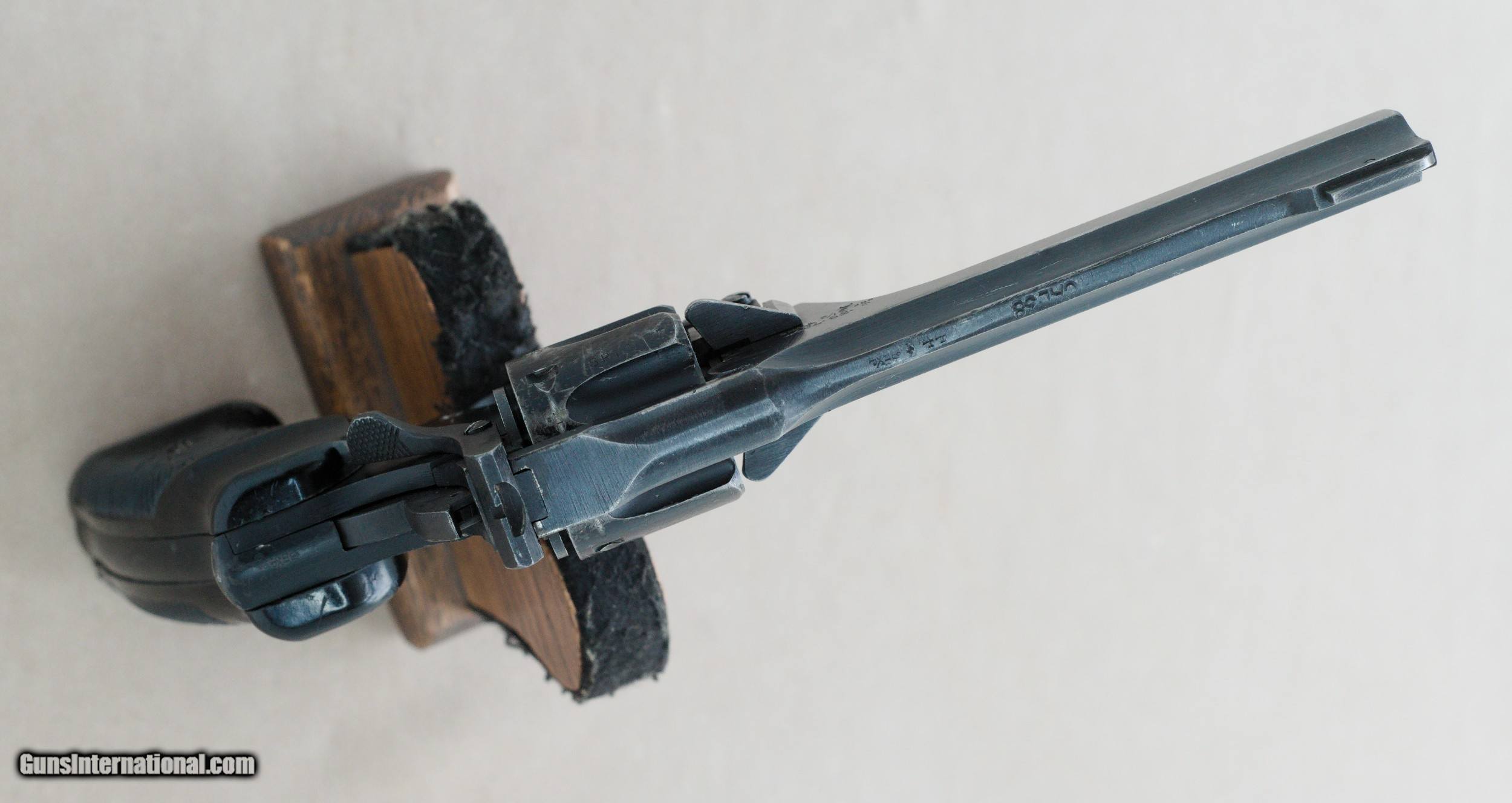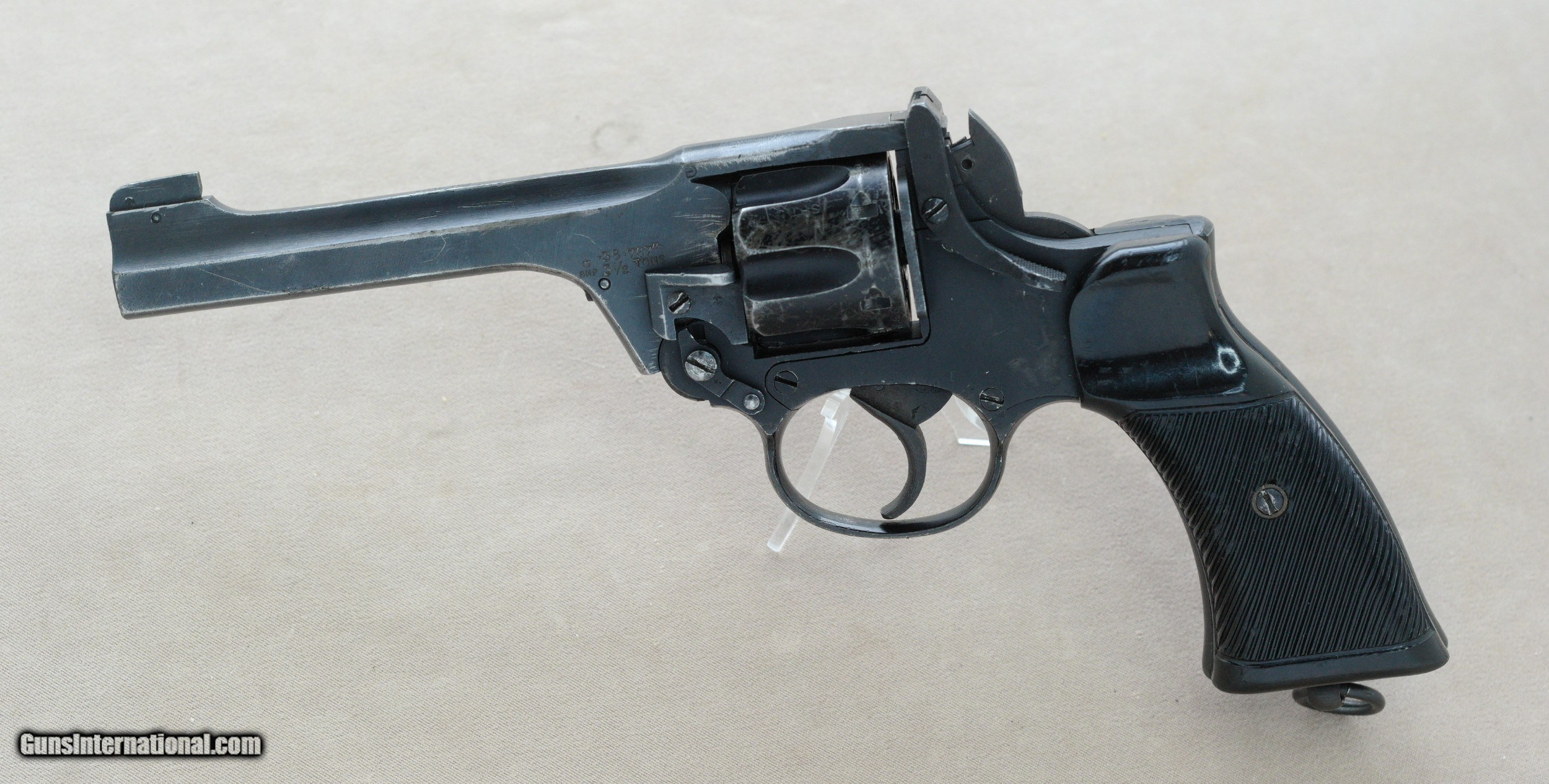Description: Here we have a British Enfield No. 2 Mk1* military revolver chambered in .38 Smith & Wesson serial no. ZP1569. The Enfield No. 2 was a British top-break revolver using the .38 S&W round manufactured from 1930 to 1957. It was the standard British/Commonwealth sidearm in the Second World War, alongside the Webley Mk IV and Smith & Wesson Victory Model revolvers chambered in the same calibre. The .38 S&W, also commonly known as .38 S&W Short (it is sometimes referred to as .38 S&W Short to differentiate it from .38 Long Colt and .38 Special), 9×20mmR, .38 Colt NP (New Police), or .38/200, is a revolver cartridge developed by Smith & Wesson in 1877. The original Mk 1 had a full hammer spur whereas the Mk 1* had a spurless hammer and was double action only. This particular example is in fair condition with obvious signs of hard use and high edge wear. The Mk 1* models had plastic handgrips which were redesigned to improve grip when used in rapid double-action fire; the new handgrip design was given the designation Mk II. It's a very cool firearm that would make a great addition to a collection of militaria. PRICE: $395.00 We are Antique & Modern Firearms in Lexington, KY, a dealer of fine firearms since 1974. PH. 859-276-1419 We Buy, Sell, and Trade Firearms & Knives. Have an Individual Firearm, Firearms Collection, or Firearms Estate to sell, let us know, and we can buy or consignment sell it for you. NOTE: No additional fee for a Credit Card payment SOLD Manufacturer: Enfield Model: No. 2 Mk1* Serial Number: ZP1569 Barrel Length: 5 inches Condition: Fair Metal Condition: Fair Bore Condition: Very Good |