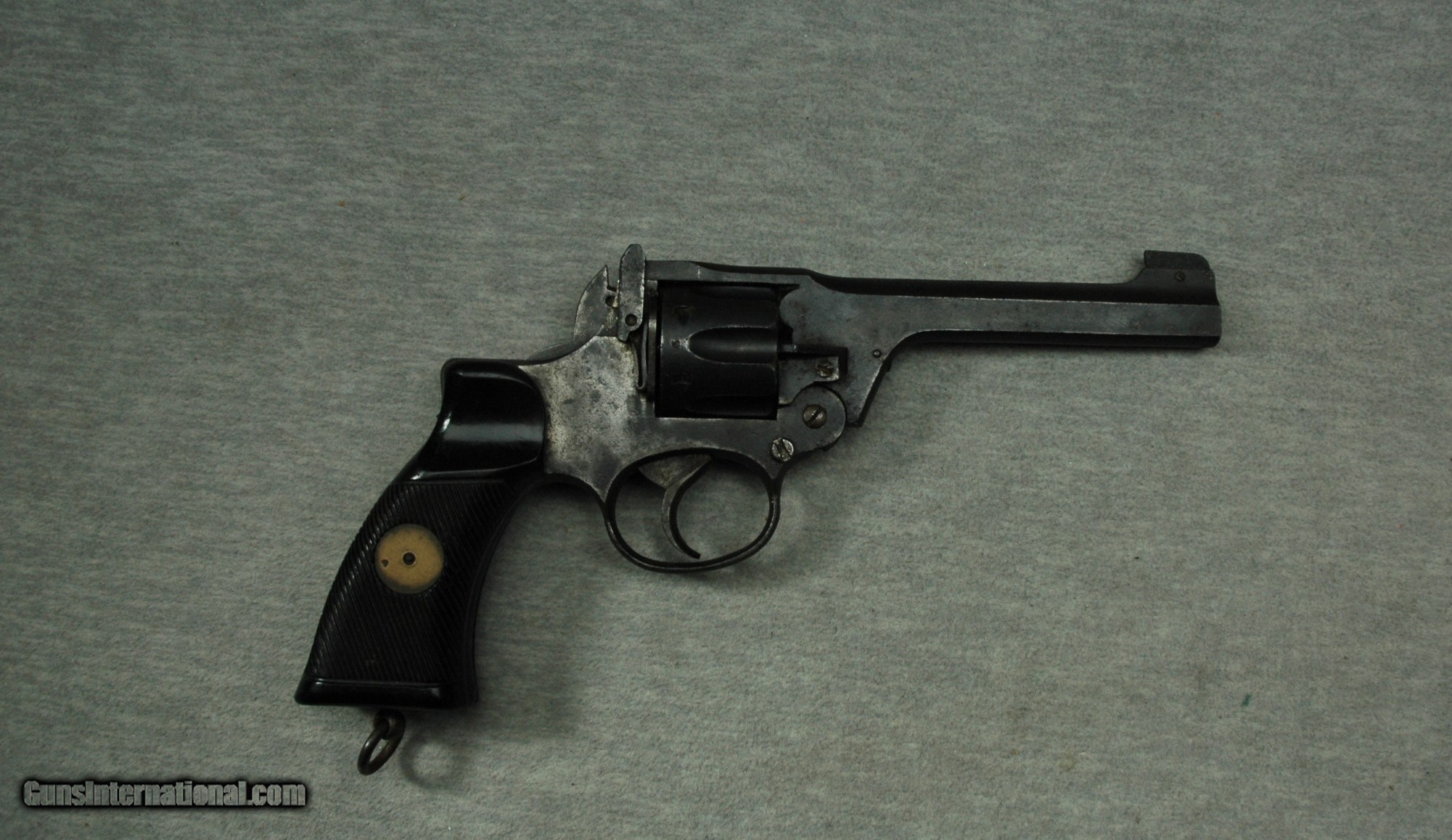 Description: Enfield No. 2 chambered in .38 S&W. This is a British top-break revolver manufactured from 1930 to 1957. It was one of the standard British/Empire sidearms in the Second World War. This double-action revolver with less weight and recoil than the Webley Mk IV could be quickly mastered by a minimally trained soldier. The cartridge used long, heavy bullets that tended to tumble. The tumble effect increased its stopping ability at short ranges. No box. .38 S&W SOLD Metal Condition: Good Barrels: 5 Inches Triggers: Factory Double action Weight: 1 lb 12 ozs Sights: Fixed Item Location: La Vista, NE |
