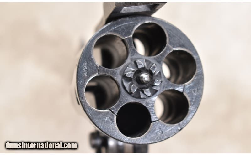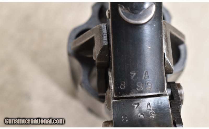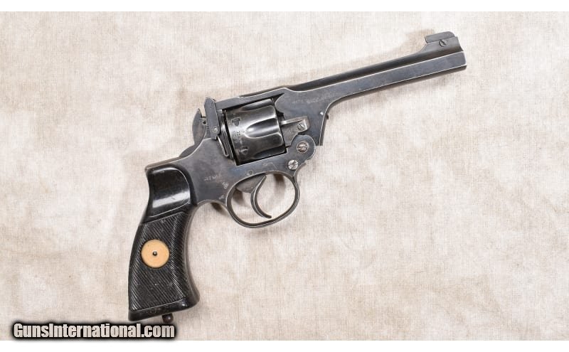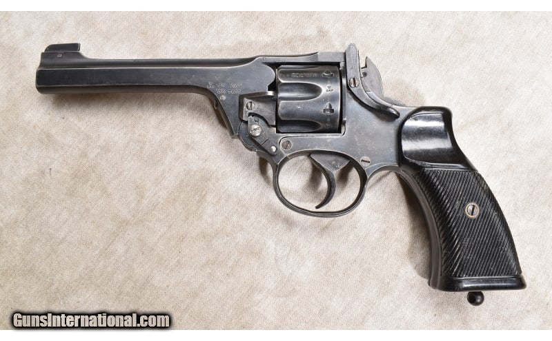 Description: The Enfield No. 2 owes its origin to the Webley Mk 4. Webley originated the design based on the S&W top break revolvers, and when they were gearing up for production, found Enfield had the contract with a slightly different design. Enfield went on to produce the pistols, but legal disputes ensued with Webley "winning" an award. The main outward differences are in the grips and the absence of the screw beneath the spurless hammer, presumably related to the single action mode on its precursors. The No. 2 was chambered in .38 S&W, rather than the .455 Webley to reduce perceived recoil fatigue in new recruits. The Mk2* eliminated the single action mode, sadly making the revolver double action only, with a trigger pull comparable to the Russian Nagant which has been measured up to 28 lb. Pulling the trigger on these is a work-out all by itself. This one is in Very good condition with most of the finish intact, and the grips showing a little handling. .38 S&W SOLD Curio/Relic: Yes Chambers: 6 rounds Metal Condition: Very good overall. Some finish wear from handling and some shallow scratches. Wood Condition: Very good. Bore Condition: Clean and bright with good rifling. Barrels: 5 inches Triggers: Factory double action only. Butt Pad: Slim black plastic. Weight: 28 ounces Sights: Fixed post and notch. Item Location: Rogers |