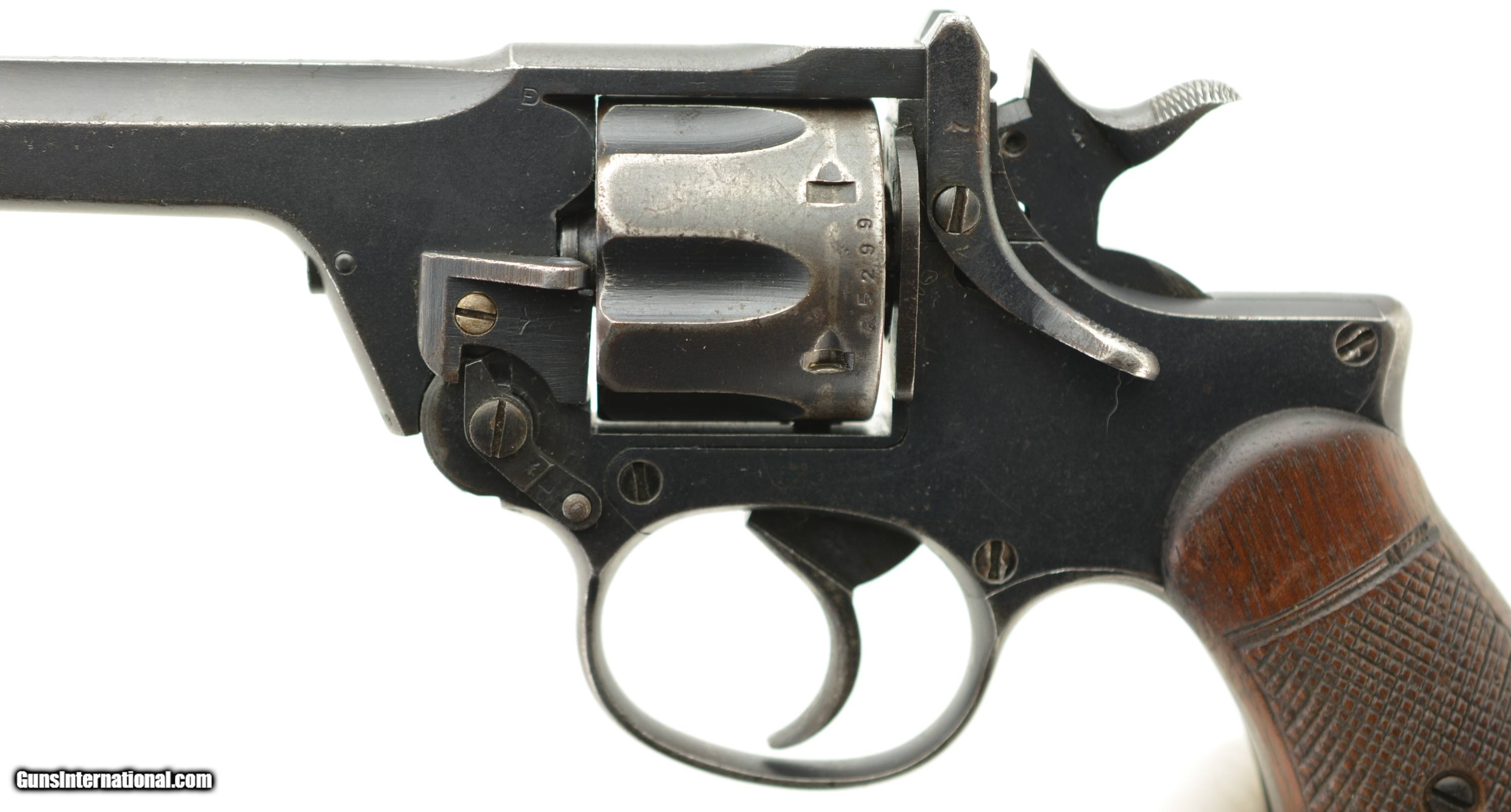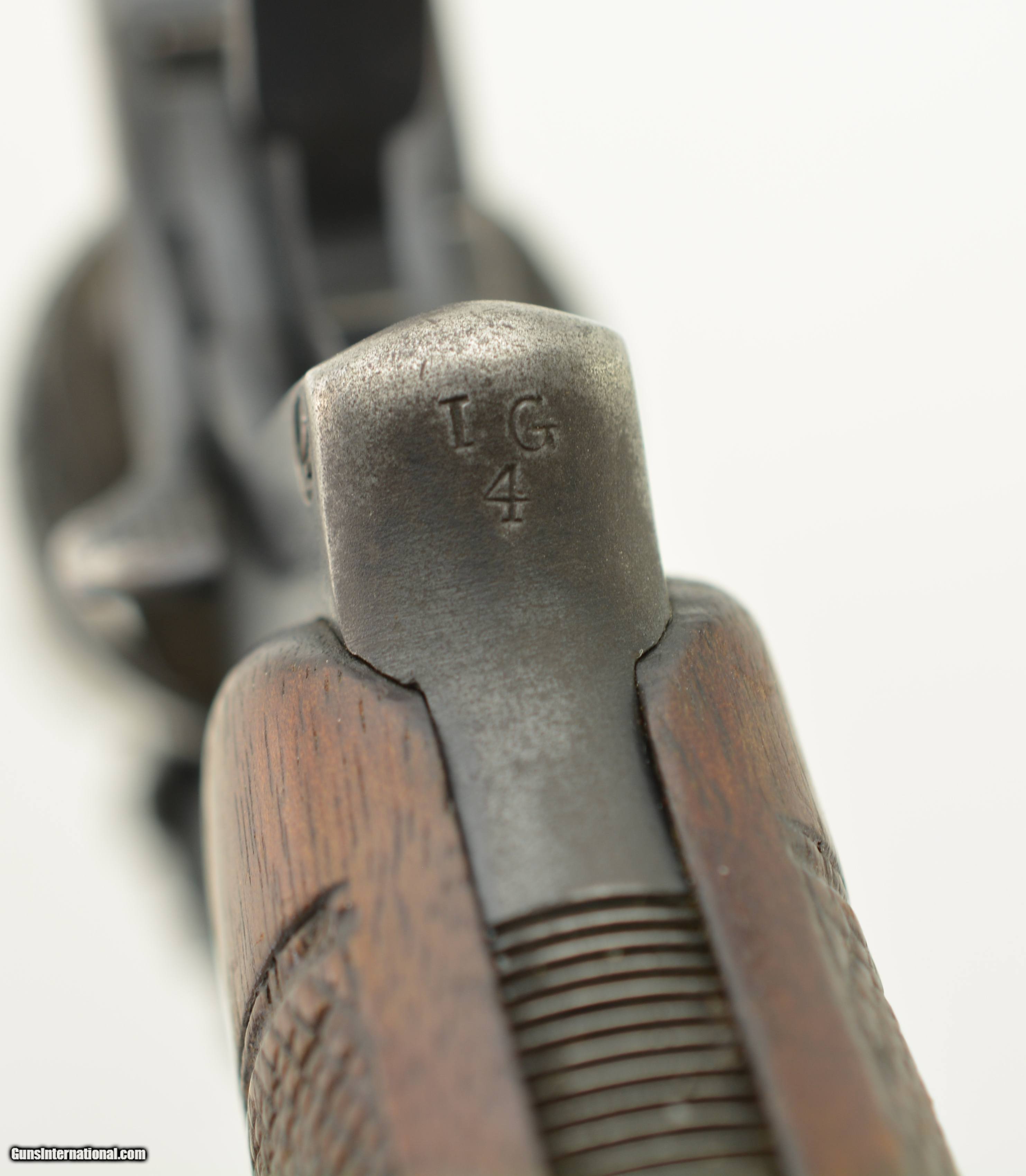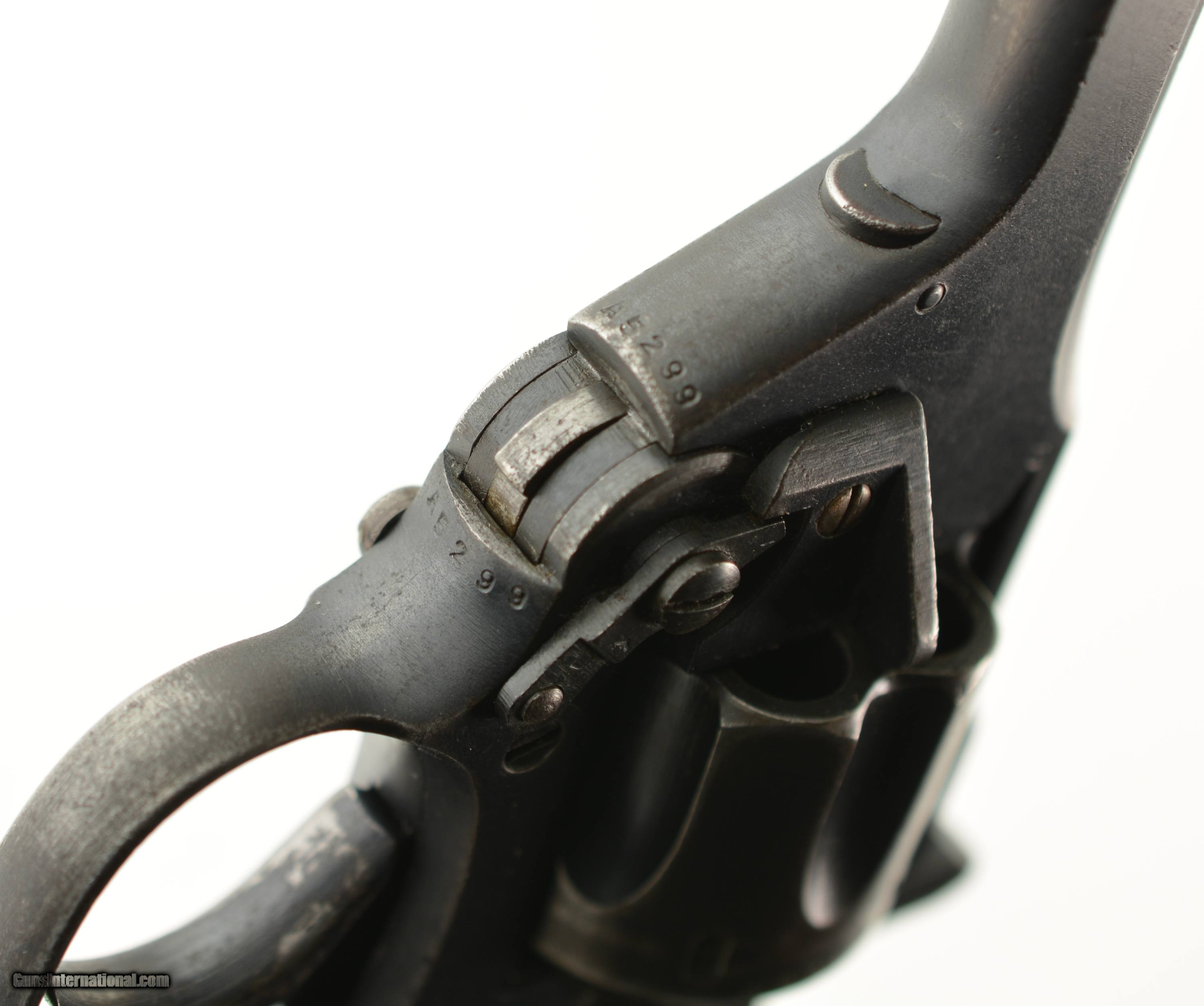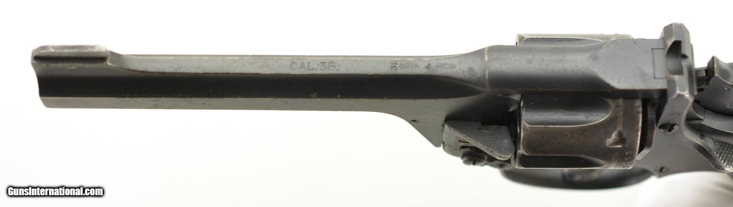 Description: Serial #A5299, .38/200 British (.38 S&W), 5" barrel with an excellent, bright bore. This is a 1931 dated, Enfield marked revolver that has matching numbers on the frame, barrel, and cylinder. The metal retains 90-92% of the original matte blue finish with mild silvering along the high and exposed edges, as well as on the raised edges of the cylinder. Some mild surface freckling is also present on the muzzle end of the barrel. Additionally, a faint, hand-scratched set of initials are just visibloe on the right side of the frame just below the cylinder: “MHM". The backstrap and butt are unit stamped “IG / 4" (Irish Guards / {4th Regiment of Foot Guards}). The checkered walnut grips are in good shape with numerous minor handling marks and blemishes, and moderate flattening of the points on either panel. The Irish Guards are one of the most respected and prestigious regiments in the British Army, one of the Foot Guard regiments for the reigning monarch, and have an illustrious service history. They are most well-known in the US for being the vanguard of XXX Corps’ advance towards Eindhoven, Nijmegen, and Arnhem during the ill-fated Operation Market Garden drive towards the Ruhr valley in September of 1944. This is a splendid prewar dated Enfield, with a fantastic unit marking, and would make a great addition to any collection. FFL or C&R SOLD Manufacturer: Enfield Model: No.2 Serial Number: A5299 Caliber Info: .38 S&W Gauge Info: .38 S&W |