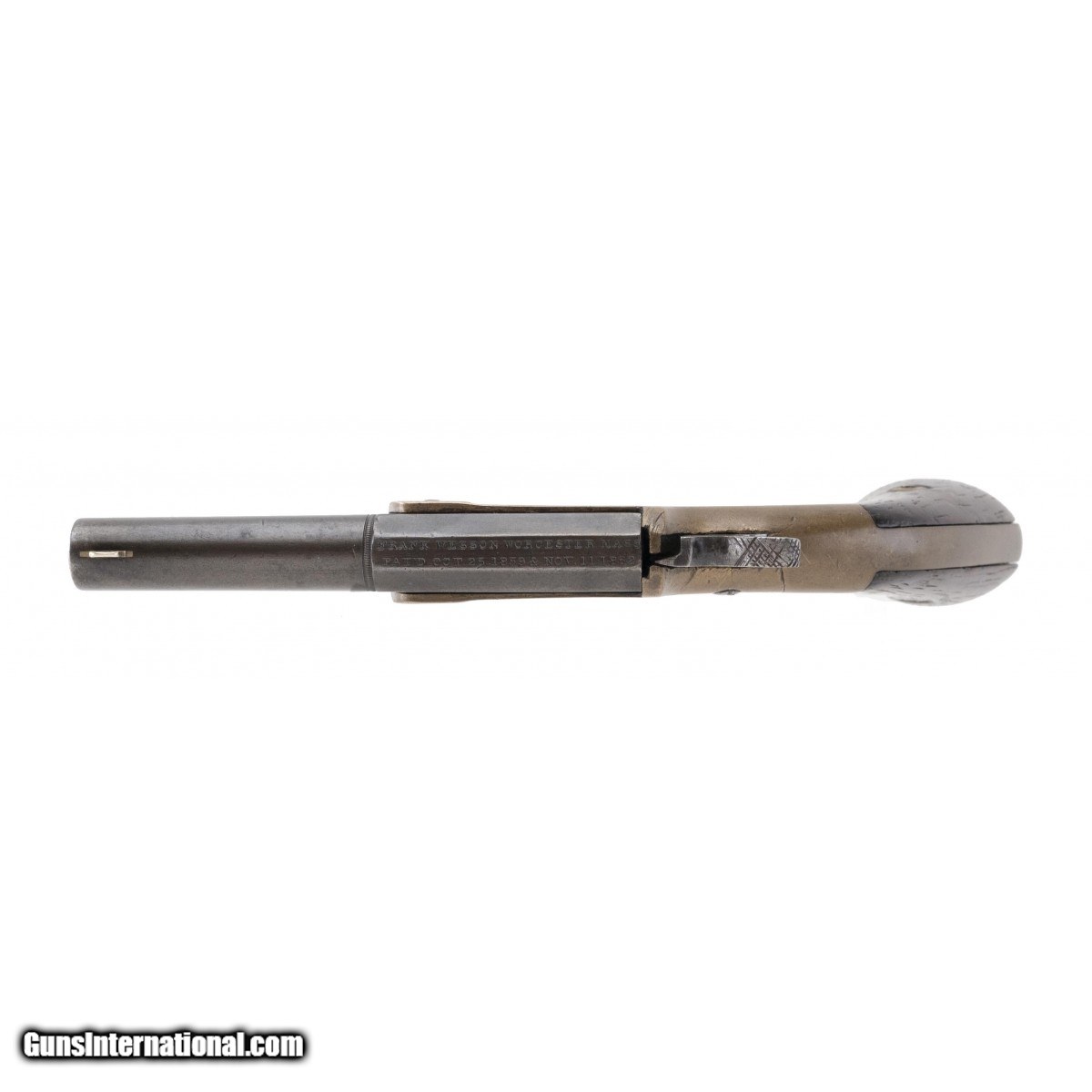 Description: " This second type (aka Model 1862) small frame Frank Wesson small frame single shot pistol was made circa 1862 to the 1880s. The 3.5"" part round/part octagon 22 Short rimfire barrel has a good rifled bore with some erosion. The barrel is marked on top FRANK WESSON WORCESTER MASS over PAT'D OCT.25.1859 & NOV.11 1862. There is a brass blade front sight. The barrel has a smooth blue/plum patina . The brass frame has an even patina. The rosewood grips are very good with light wear. The action functions correctly. This Frank Wesson Model 1862 would fit a deringer, small single shot pistol, or Frank Wesson collection. SOLD Antique: Yes |