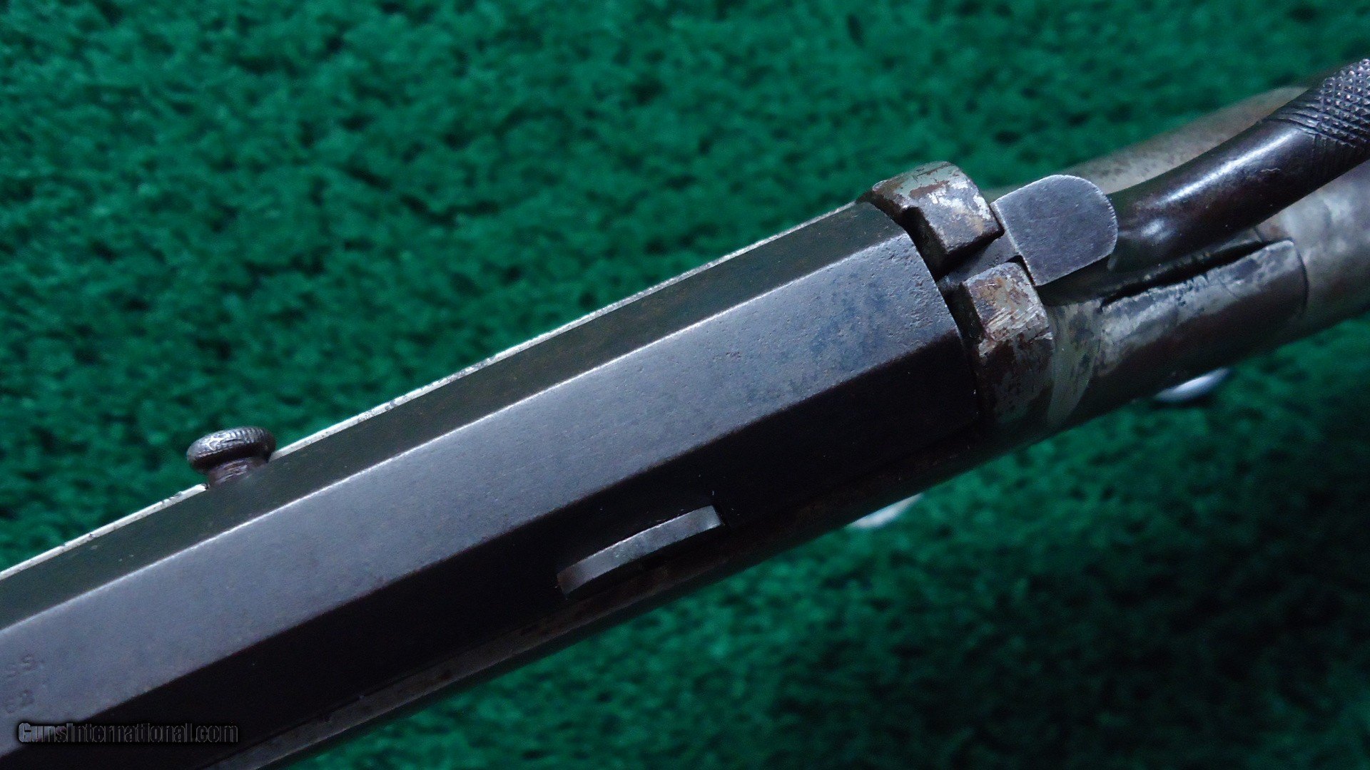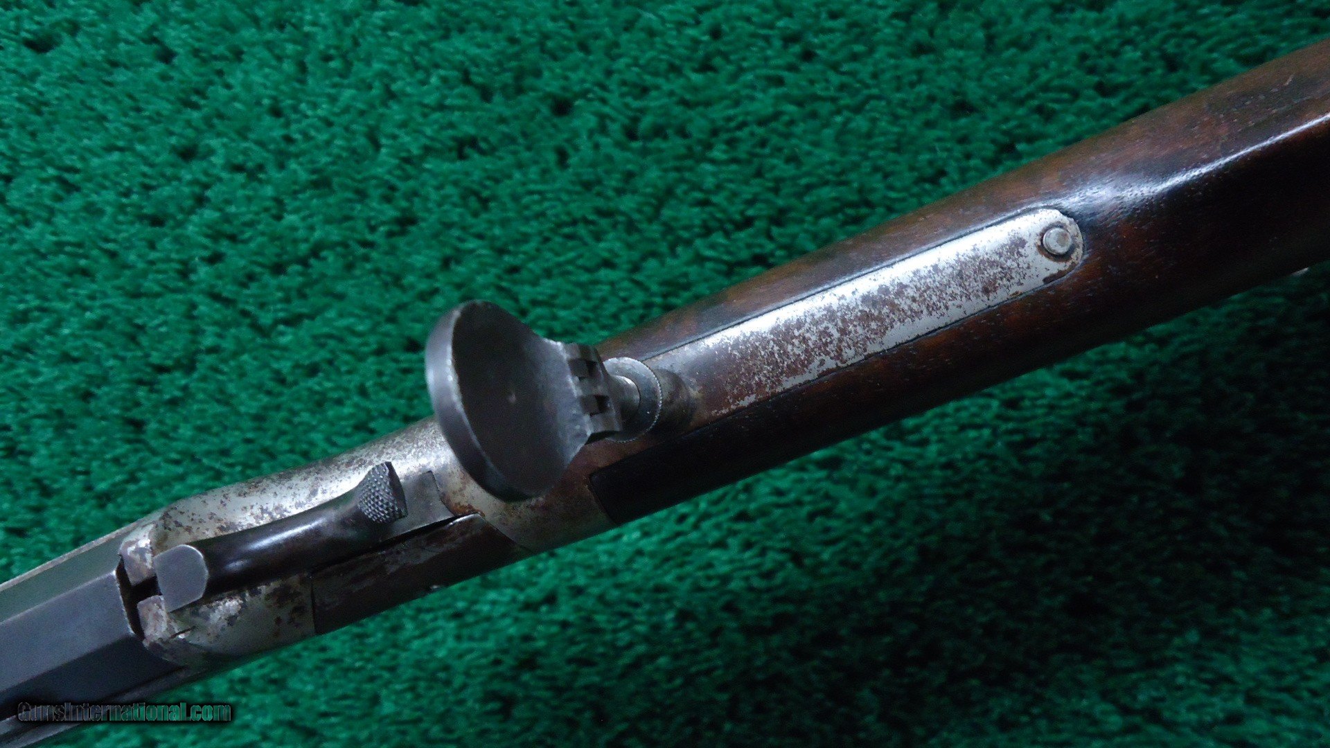 Description: This gun is fitted with a 24 inch full octagon barrel chambered in 32 RF caliber. Barrel has about a 50% blue/brown coloration and a very fgood bore. Sharp corners and good markings. Original sights include a hooded front sight and buck horn rear sight with a folding tang sight. It's original wood is in very good condition with a nice figure on it complete with a rifle style but plate. Receiver is finished with a nickle which is starting to turn a plum brown. Guns mechanical condition is excellent. Overall nice little gun. Leroy Merz Antique Firearms specializes in antique and vintage Winchesters and other fine American firearms. Since 1965 Mr. Merz has taken part in the world of firearms and has been a contributor to many well known reference books. We have hundreds of additional guns in every price range at our home online. Search for Merz Antiques in google. SOLD Antique: Yes |
