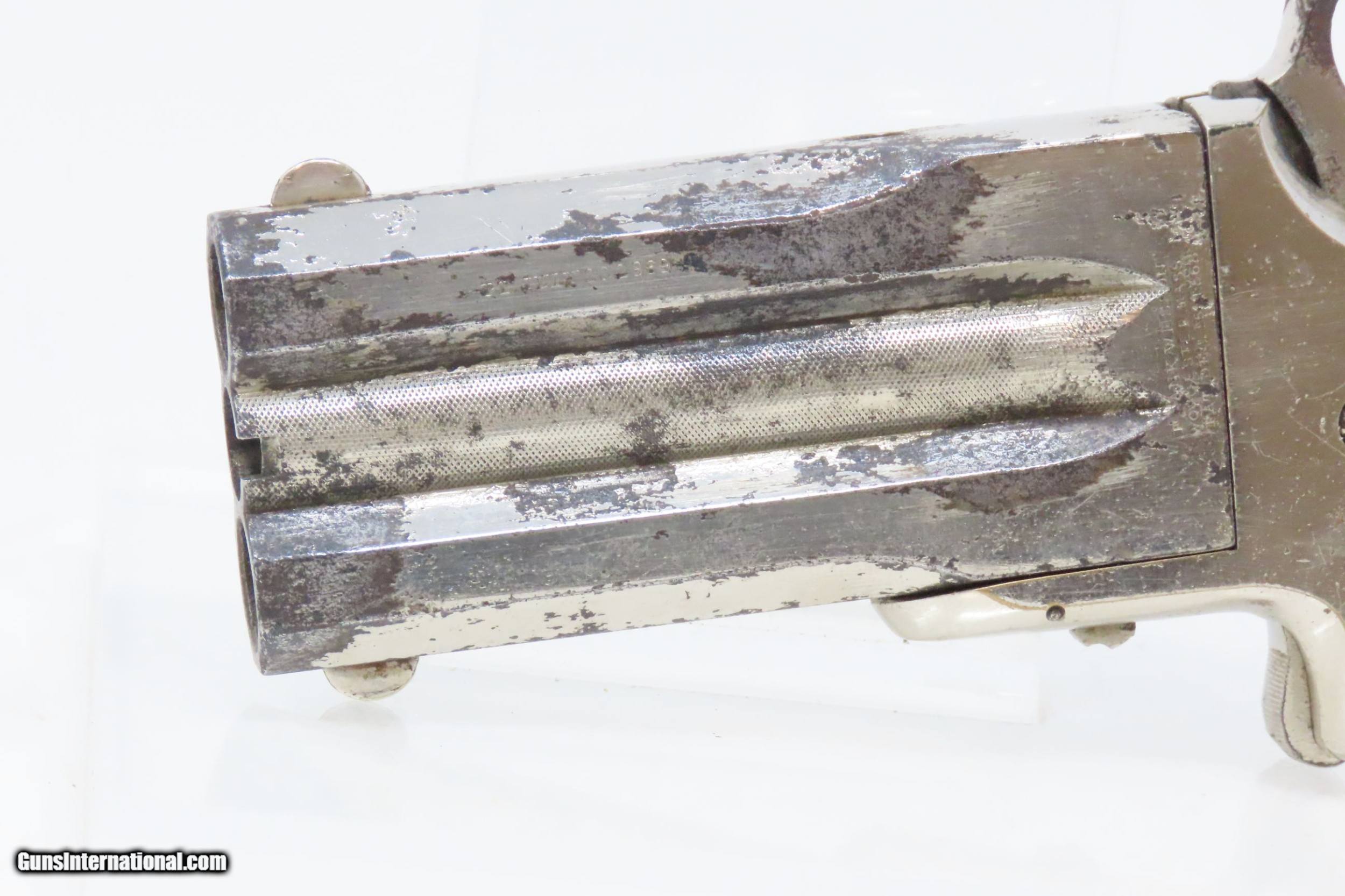 Antique FRANK WESSON Superposed .41 Cal. Rimfire PISTOL with SLIDING DAGGER MASSACHUSETTS Made SWIVEL BREECH Pocket Pistol