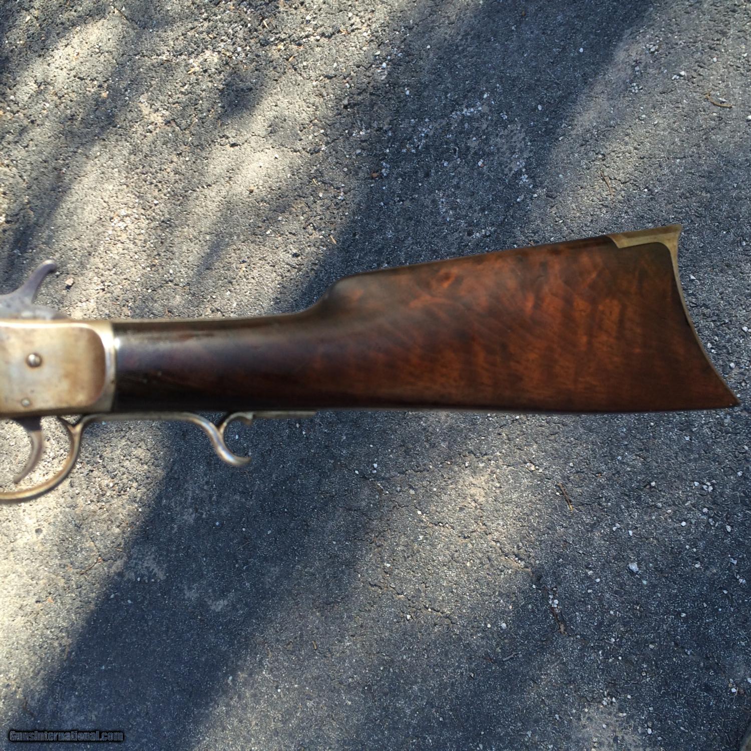 Description: SOLD:::::::1859 Frank Wesson Sporting Rifle in 32 Rimfire. Comes with 10 rounds of ammo. Has a good (about 5-6) bore. Trigger spring is either weak or needs adjusting. It will cock but has a hairy trigger. Gueden-tite. I think that's German for strong action. Check out the photos. If you need more let me know. These are on sites for around $8-1400. SOLD Antique: Yes |