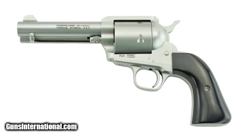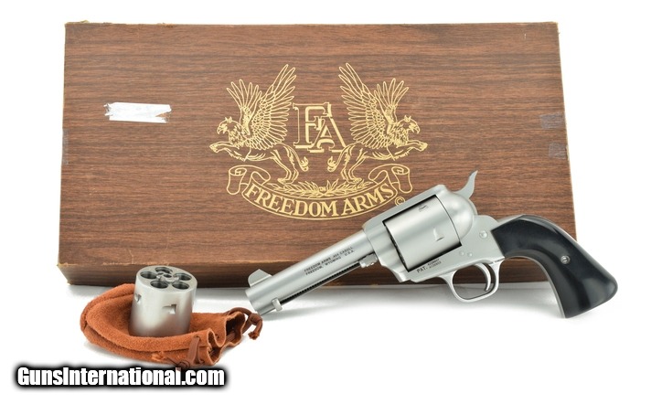 Description: Freedom Field Grade .45 LC/454 CA caliber revolver. 4 ¾” Special order gun with dual cylinders and round butt Micarta grip. Excellent condition with box.