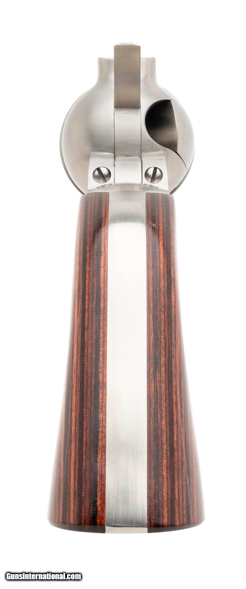 Description: "SN: D18488. Modern production. 454 Casull/.45 ACP/.45 Long Colt with a 4.75"" barrel. Bore is in excellent condition. Special order Premier grade with fixed sights and 3 cylinders. Has been Mag-Na-Ported and has a factory action job. Overall condition is excellent. Comes with box, papers and extra cylinders. A great set up! SOLD |