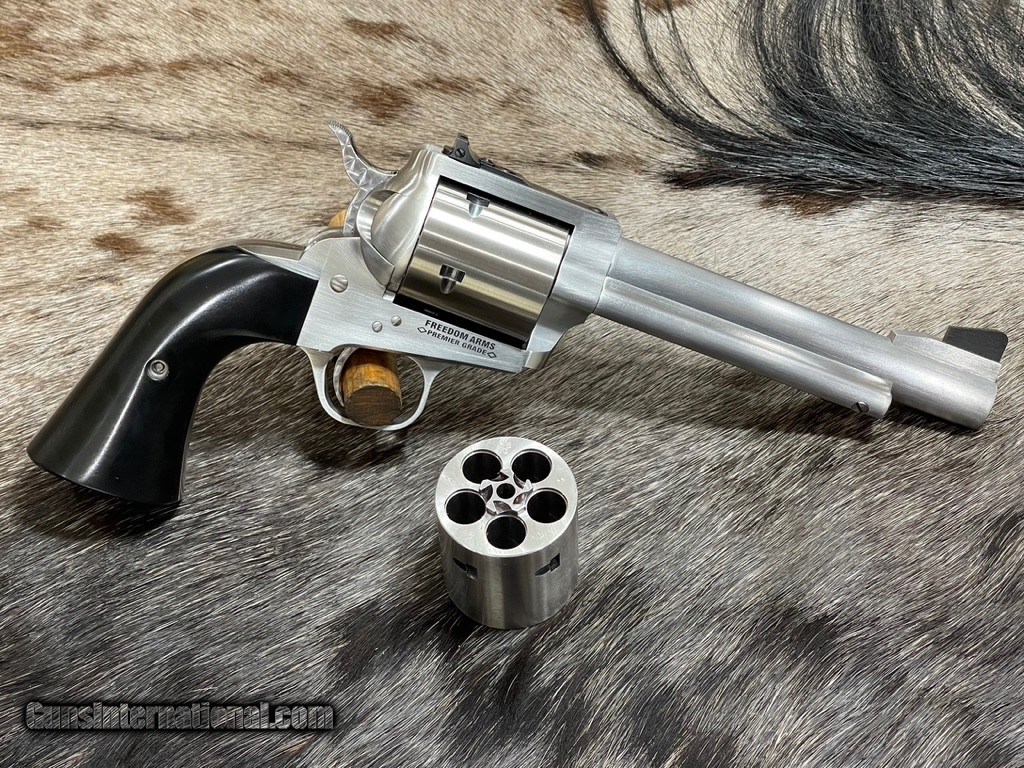 Description: NEW FREEDOM ARMS MODEL 83 PREMIER GRADE 454 CASULL WITH 45 COLT CYLINDER AND MANY FACTORY UPGRADES - LAYAWAY AVAILABLE FREE AFRICAN SAFARI WITH KUCHE SAFARIS (: KUCHE.CO.ZA) INCLUDED WITH THIS RIFLE! SAFARI IS FOR 1-HUNTER / 5-DAYS / 3-ANIMALS (IMPALA, BLESBUCK, WARTHOG). SAFARI IS CUSTOMIZABLE WITH AS MANY ADDITIONAL DAYS AND ANIMALS AS YOU WANT. THE CERTIFICATE IS GOOD FOR 3-YEARS FROM DATE OF PURCHASE AND WILL BE EMAILED TO YOU. NOTE: THE SAFARI IS FREE AND DOES NOT ADD ANY COST TO THE FIREARM. Features Of This GREAT Revolver Include:
