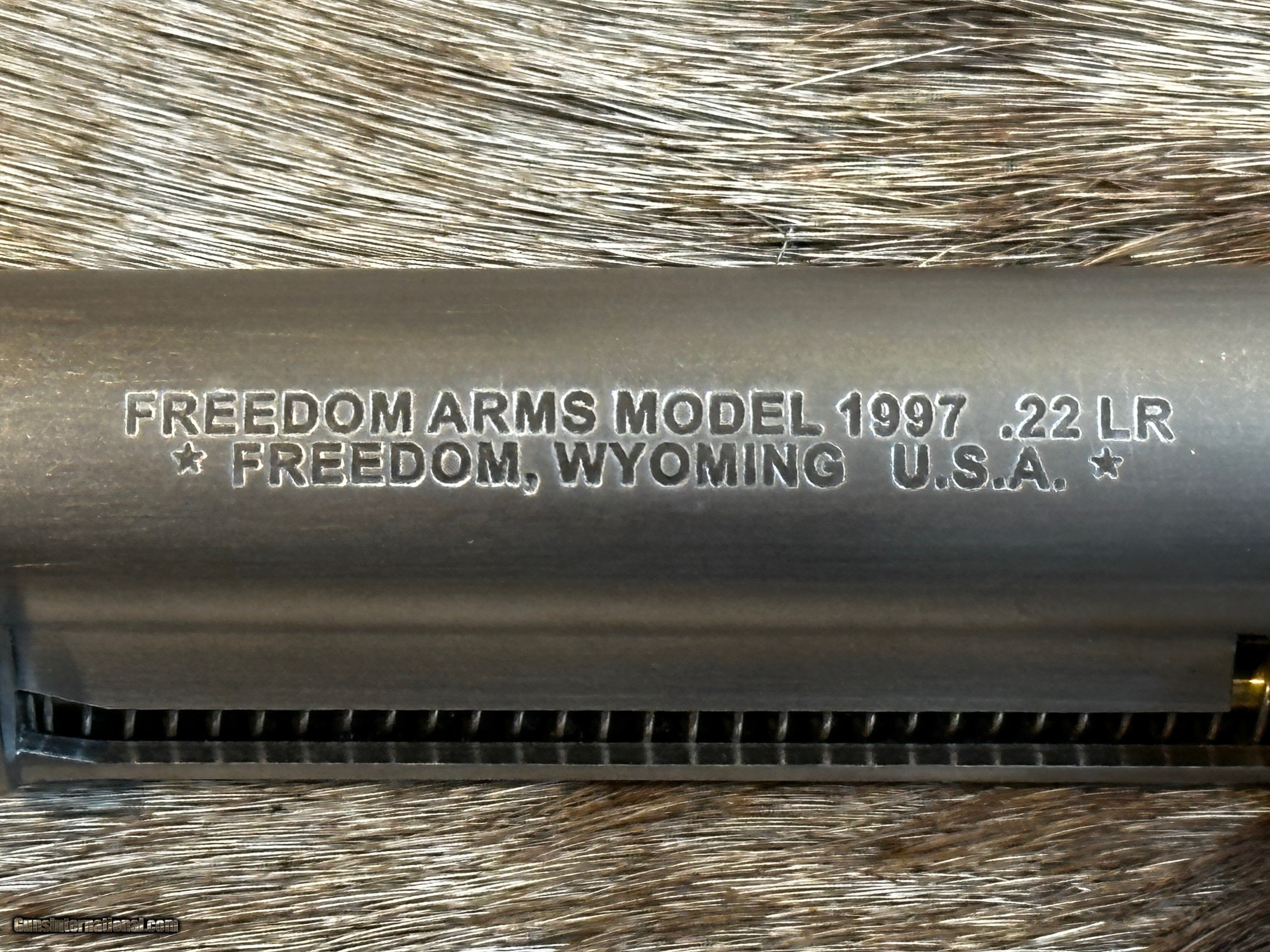 Description: NEW FREEDOM ARMS MODEL 97 PREMIER GRADE 22 LONG RIFLE WITH MANY UPGRADES - LAYAWAY AVAILABLE FREE AFRICAN SAFARI WITH KUCHE SAFARIS (: KUCHE.CO.ZA) INCLUDED WITH THIS RIFLE! SAFARI IS FOR 1-HUNTER / 5-DAYS / 3-ANIMALS (IMPALA, BLESBUCK, WARTHOG). SAFARI IS CUSTOMIZABLE WITH AS MANY ADDITIONAL DAYS AND ANIMALS AS YOU WANT. THE CERTIFICATE IS GOOD FOR 3-YEARS FROM DATE OF PURCHASE AND WILL BE EMAILED TO YOU. NOTE: THE SAFARI IS FREE AND DOES NOT ADD ANY COST TO THE FIREARM. The Premier Grade has a bright, brushed finish with more attention to cosmetic details. Premier Grade rear sights are screw adjustable for elevation and windage. Premier Grades have a limited lifetime warranty to the original owner. All Model 97’s have a transfer bar safety. FEATURES OF THIS GREAT AMERICAN-MADE REVOLVER INCLUDE: