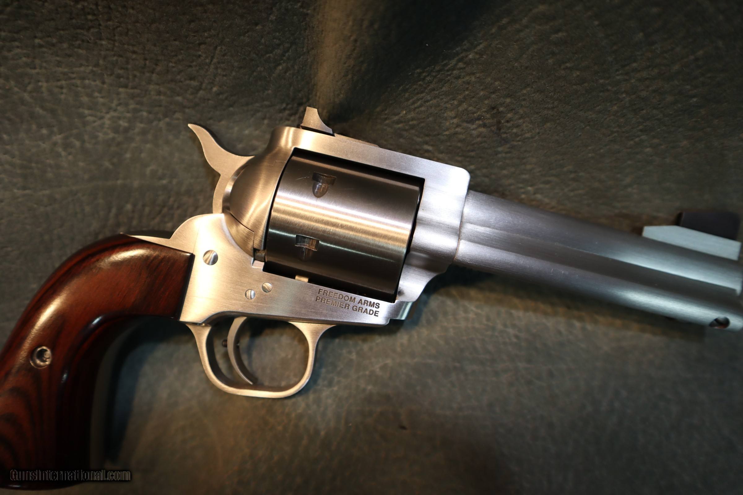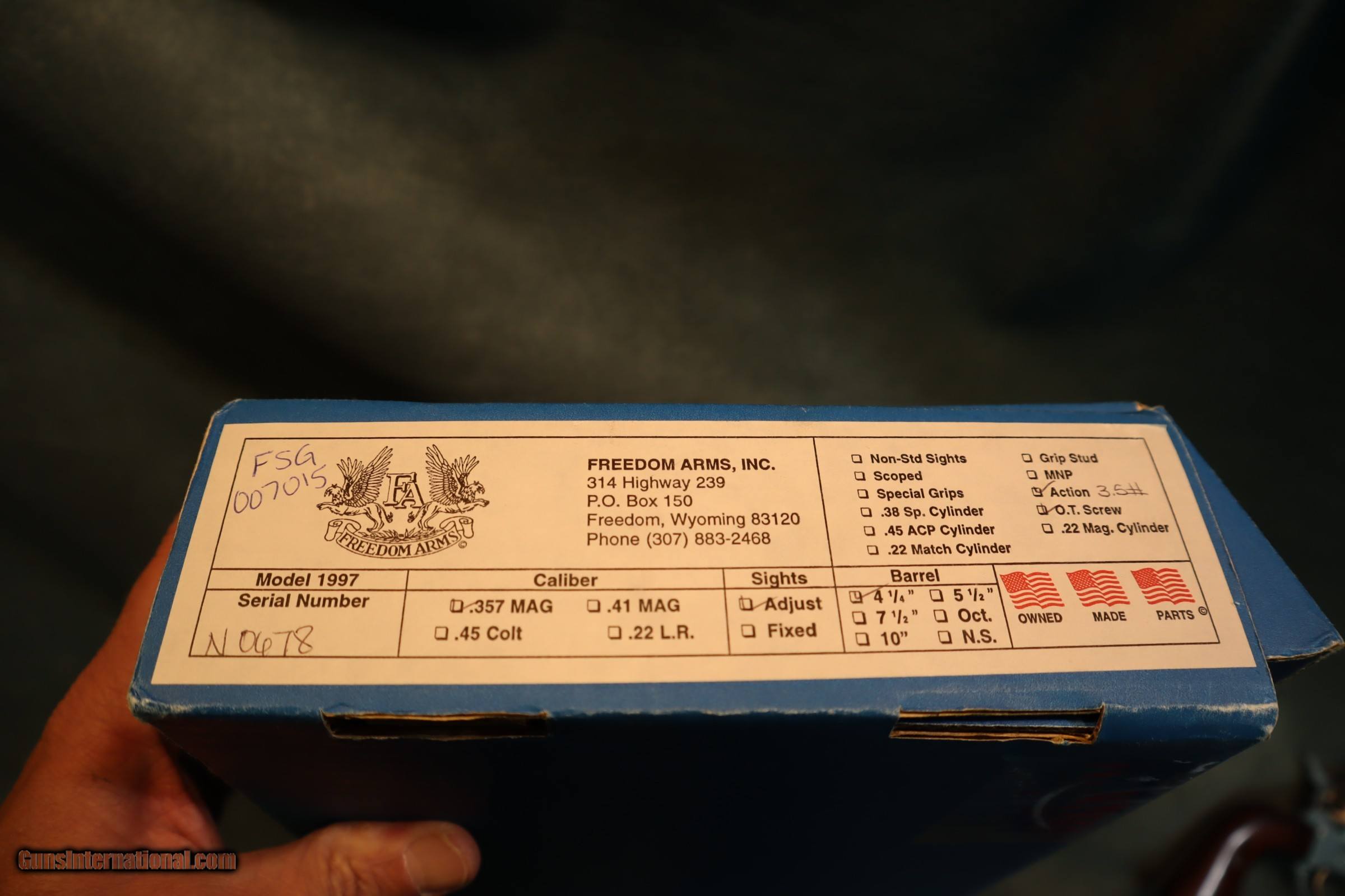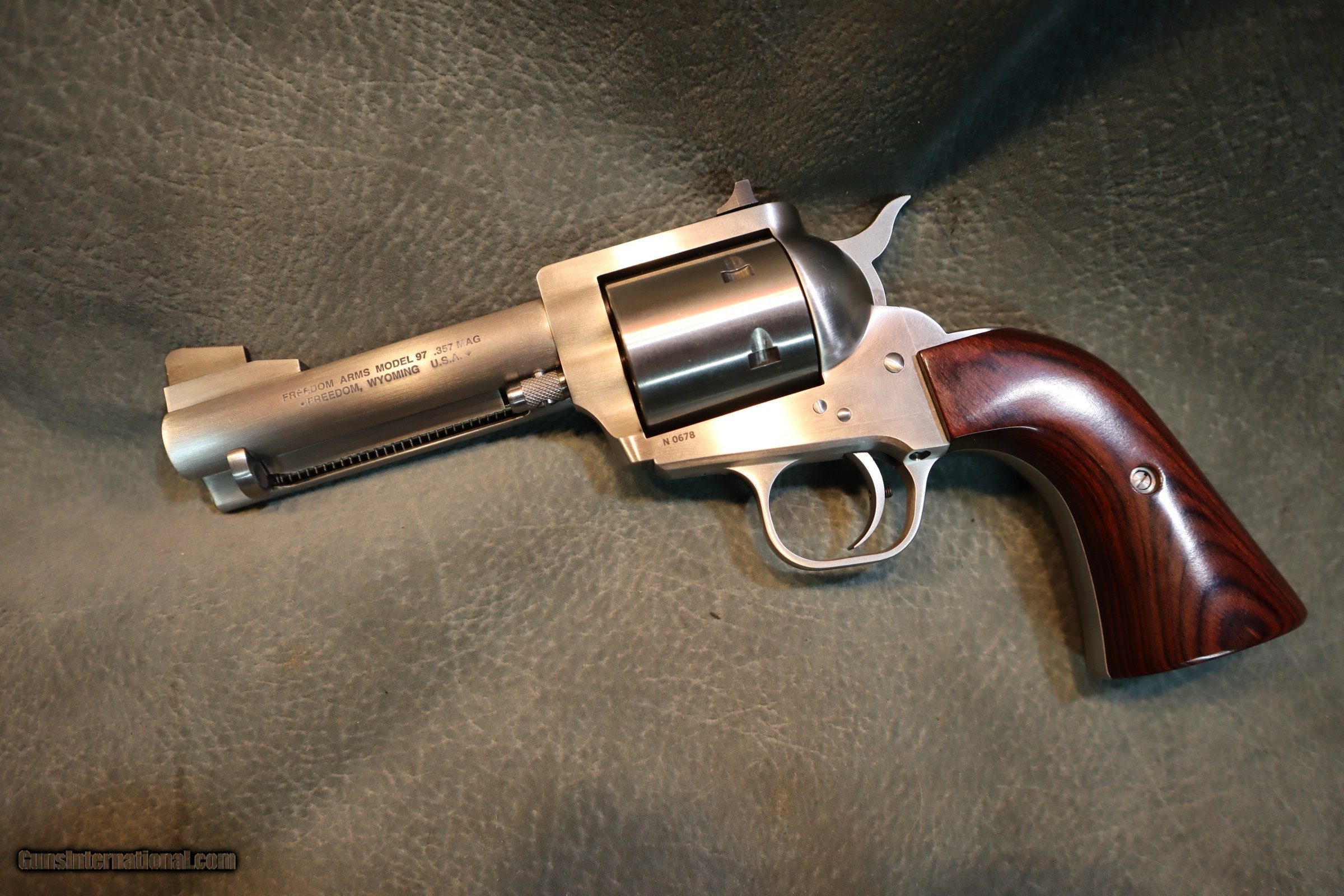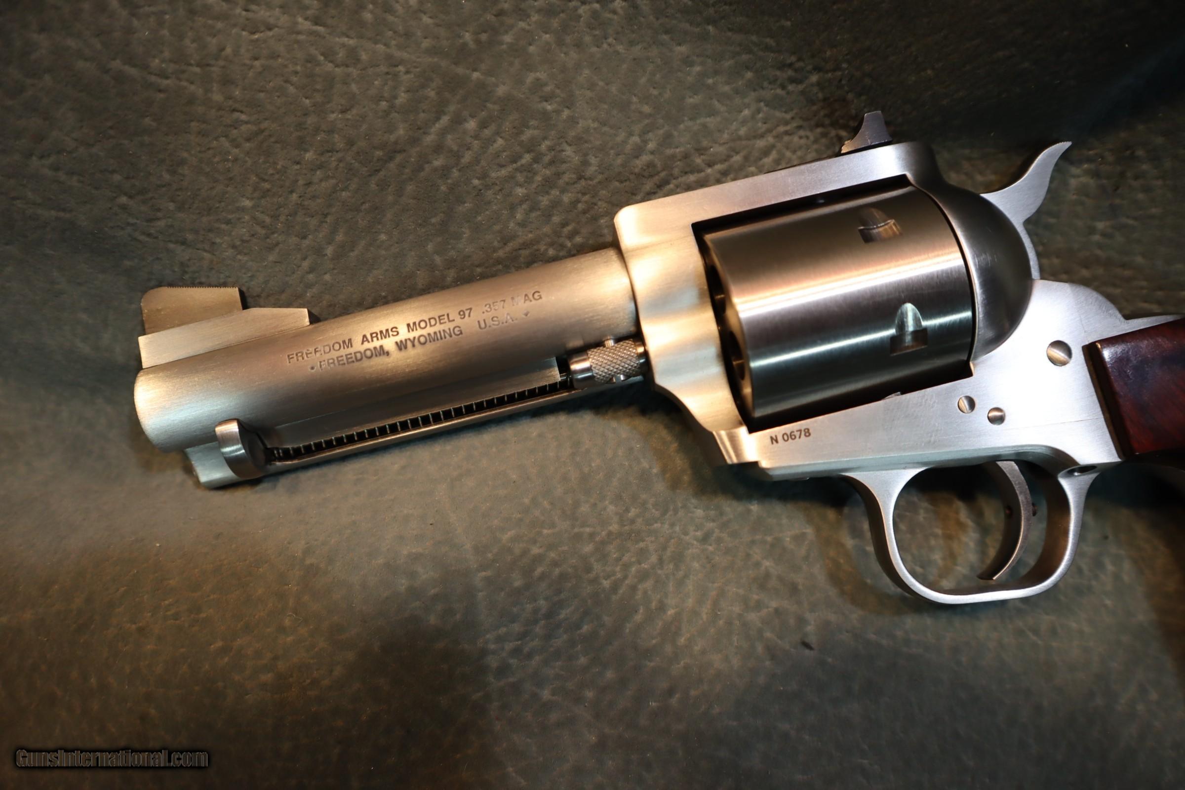 Description: Freedom Arms 1997 357Mag 4 1/4" barrel,stainless steel,adjustable sights,winewood grips,factory action job and overtravel screw,excellent condition,like new in the box with papers. GUN COLLECTIONS WANTED FOR CASH! We buy, sell, consign and trade new and used firearms. This is our 48th year in business. We offer 90 day layaways with 20% down. No return on layaways. Firearms will need to be transferred through a FFL dealer. Prices reflect a cash discount. There will be 3% added to credit card sales. We trade for gold and silver. THANK YOU! SOLD |