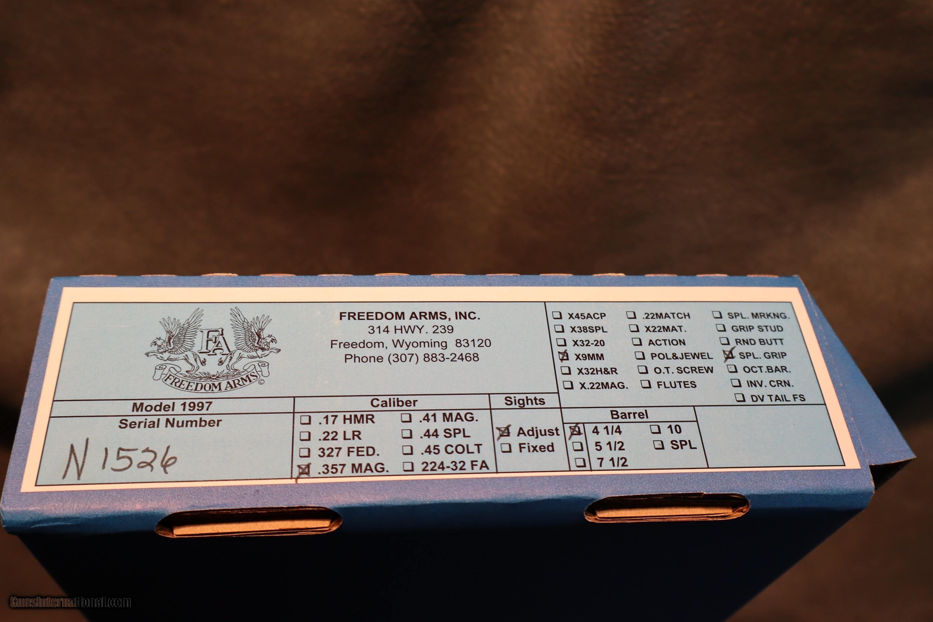 Freedom Arms 1997 Premier Grade 357Mag/9mm 4 1/4" barrel,new in the box with extra cylinder