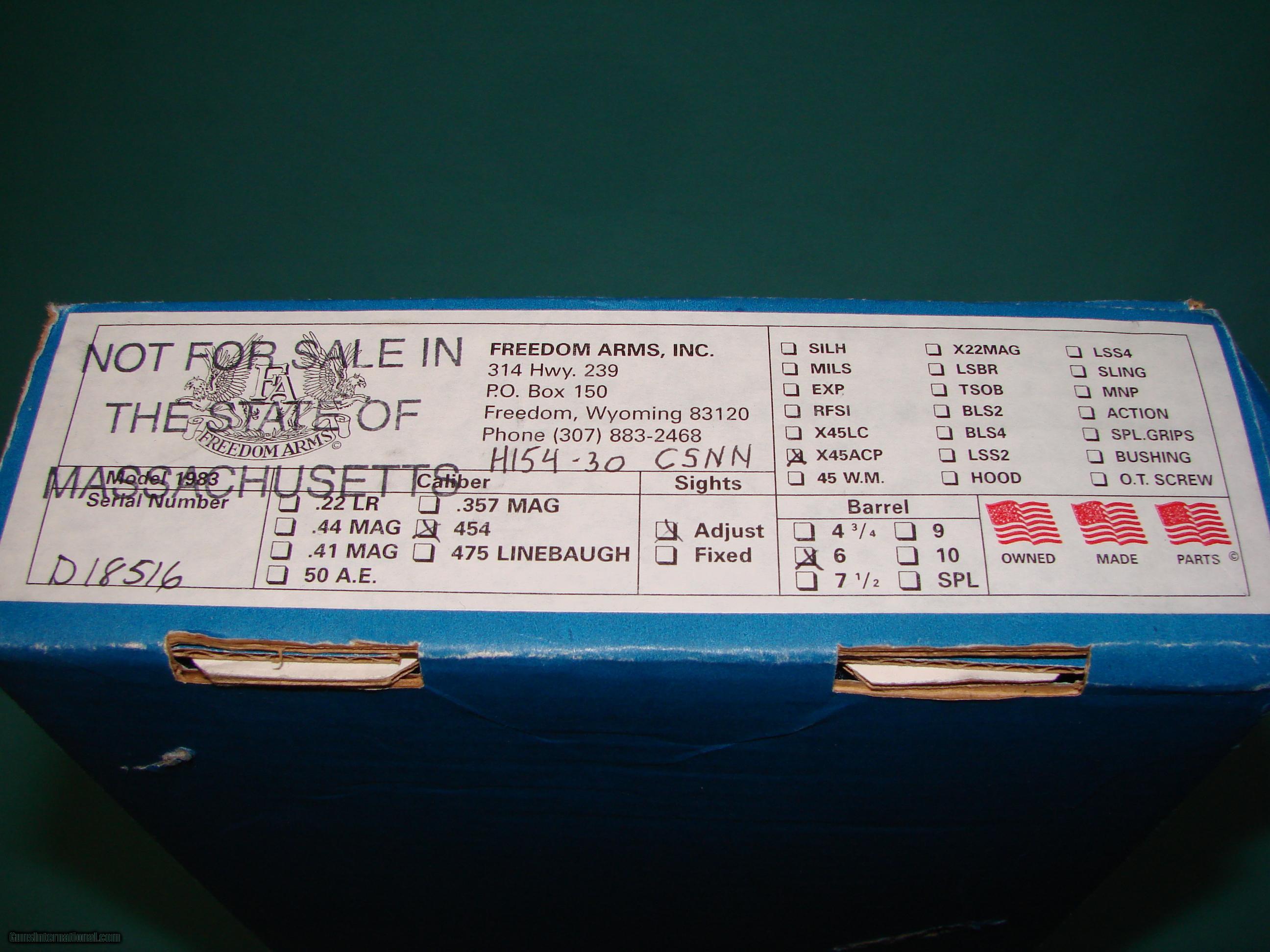 Description: Freedom Arms Model 83 with 45ACP/454 Casull cylinders, 6" barrel, adjustable sights. Gun is used in excellent condition with box. *No extra fees, You only pay for the cost of the item & $35 for shipping{AK&HI Extra} Arizona Residents Must Pay Sales Tax. *Legendary Guns in Phoenix AZ 602-242-1195 Hours of operation M-F 10-6 Sat 10-5 Closed Sundays. *All items online are also for sale at our Phoenix location *Please call the shop for any questions and to confirm availability before buying. We are happy to answer all questions. *We offer a 3 day inspection period with a full refund if item was misrepresented. We accept returns for any reason within the 3 day inspection period with NO refund for shipping coming or going and a 15% restocking fee. *We Only accept/consider trades that can be brought to our Store in Phoenix. *Your State Laws are your Responsibility to know. *Items ship once your Dealers FFL is received SOLD Manufacturer: Freedom Arms Model: 83 Caliber Info: 454Casull-45ACP Condition: Used |