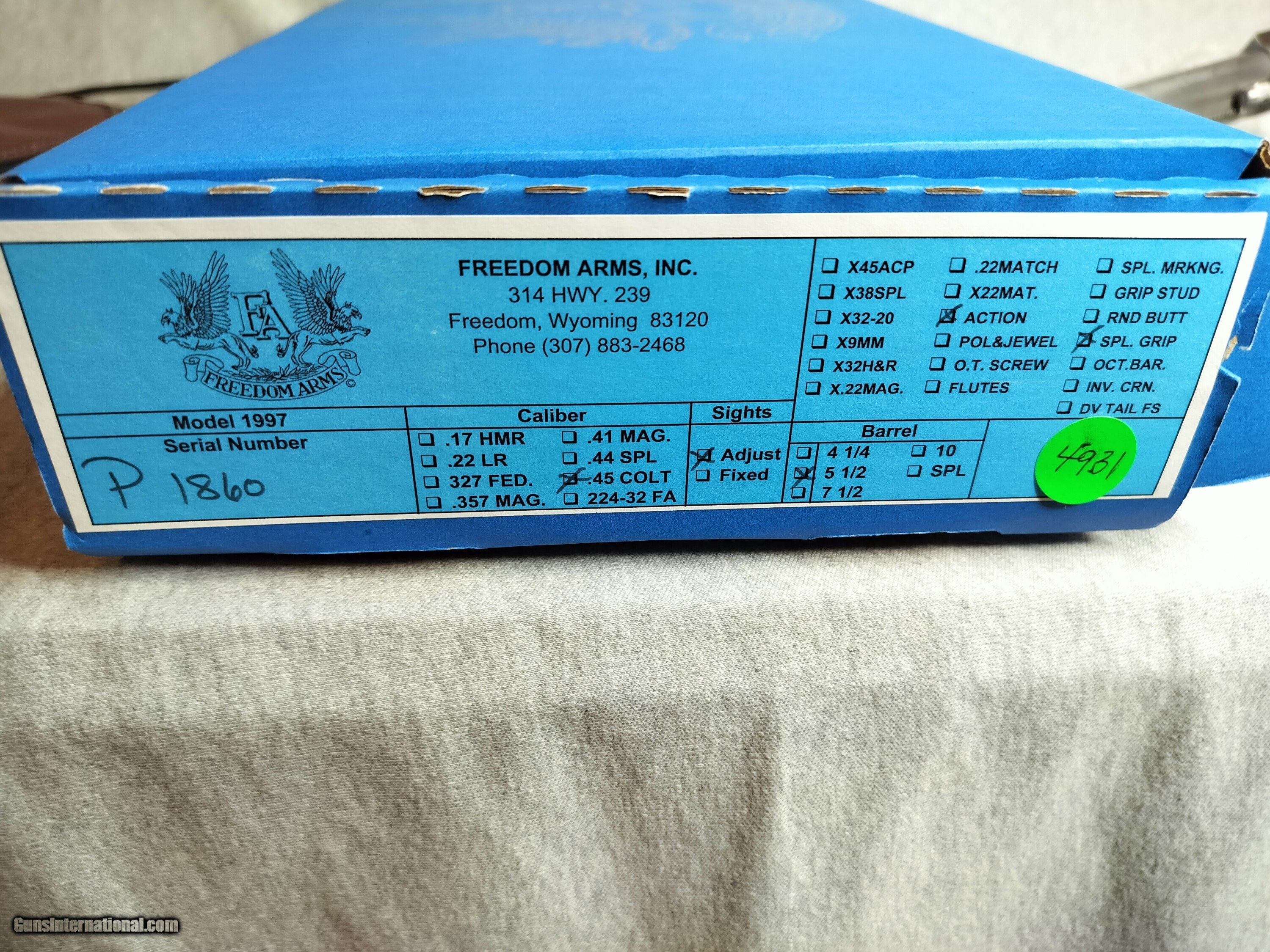 Description: FREEDOM ARMS, 97 PREMIER, .45 COLT, LIKE NEW IN BOX SOLD Handgun Caliber: .45 Colt |
