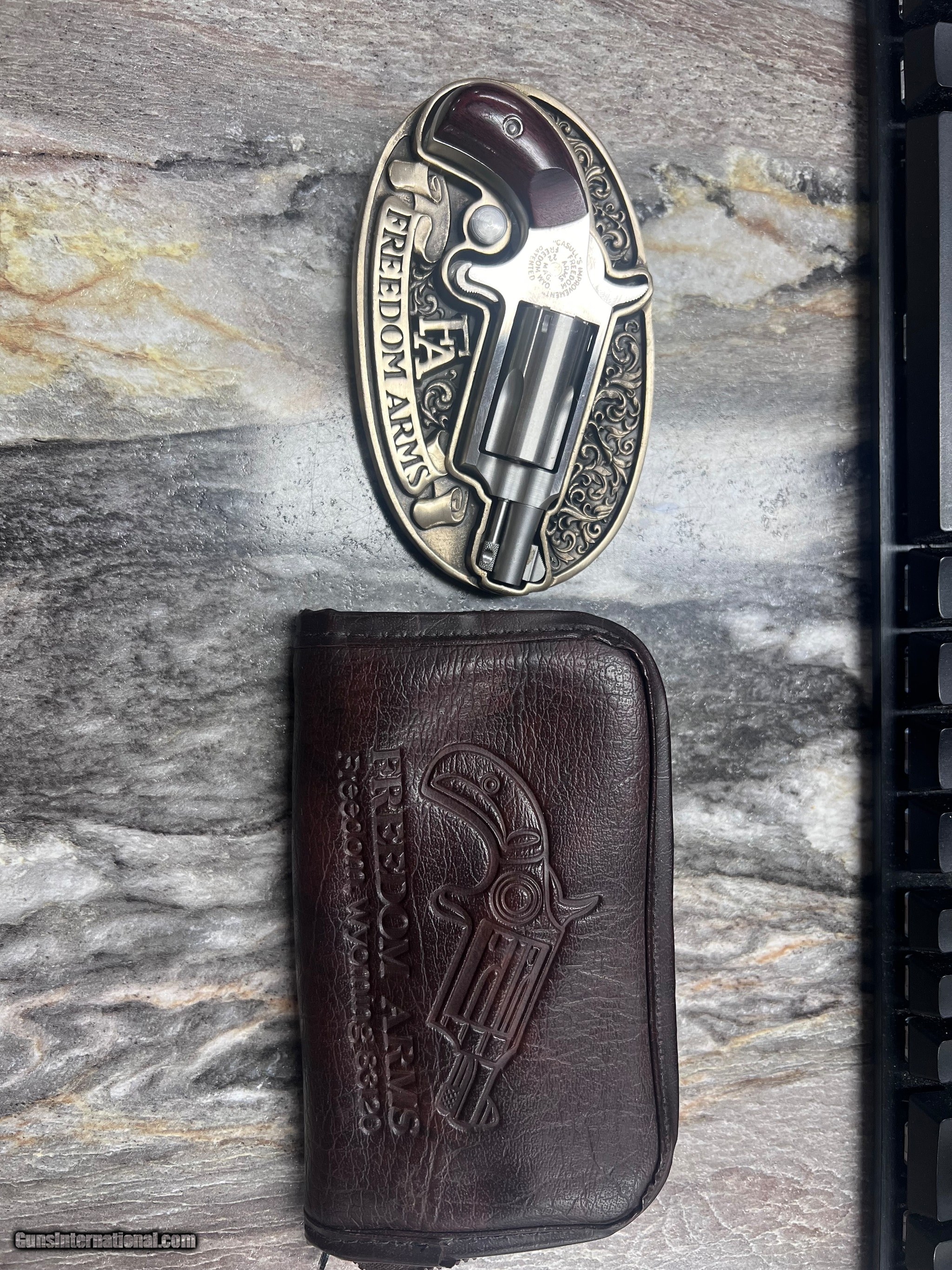 Description: Guns Listing ID: 1021558 excellent condition comes with the hard to find belt buckle and carrying case SOLD Manufacturer: FREEDOM ARMS Model: mini revolver Caliber Info: .22 LR Condition: Used - Non-Certified Barrels: 1 BARREL Finish: STAINLESS |