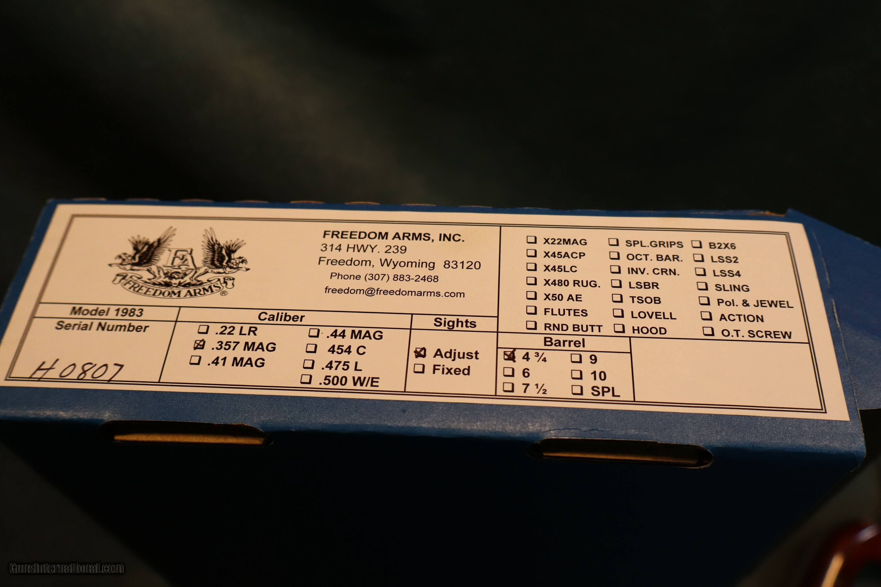 Freedom Arms Model 83 357Mag Premier Grade 4 3/4" bbl,ANIB