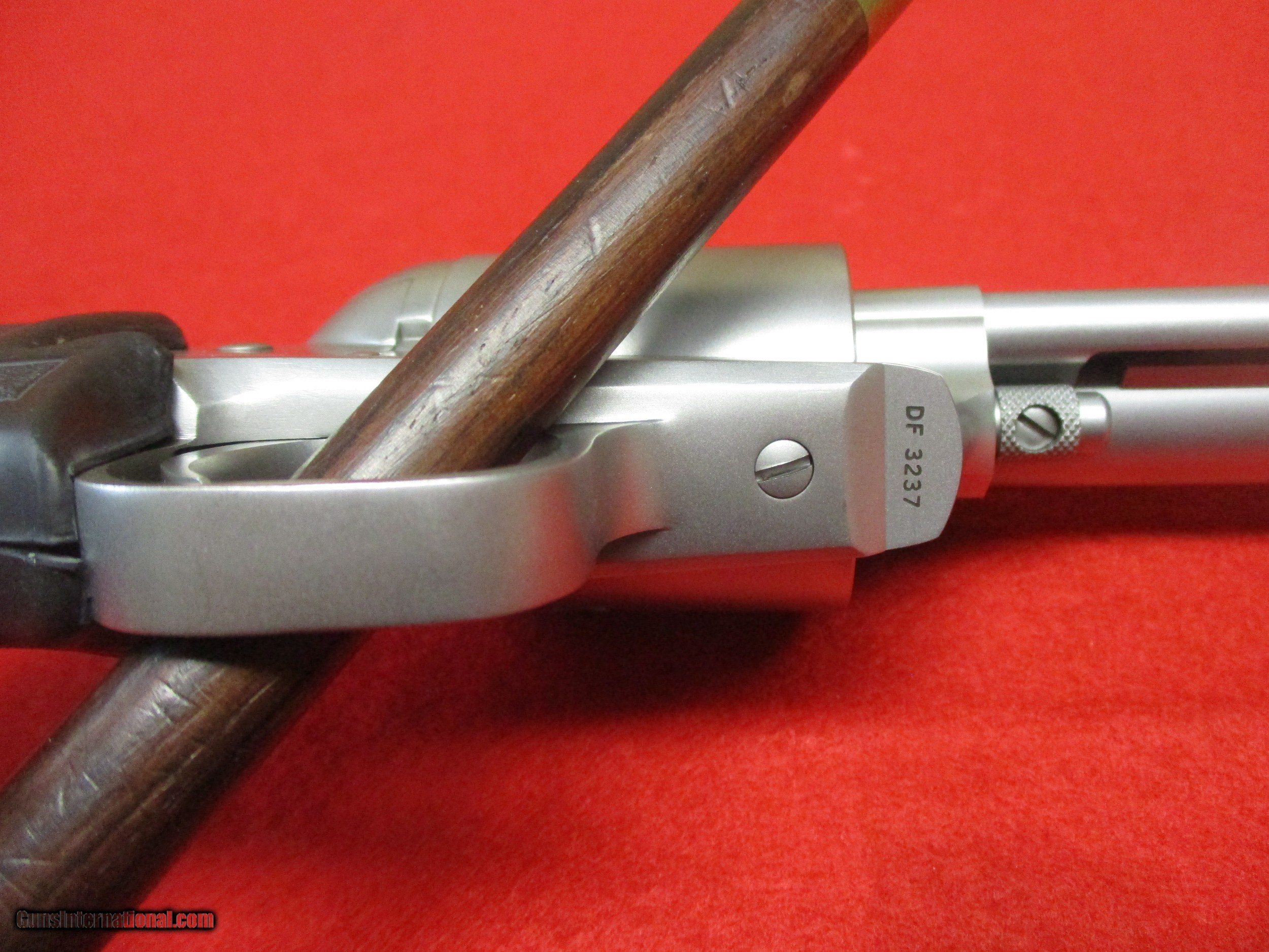 Description: The Model 83 is one of the strongest and most accurate single-action army-style revolvers made today. Unlike most revolvers whose cylinders and barrels are bored out separately, the Model 83’s chambers are bored out through the barrel itself. This ensures that the chambers are ultimately in-line with the bore, giving the Model 83 an unparalleled level of accuracy. This one is chambered in the classic .454 Casull (pronounced kuh-sool). This is essentially a lengthened .45 Colt (aka .45 Long Colt) chambered for pressures. The Casull round was one of the most powerfull .45 cartridges available until the release of the .460 S&W, itself a lengthened .454 Casull. Any revolver chambered in the 454 will also shoot the .45 Colt and the relatively rare .45 Auto-Rim (a rimmed version of the .45 ACP). Like the Colt Peacemaker (aka Single Action Army), the Model 83 makes four loud ‘clicks’ as the hammer is cocked. The pistol is in excellent condition with some minor wear. The cylinder has a light turn ring. The barrel exhibits light finish marks. The bore is in excellent condition and appears to be very clean. The cylinder has only light powder burns suggesting the 83 has been not been fired that many times. The pistol comes with 145 rounds of .454 rounds in the three boxes (one box has only 45 rounds – perhaps the 83 has only been fired five times). These would be shipped separately for an additional fee. The boxes have the Freedom Arms brand on them. The bullets are 260 grain jacketed flat point (two full boxes) and 300 grain JFP (45 rounds). Though not pictured, the 83 does come with its original box. SOLD Manufacturer: Freedom Arms Model: 83 Field Grade Serial Number: DF3237 Caliber Info: .454 Casull Bore: Rifled Chambers: 5 Ejectors: Manual ejection rod Condition: Excellent - minor wear Action: Single-Action Stock: Pachmayr rubber grips Finish: Matte stainless steel Sights: Fully adjustable rear sight, blade front sight, sight radius 9.125 inches (231.8 mm) Extras: See description |